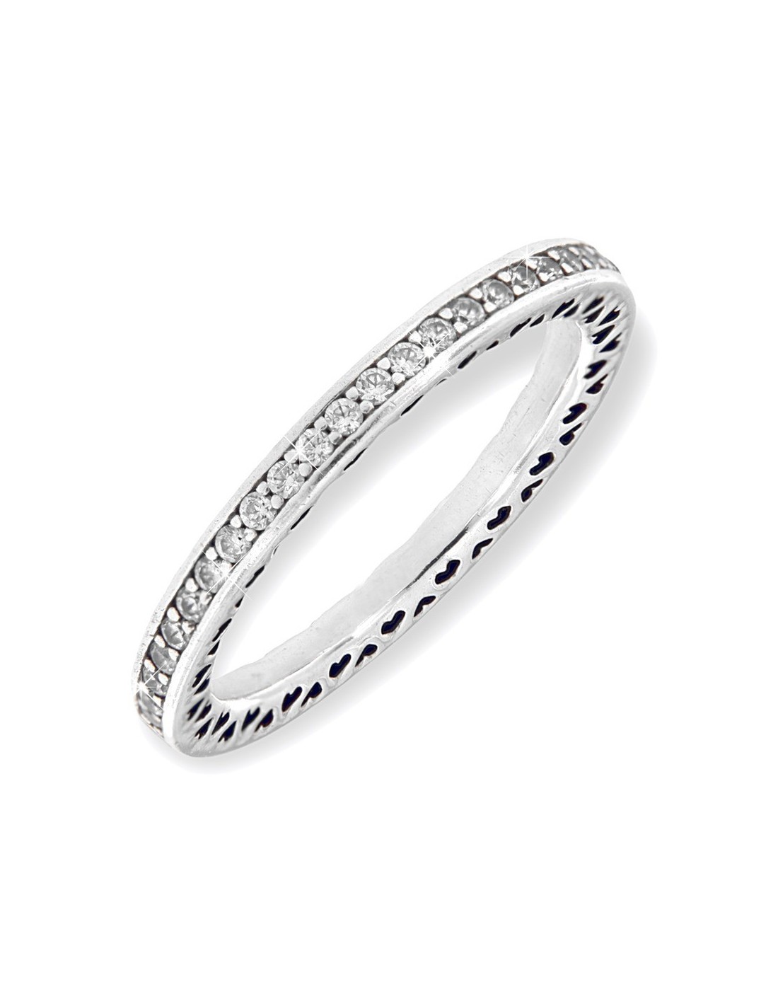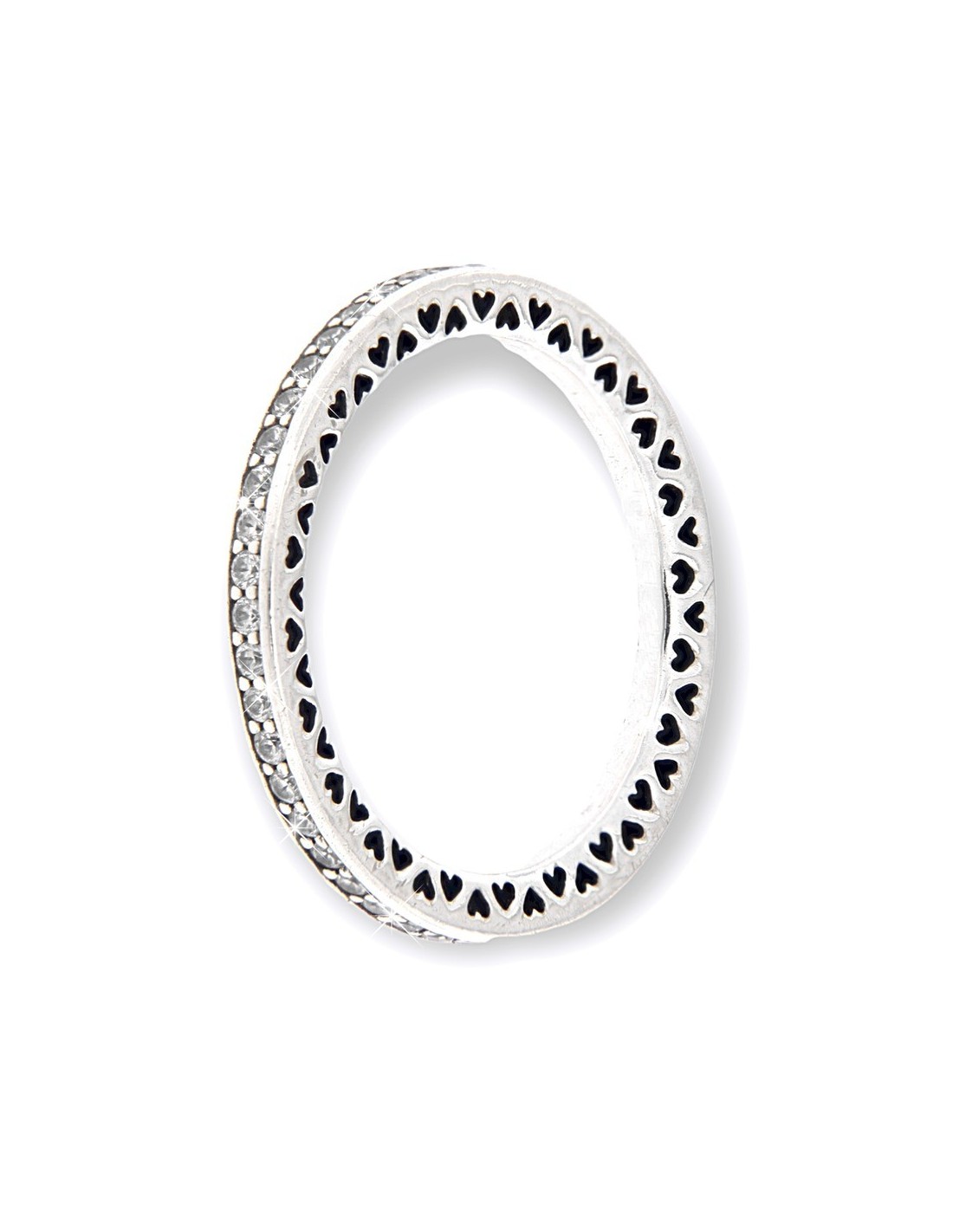 Anello Argento Rodiato Zirconi Bordi Con Cuori