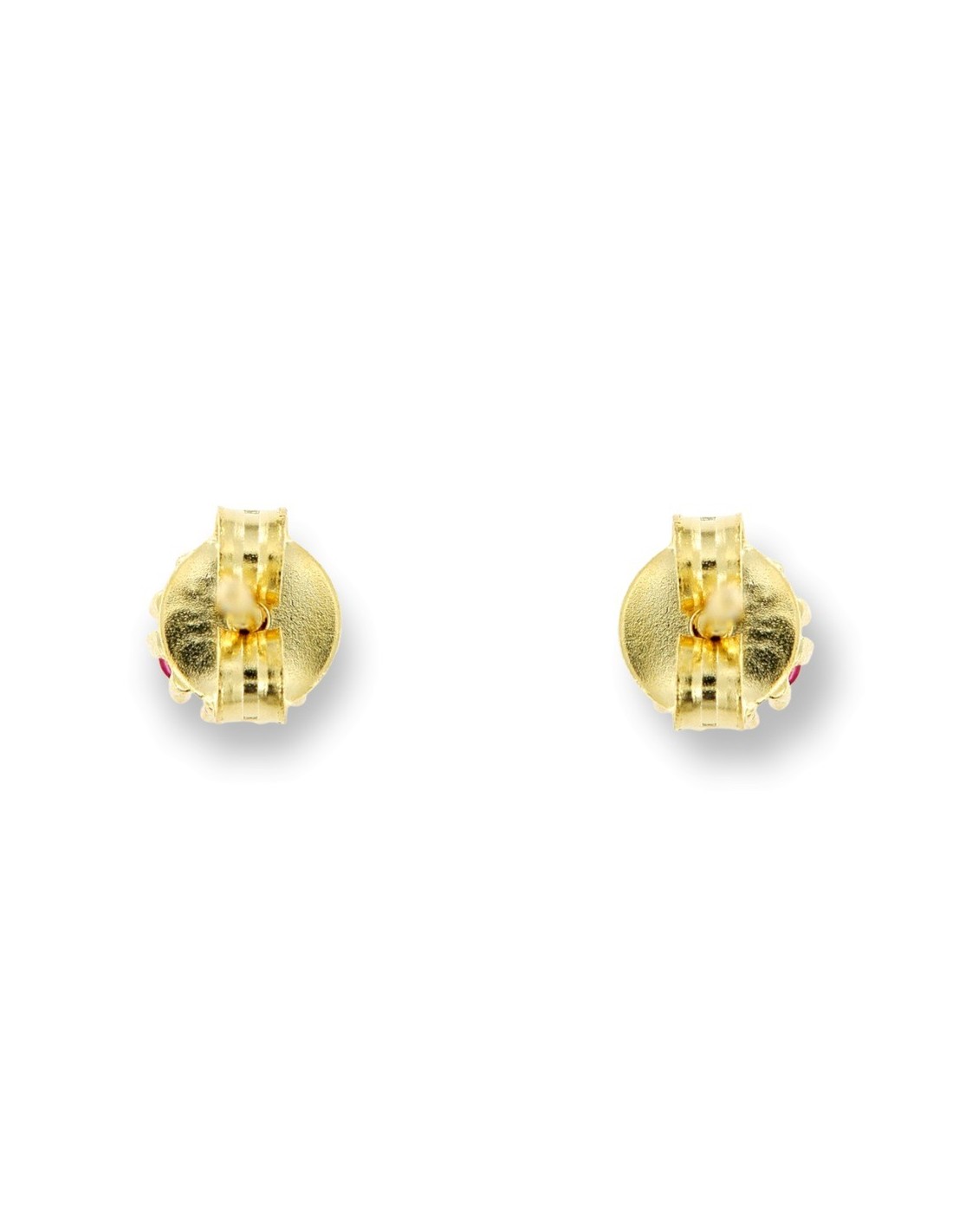 •MATERIALE: gli orecchini sono realizzati interamente in argento 925‰ Dorato (trattamento brillantante contro l'annerimento) a forma di fiore con al centro uno Zirconia Cubica o CZ bianco circondato da altri 6 Zirconia Cubica o CZ rossi con con taglio di alta qualità simile al taglio Brillante del Diamante;