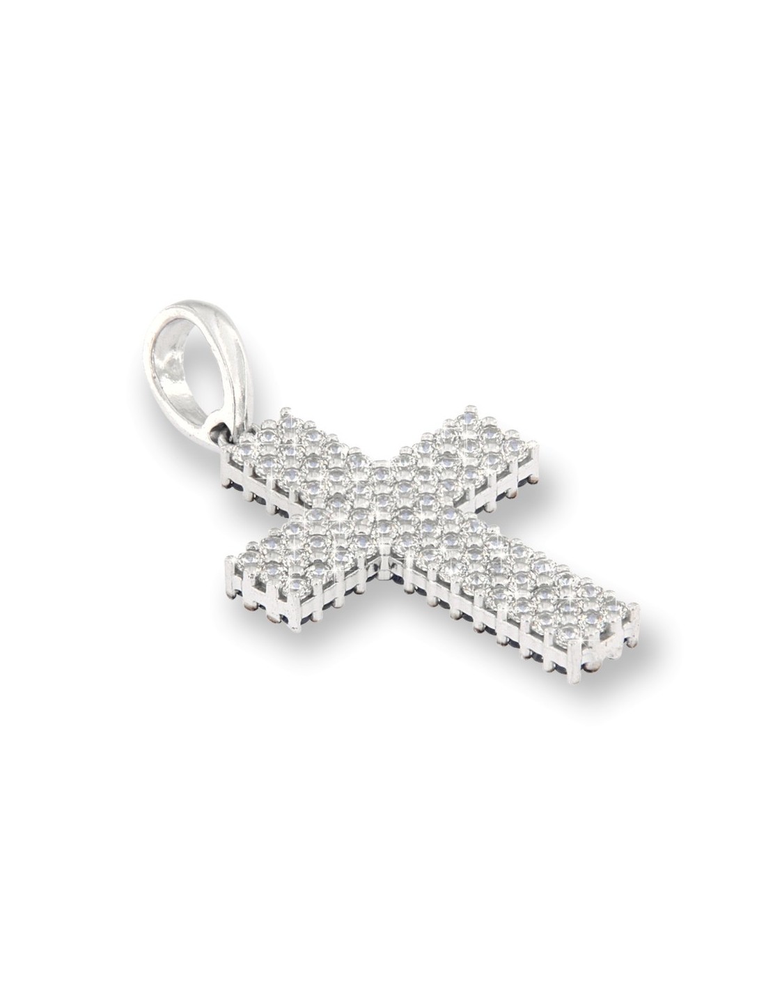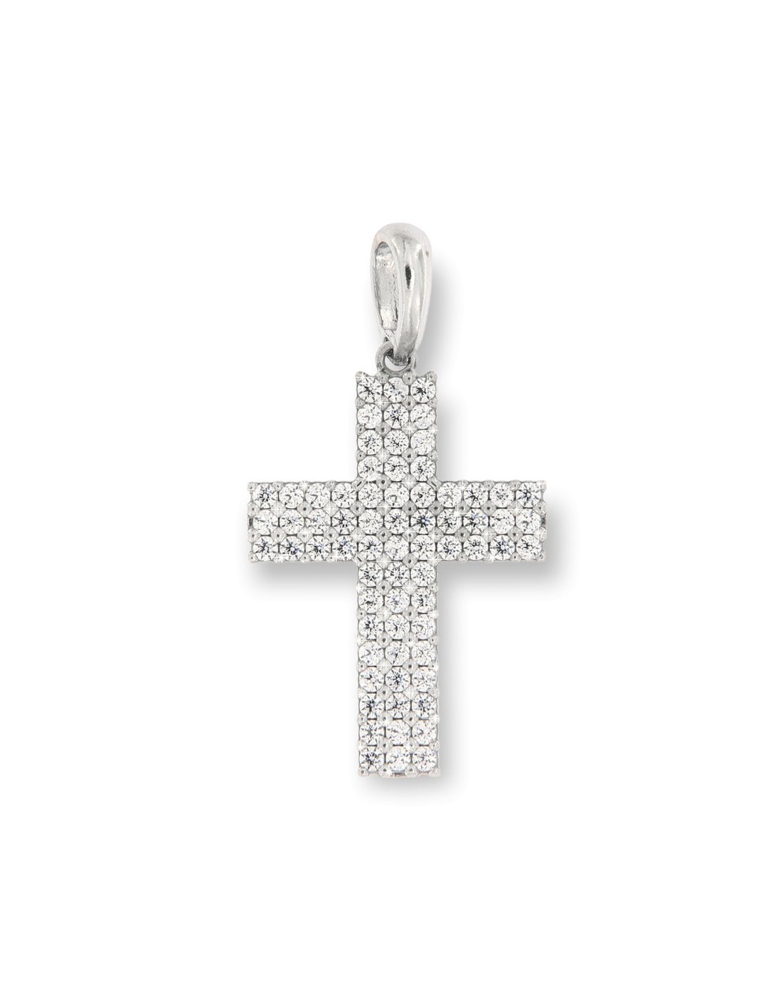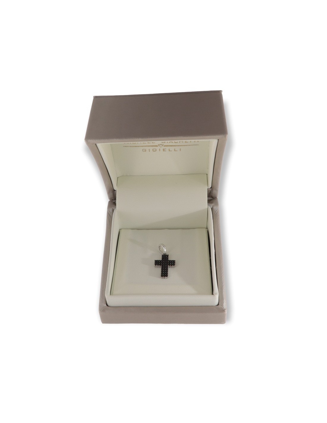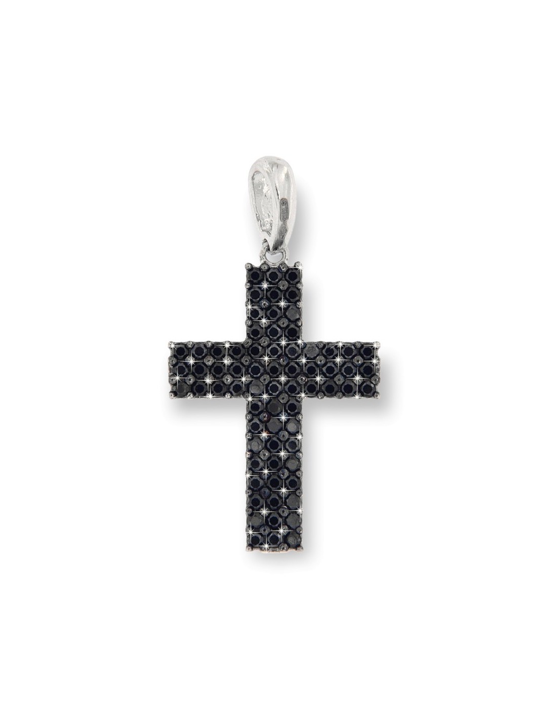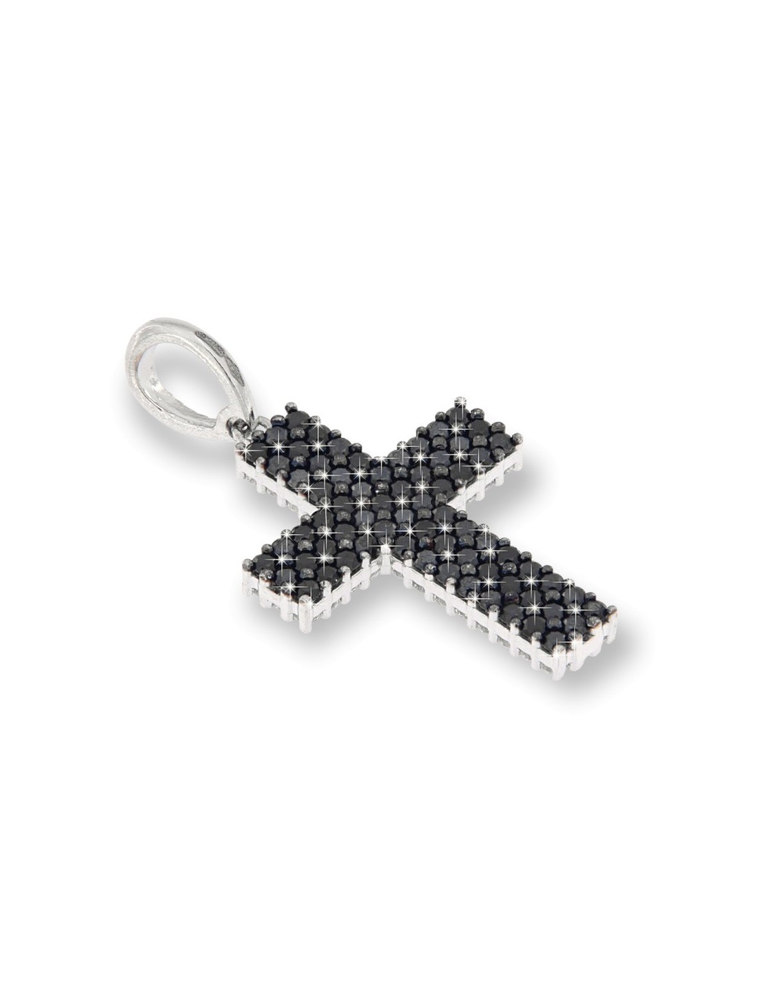 Ciondolo Oro Bianco Croce Zirconi Neri/Bianchi
