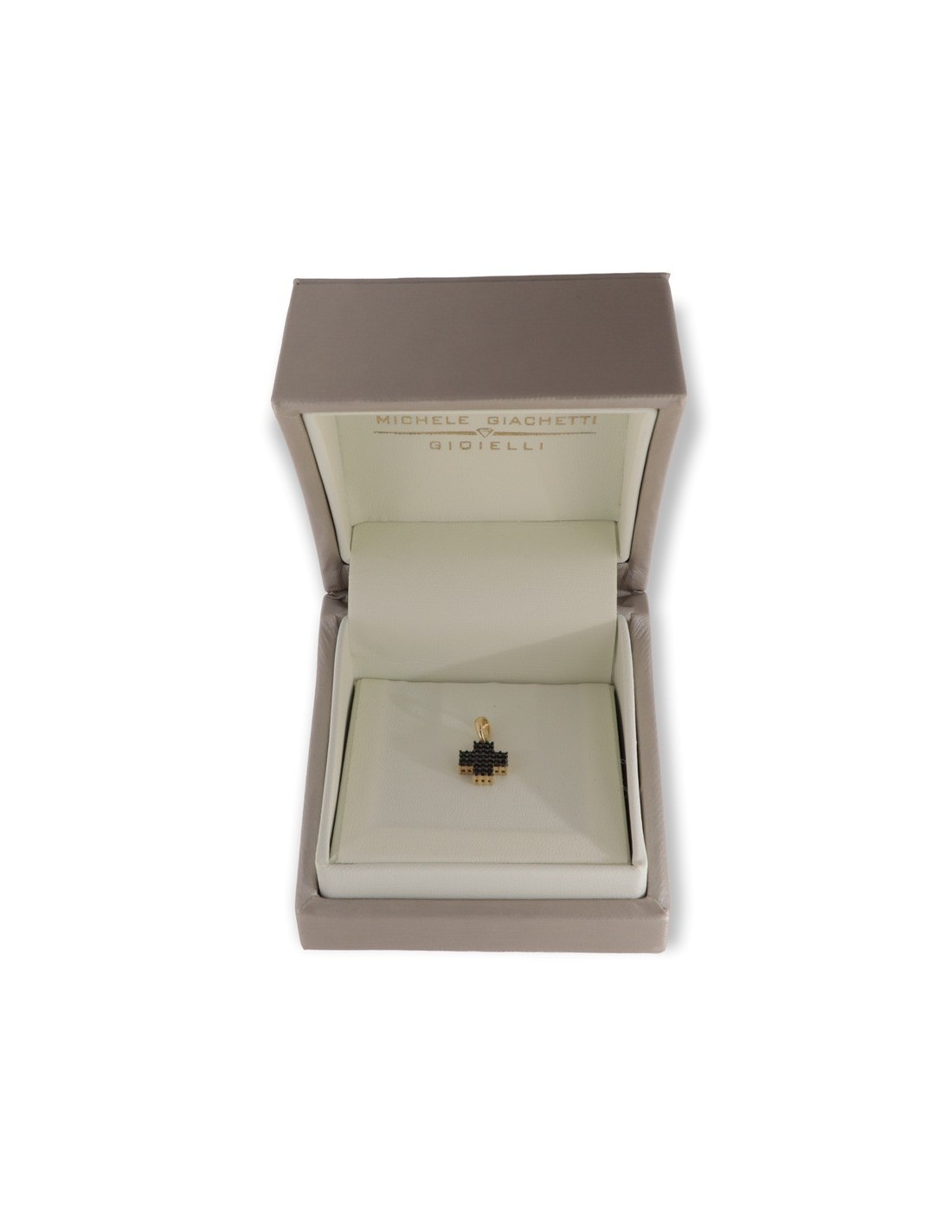 •MATERIALE: il ciondolo è realizzato interamente in oro giallo 750‰ (18 Carati) a forma di croce tempestata di Zirconia Cubica o CZ neri con taglio di alta qualità simile al taglio Brillante del Diamante;