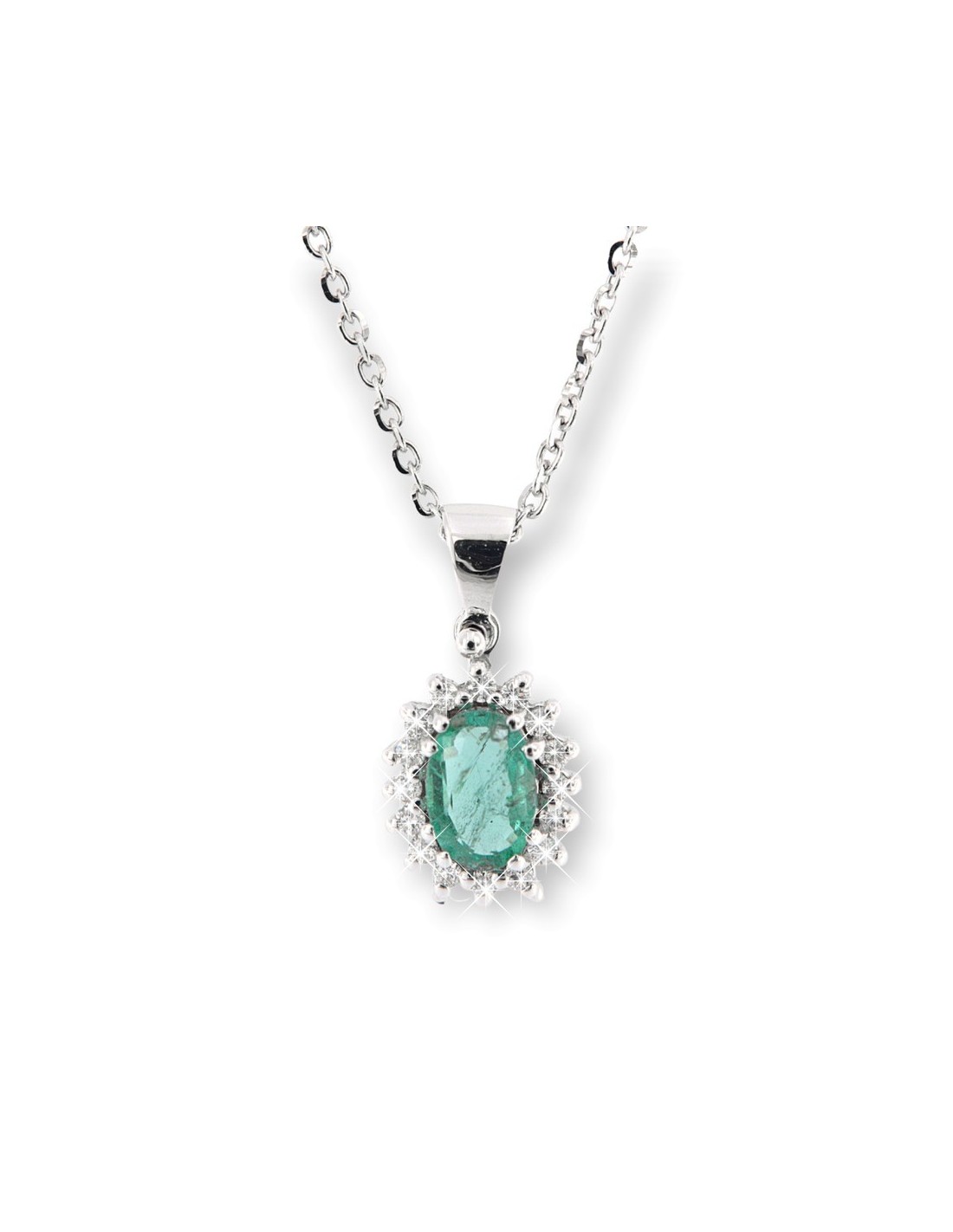 COLLANA PRINCIPESSA SMERALDO 0,37 OVALE CORNICE DIAMANTI 0,13