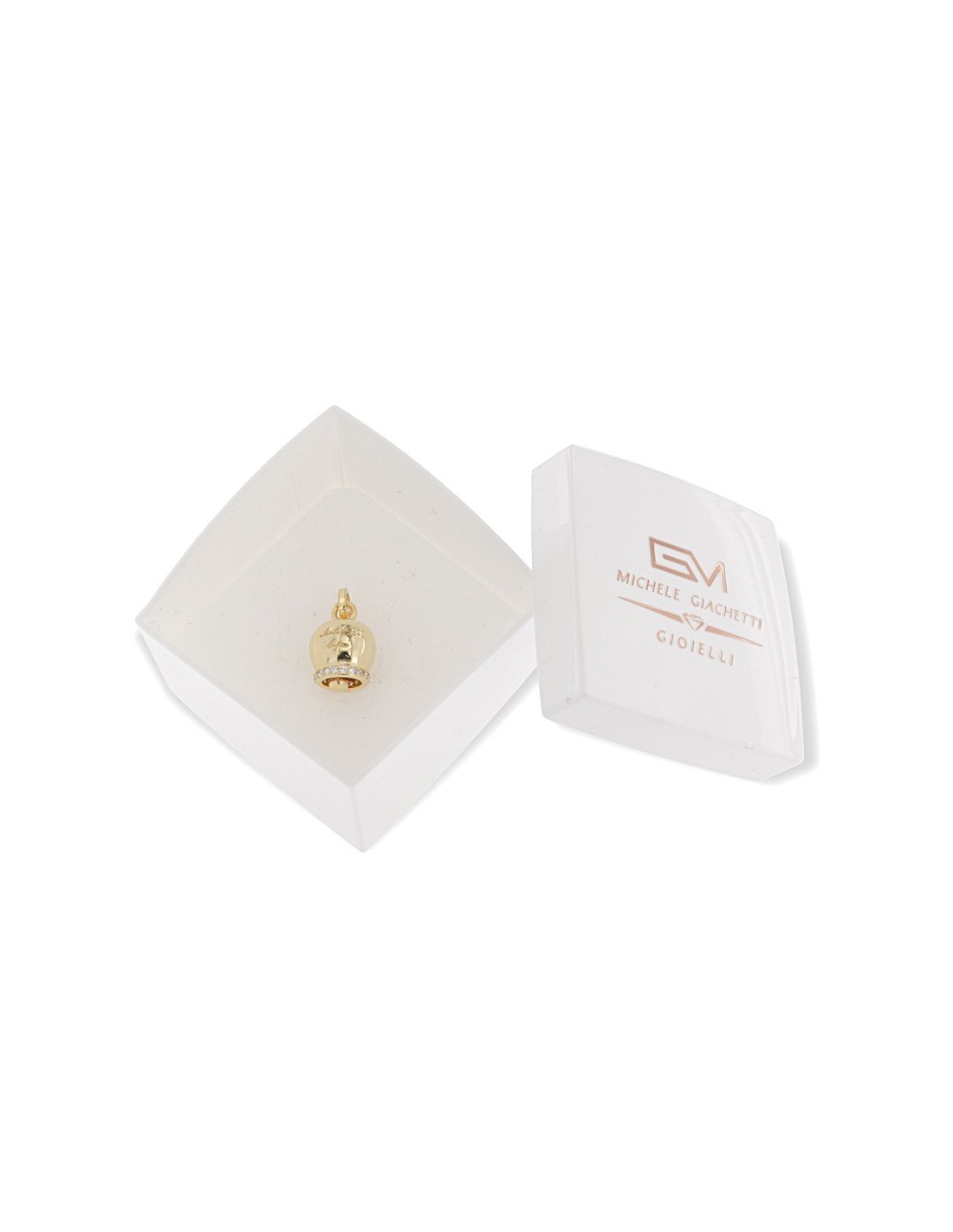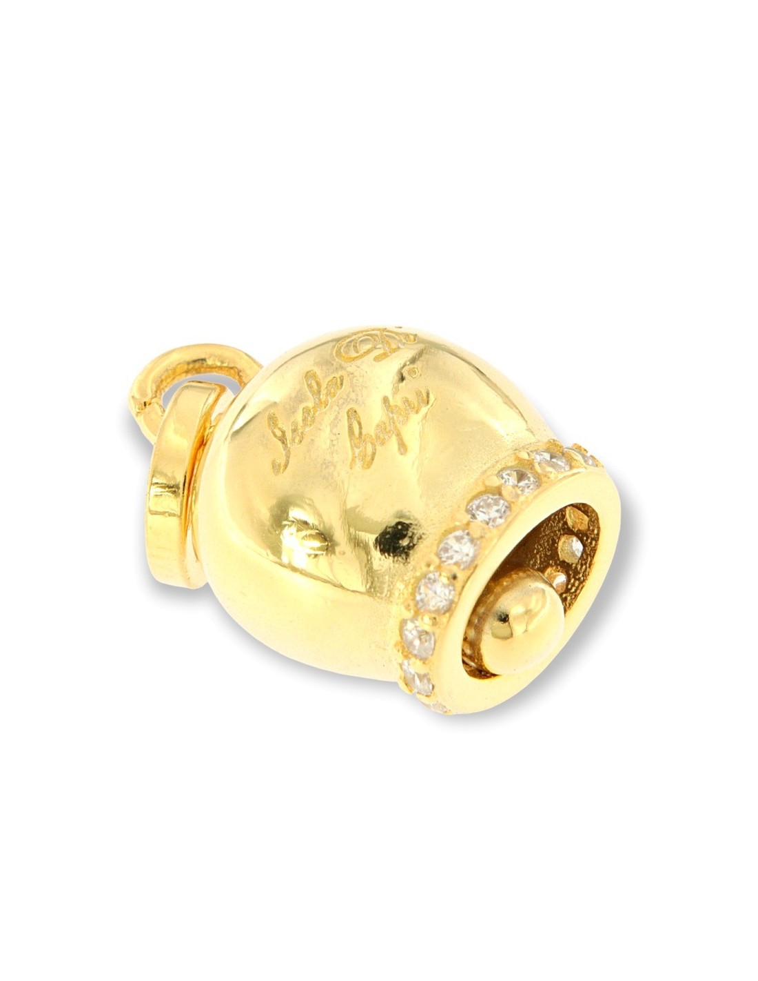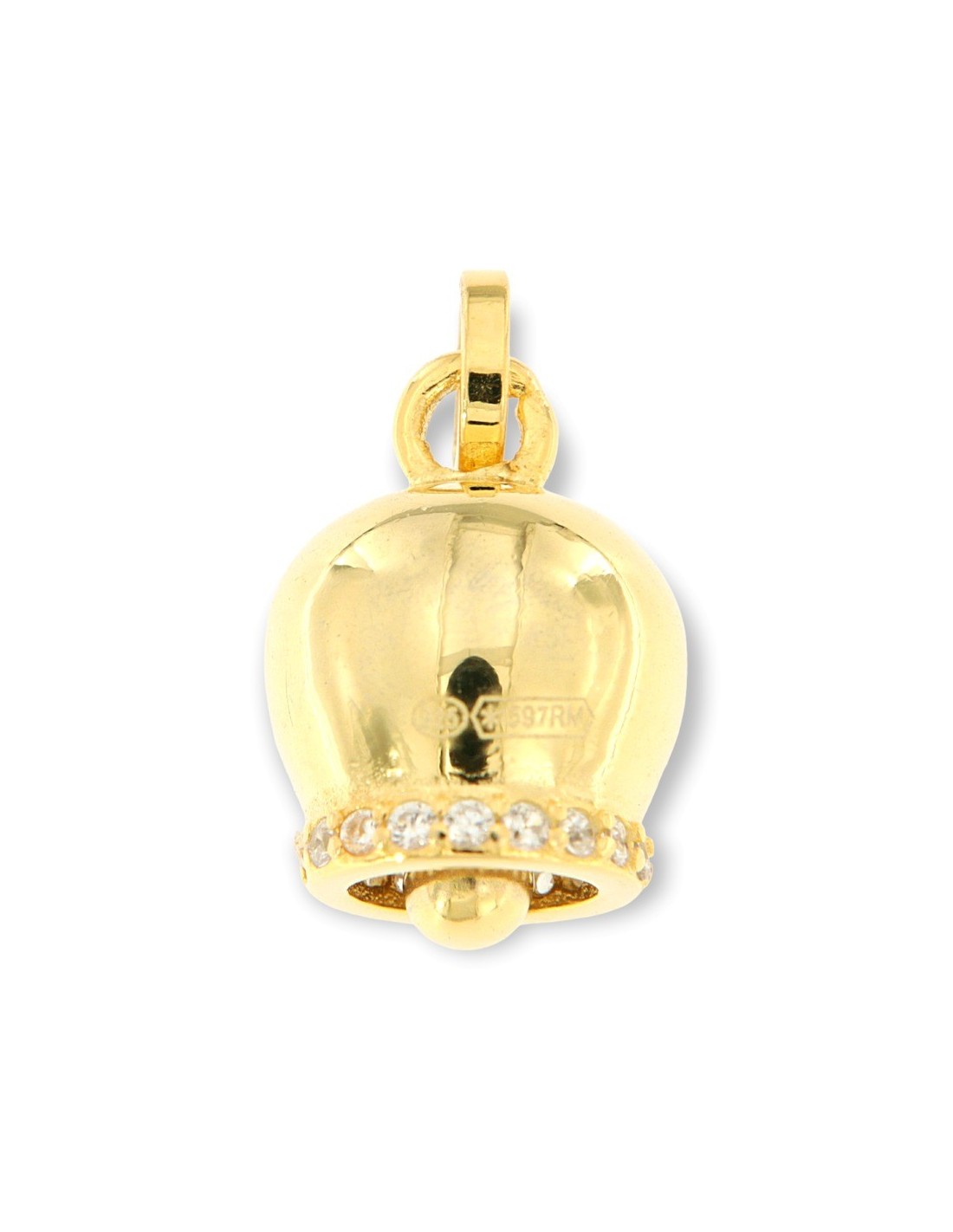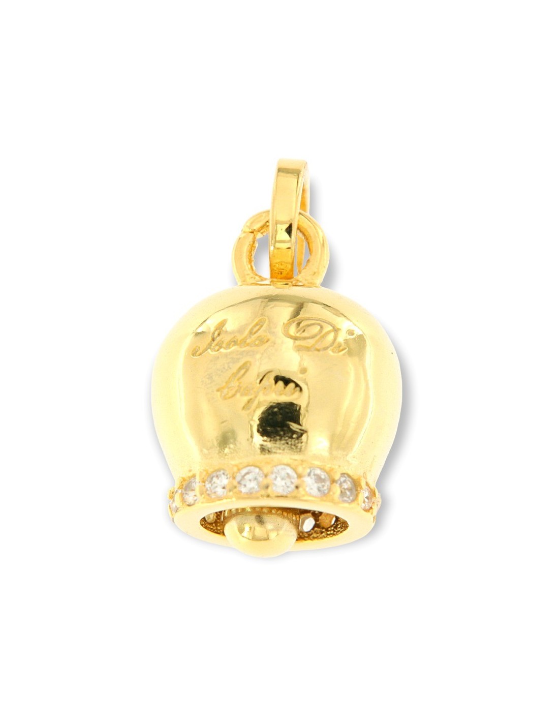 •MATERIALE: Il ciondolo è realizzato interamente in argento 925‰ Dorato (trattamento brillantante contro l'annerimento) rappresentante una campana con i bordi accompagnati da Zirconia Cubica o CZ bianchi con con taglio di alta qualità simile al taglio Brillante del Diamante;