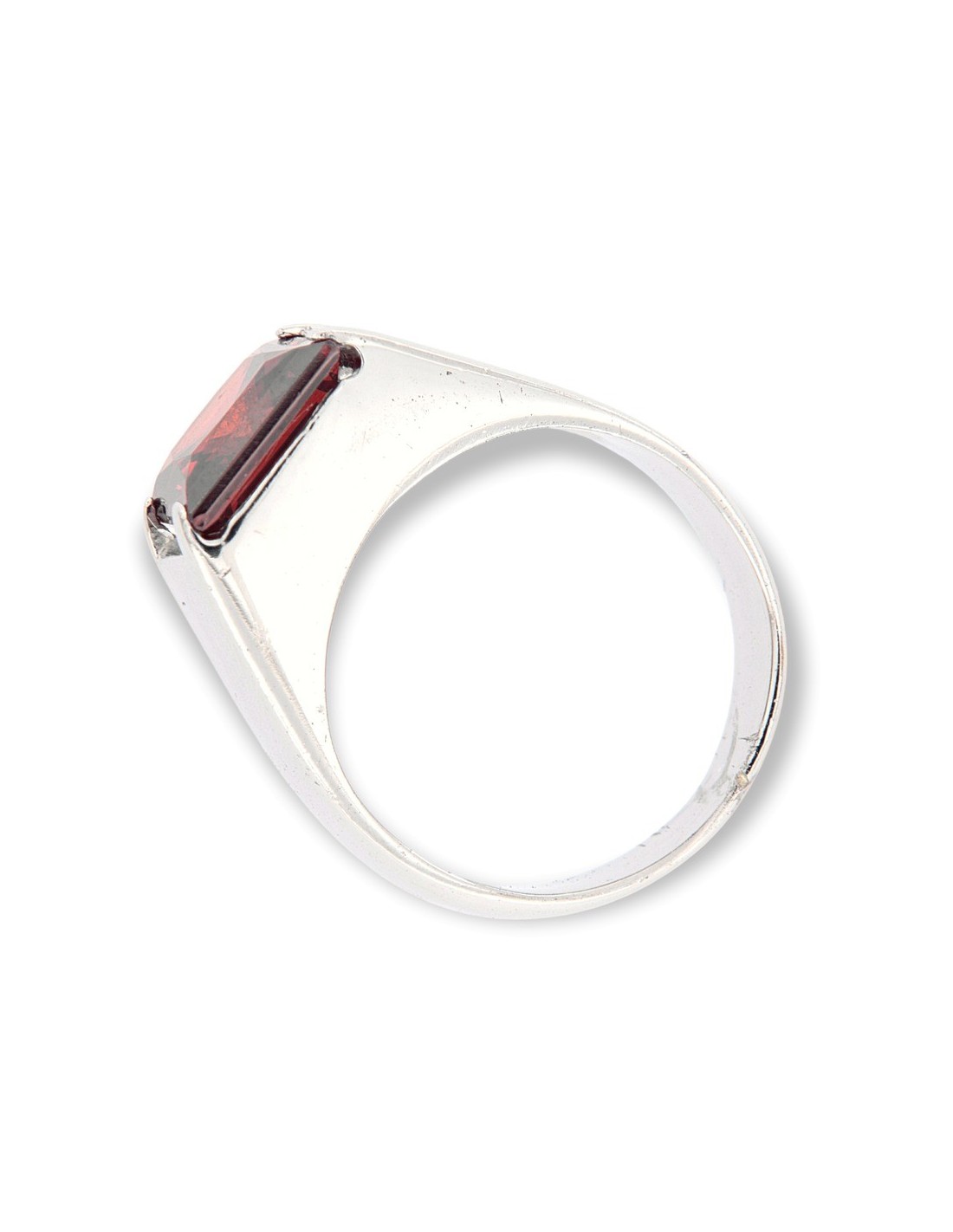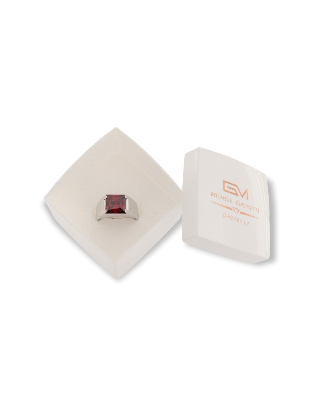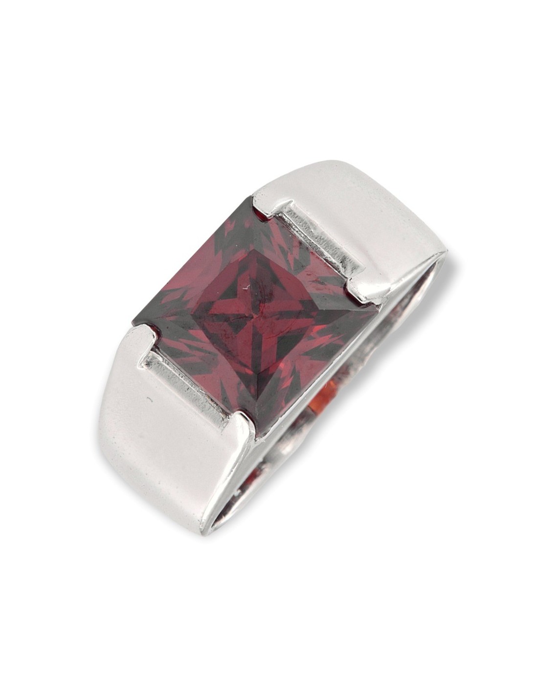 Anello Argento Fascia Con Pietra Rossa Quadrata