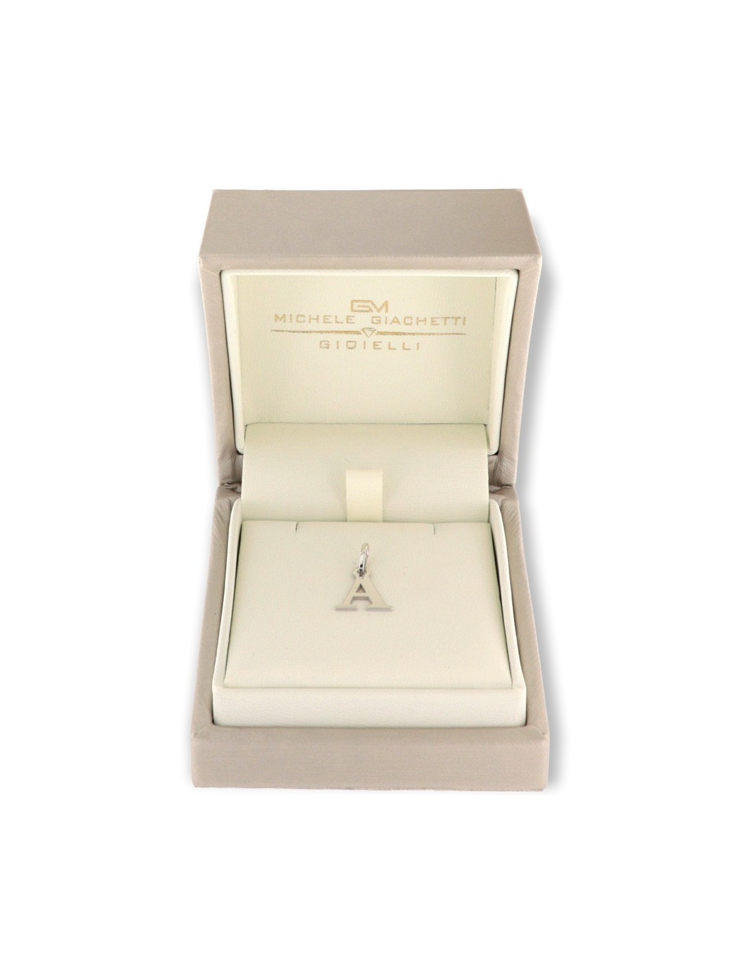 •MATERIALE: il ciondolo è realizzato interamente in oro bianco 750‰ (18 Carati) rappresentante la lettera A;
