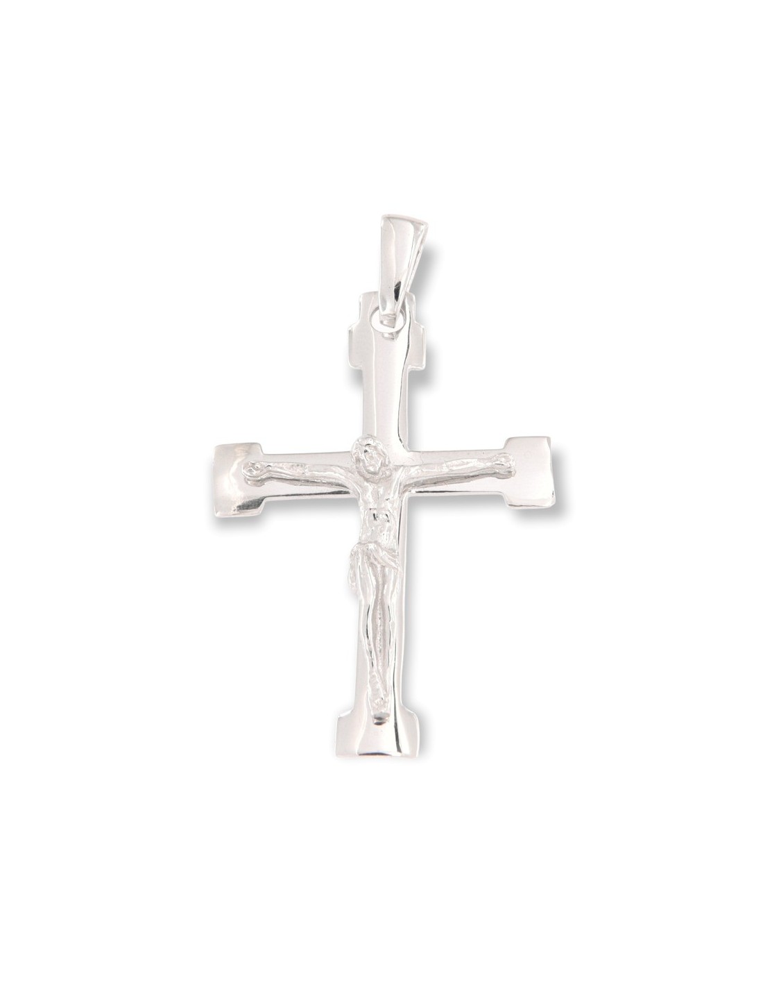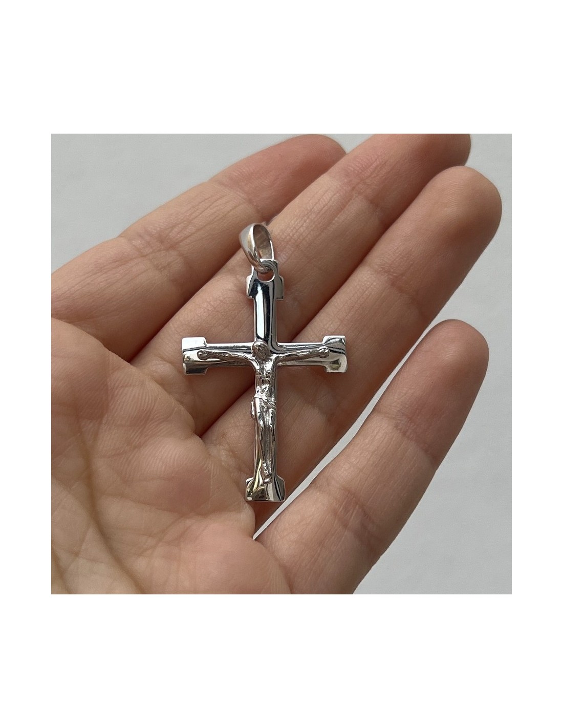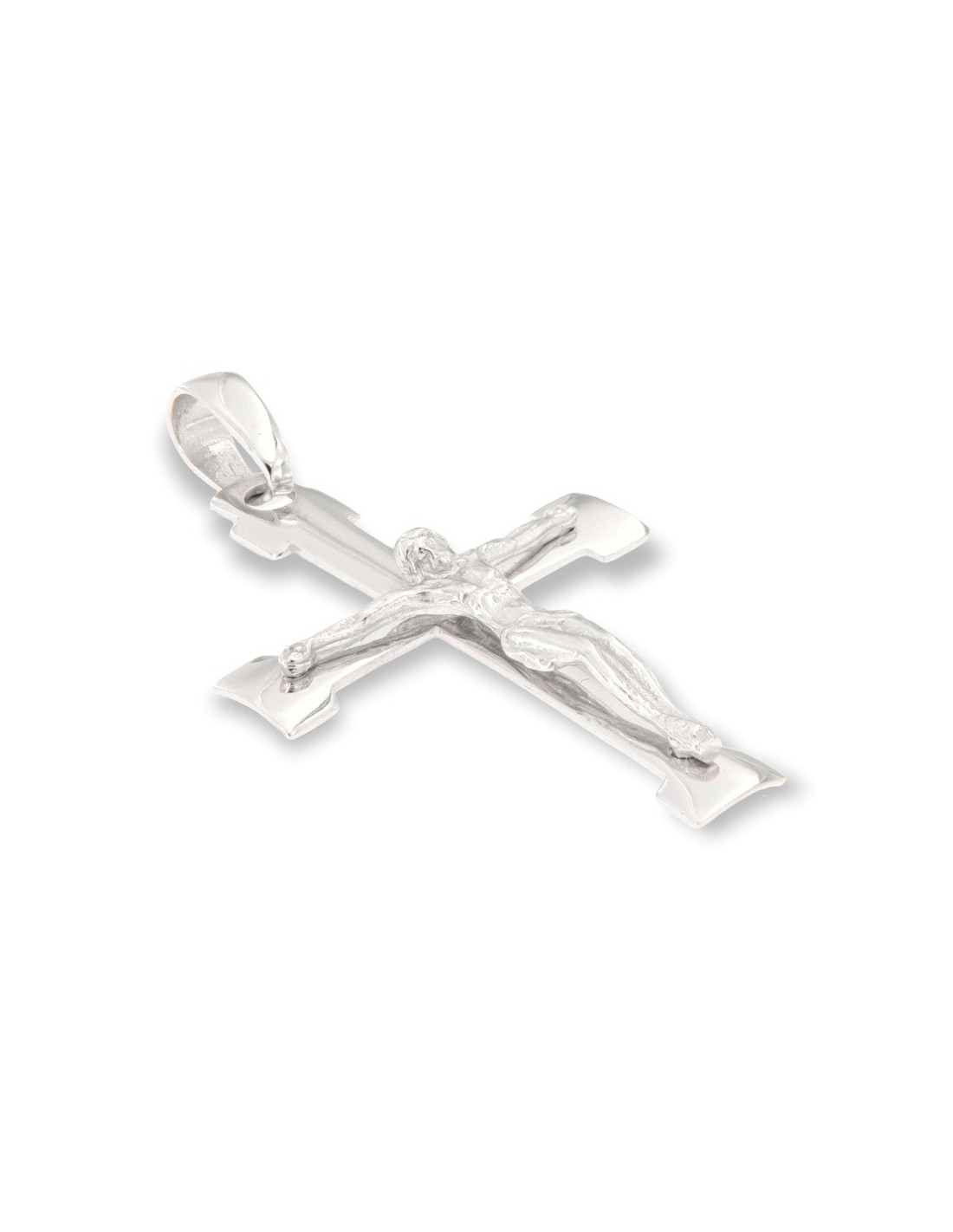 Ciondolo Oro Bianco Croce Gesù Cristo Rilievo 36MM