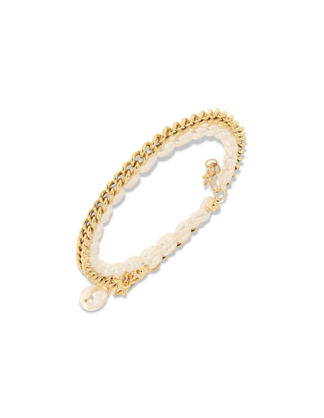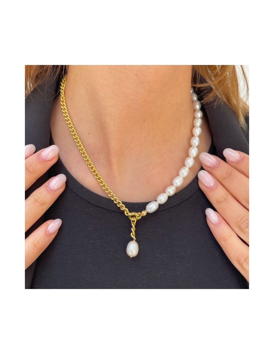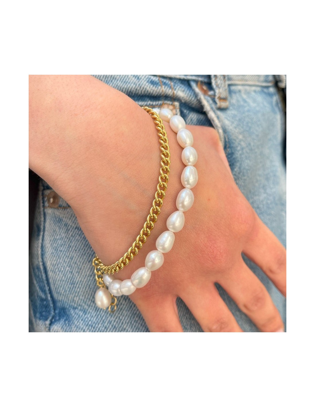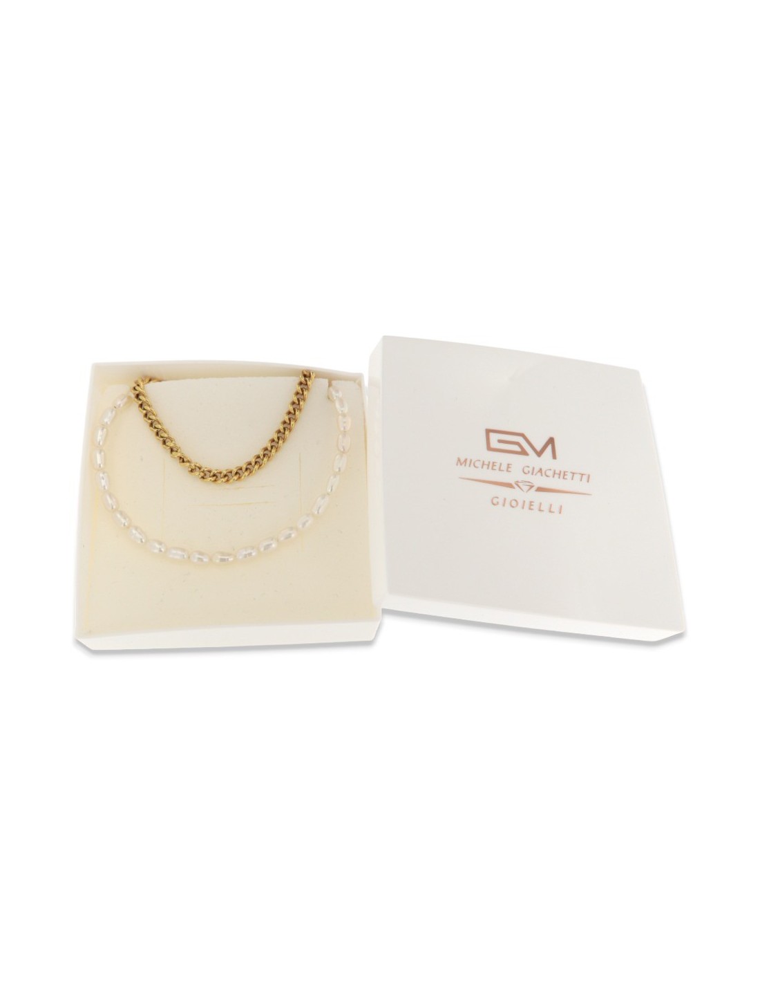 •MATERIALE: il gioiello è composto da due bracciali divisibili che vanno a formare una collana, uno è realizzato interamente in argento 925‰ Dorato (trattamento brillantante contro l'annerimento) modello grumetta e l'altra metà è realizzato in perle lisce da 7 millimetri;