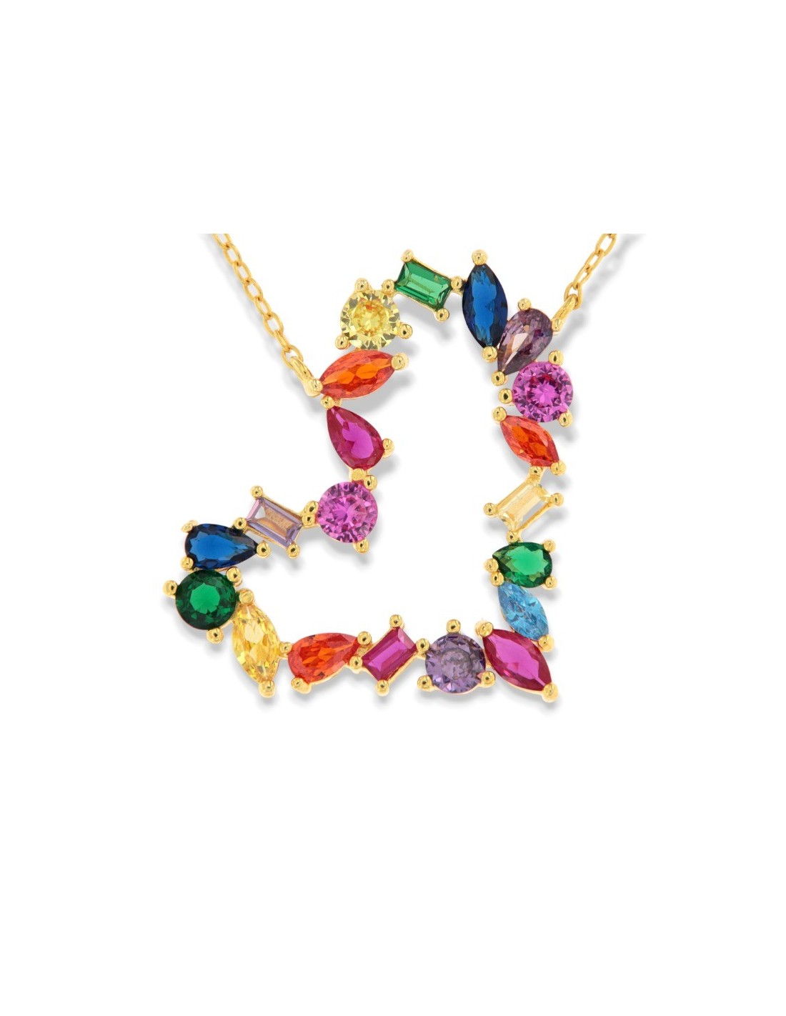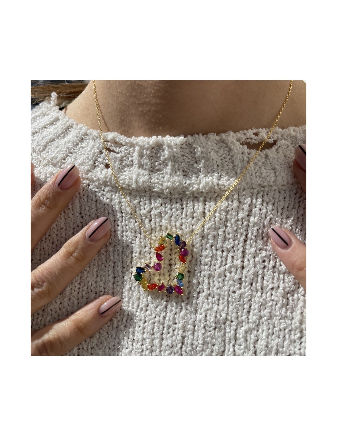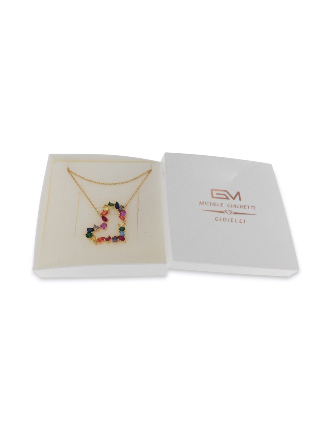 •MATERIALE: la collana è realizzata interamente in argento 925‰ Dorato (trattamento brillantante contro l'annerimento) modello pendente con l'applicazione di Zirconia Cubica multicolore con taglio di alta qualità simile al taglio Brillante del Diamante;