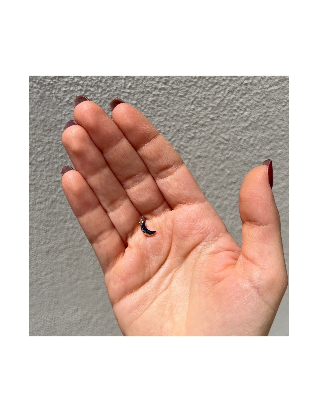 Ciondolo Argento Dorato Luna Zirconi Neri