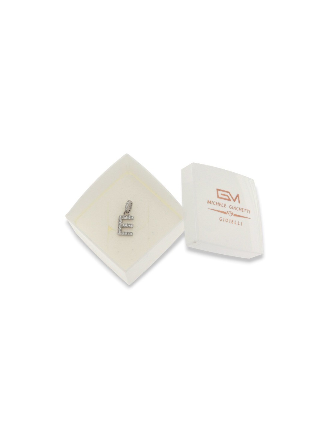 Ciondolo Argento Rodiato Iniziale F Zirconi Bia