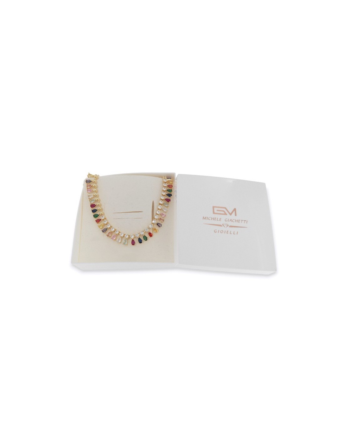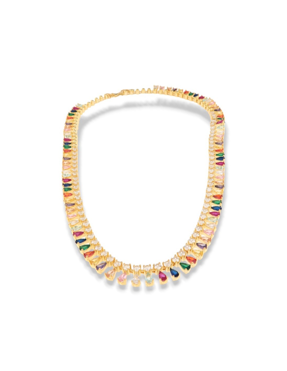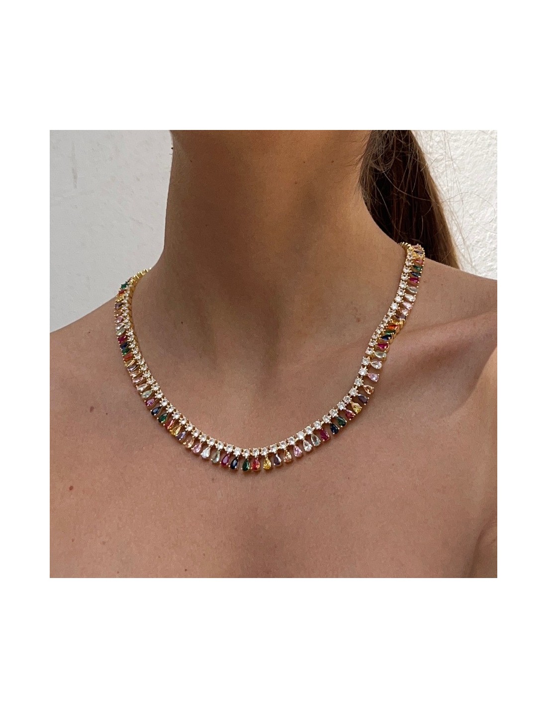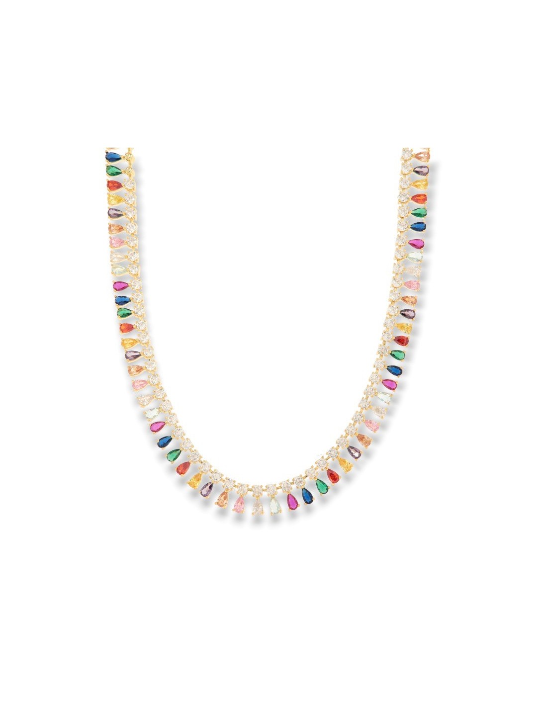 Collana Argento Dorato Goccie Zirconi Colorati