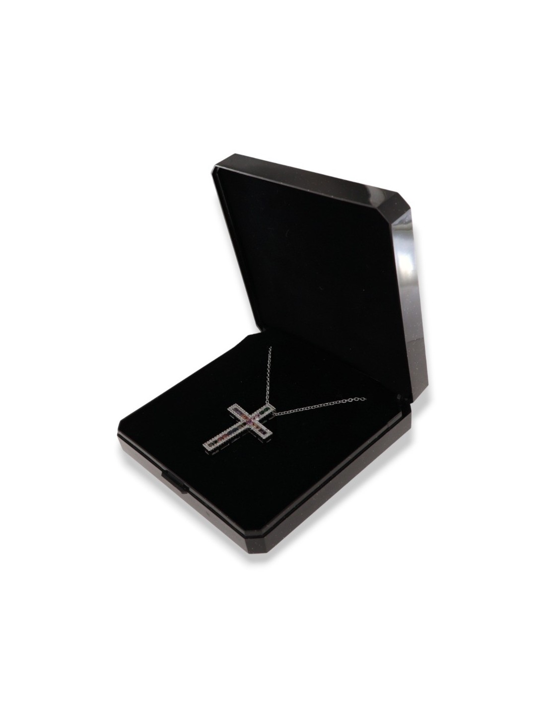 •MATERIALE: la collana è realizzata interamente in acciaio anallergico 316, modello maglia rollina con pendente a forma di Crocifisso con Zirconia Cubica o CZ colorati con taglio di alta qualità simile al taglio Brillante del Diamante;