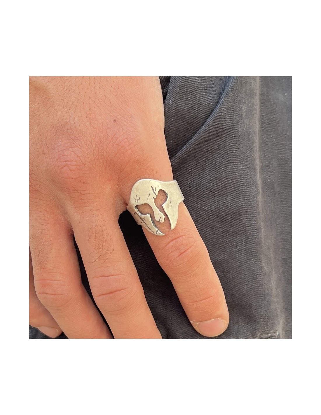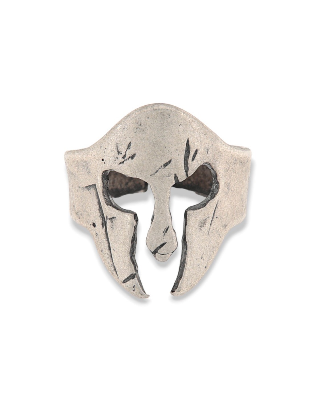 •MATERIALE: l'anello è realizzato interamente in argento 925‰ Rodiato (trattamento brillantante contro l'annerimento) rappresentante un elmetto da combattimento spartano;