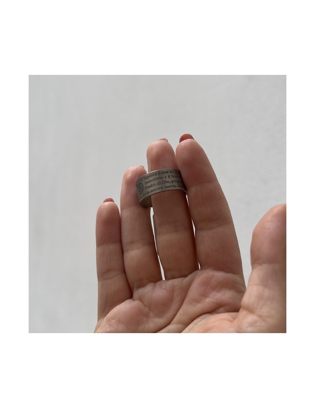 •MATERIALE: l'anello è realizzato interamente in argento 925‰ Rodiato (trattamento brillantante contro l'annerimento) con incisione dell'ave maria;