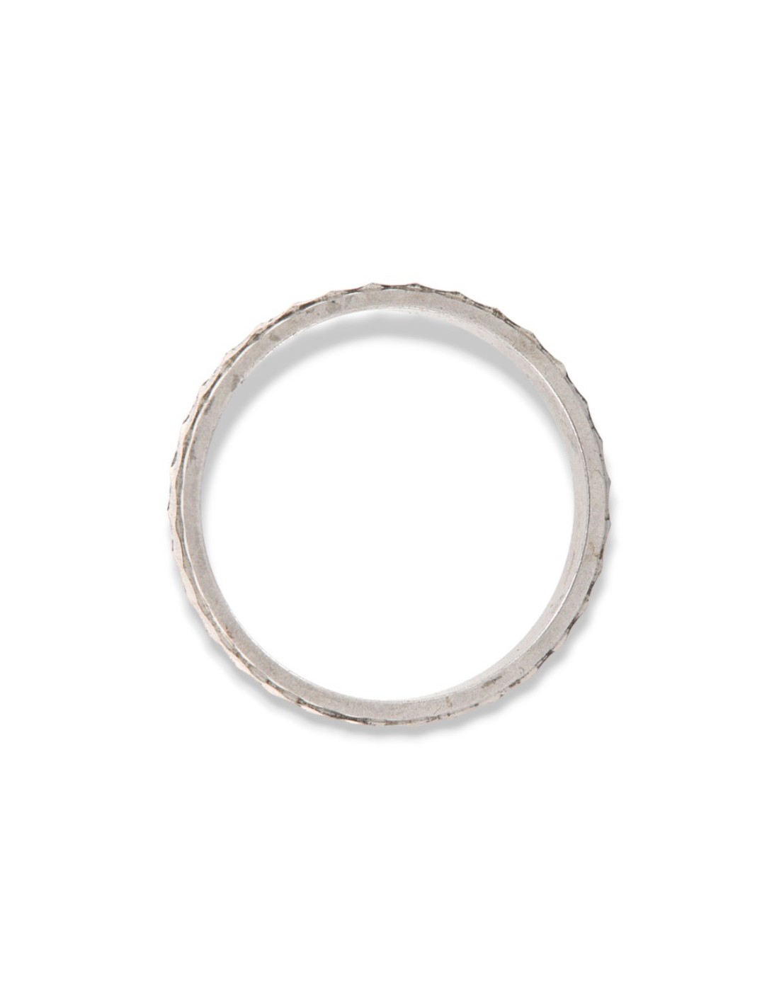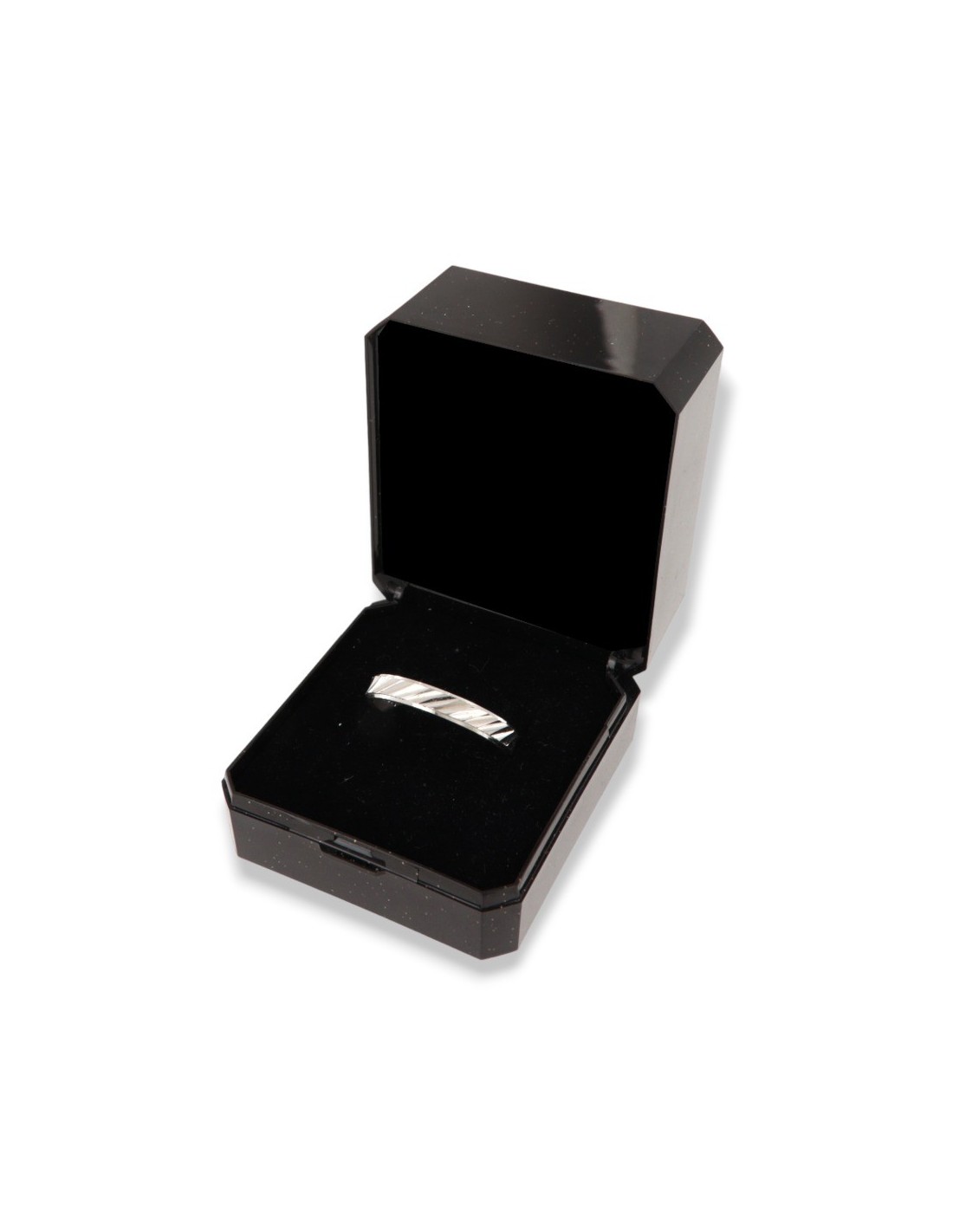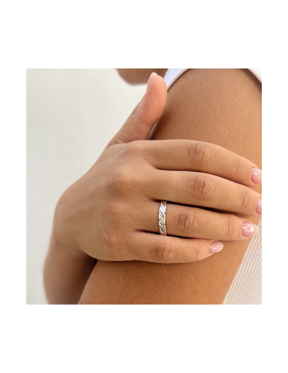 •MATERIALE: l'anello è realizzato interamente in argento 925‰ Rodiato (trattamento brillantante contro l'annerimento) modello fascetta con tagli trasversali;