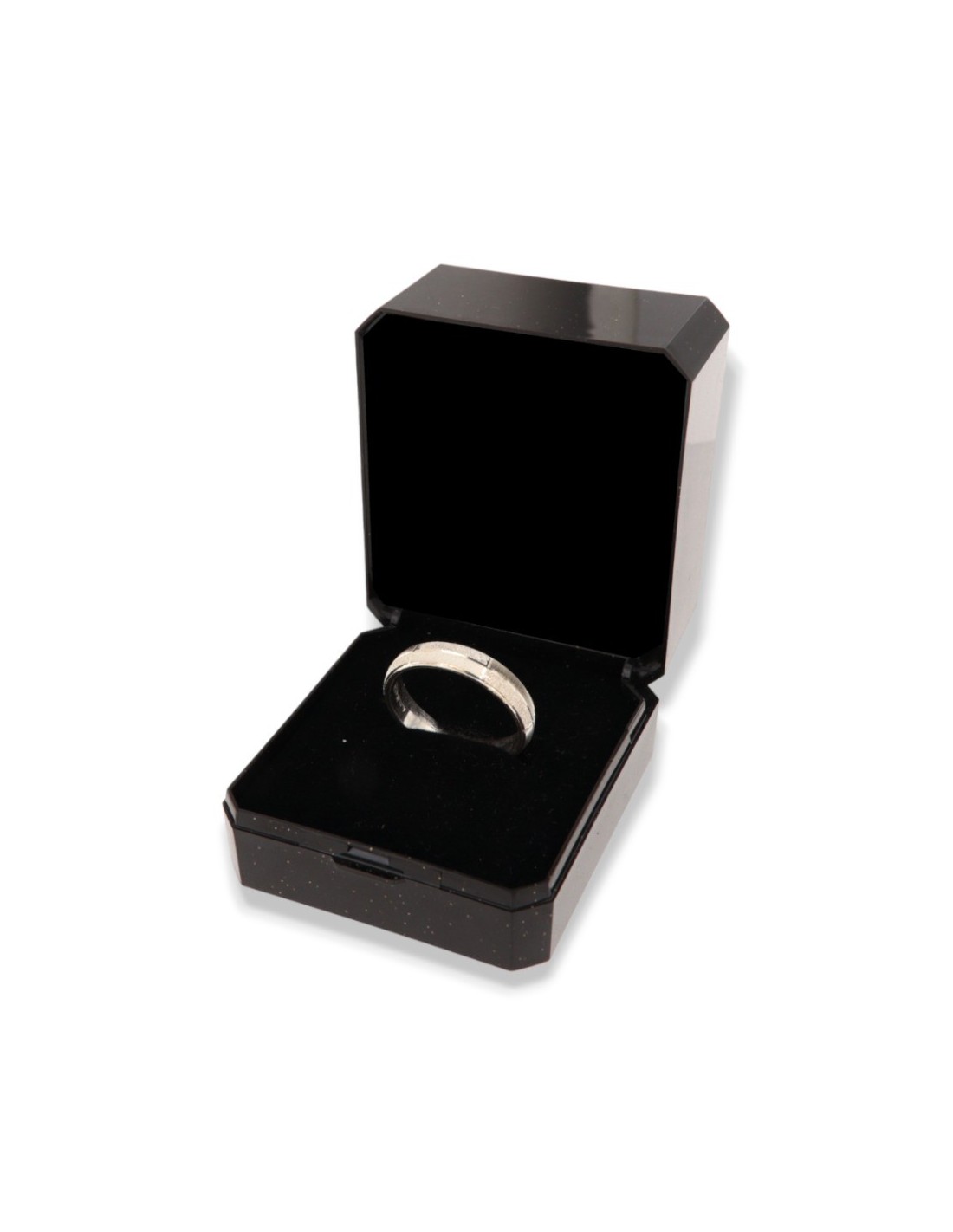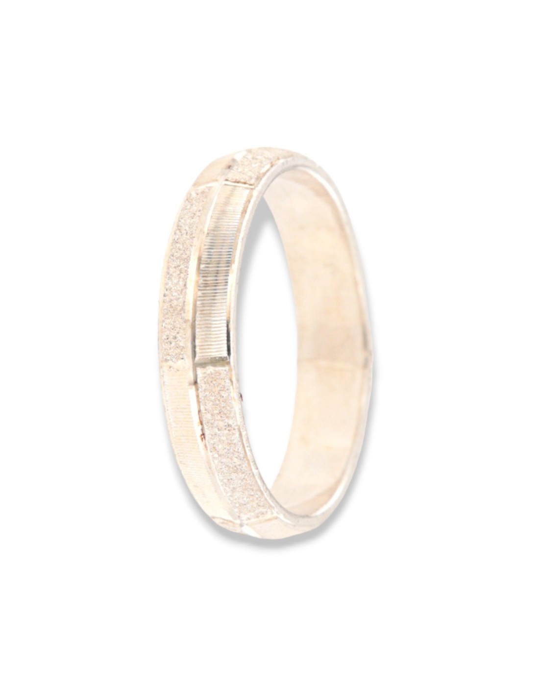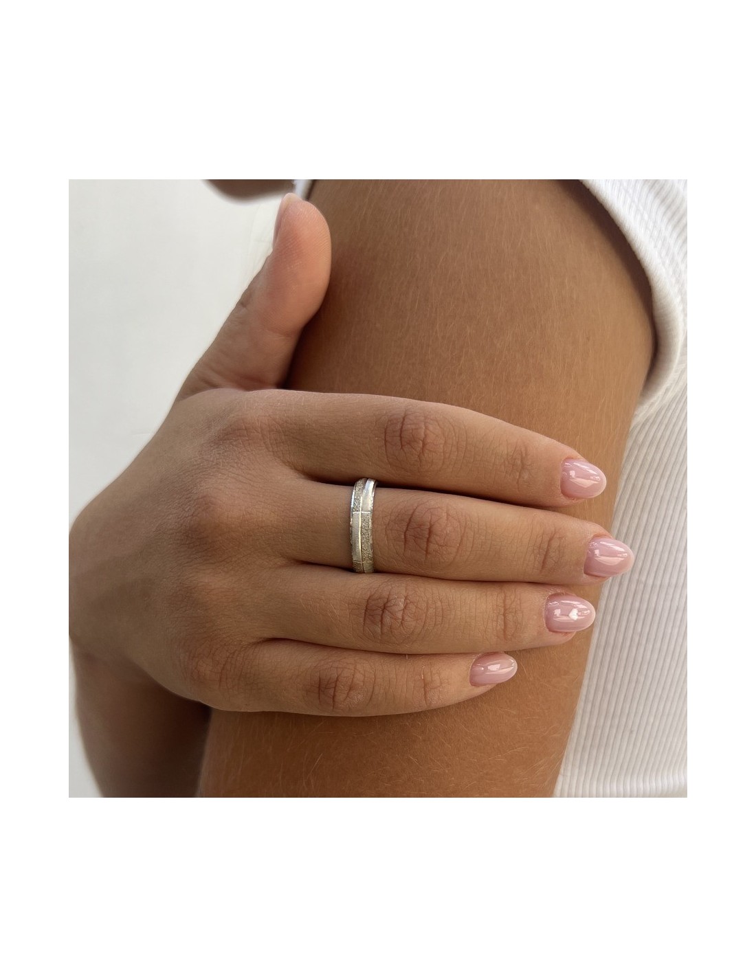 •MATERIALE: l'anello è realizzato interamente in argento 925‰ Rodiato (trattamento brillantante contro l'annerimento) modello fascetta con lavorazione alternata satinata e diamantata;