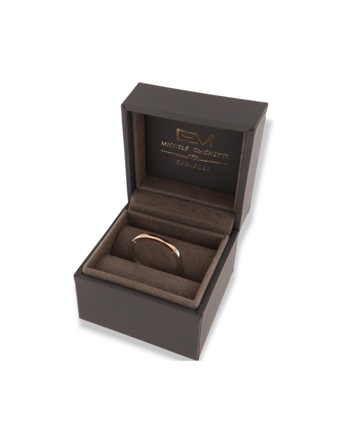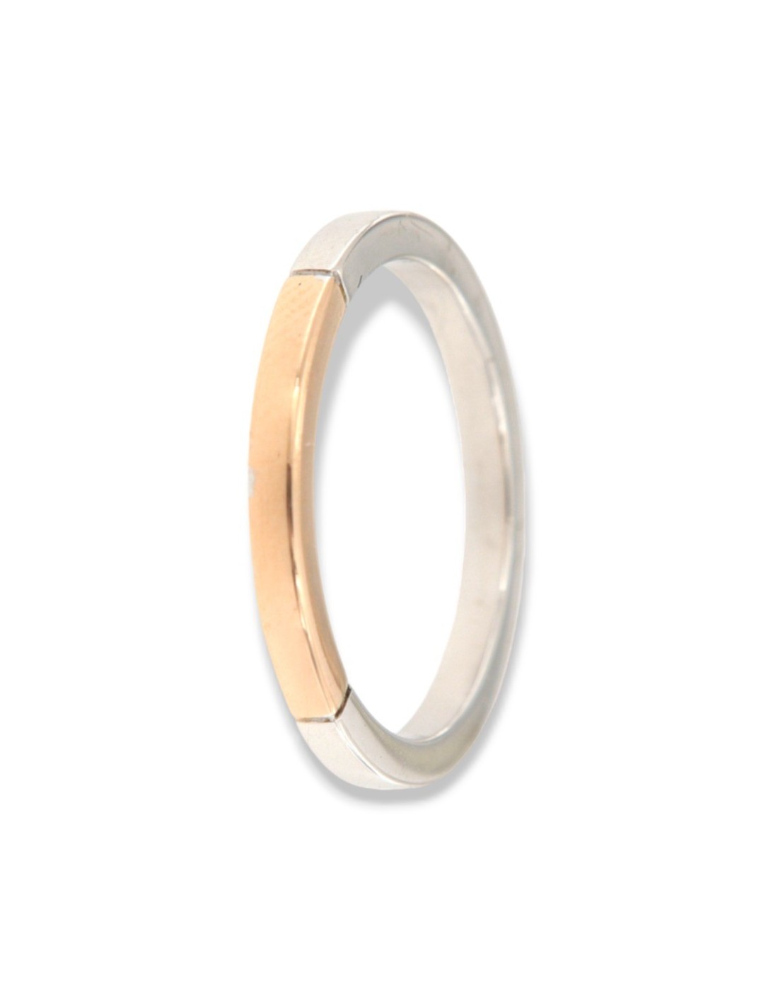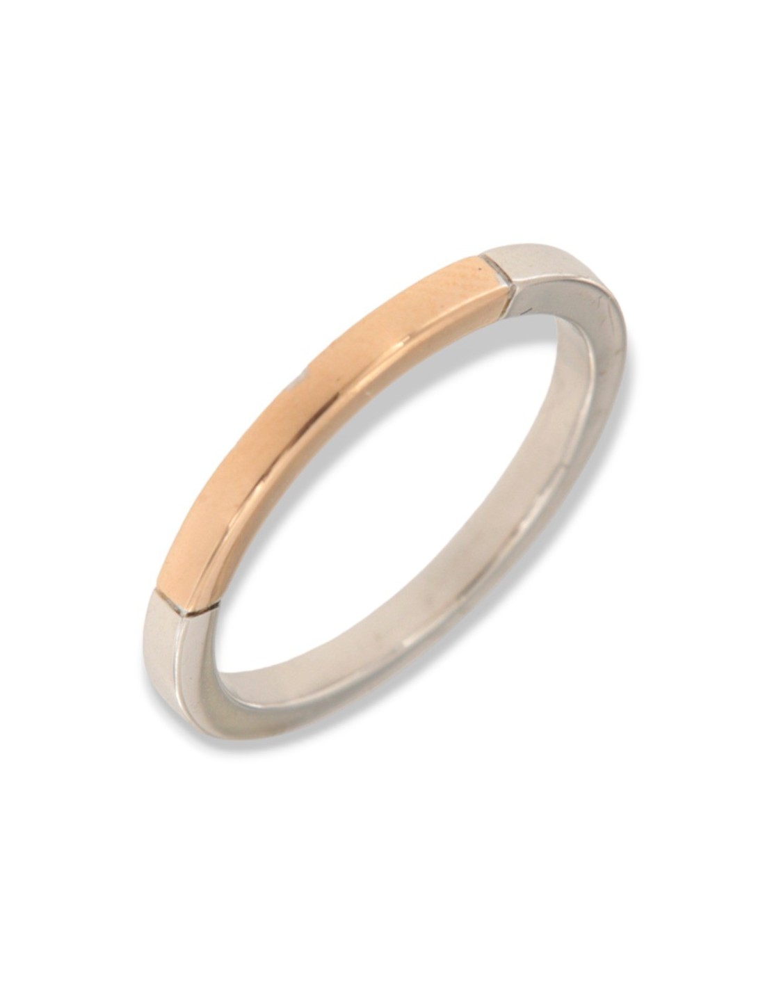 •MATERIALE: l'anello è realizzato interamente in oro bianco 750‰ (18 Carati) modello fascia a sezione quadrata con inserto di oro rosa;