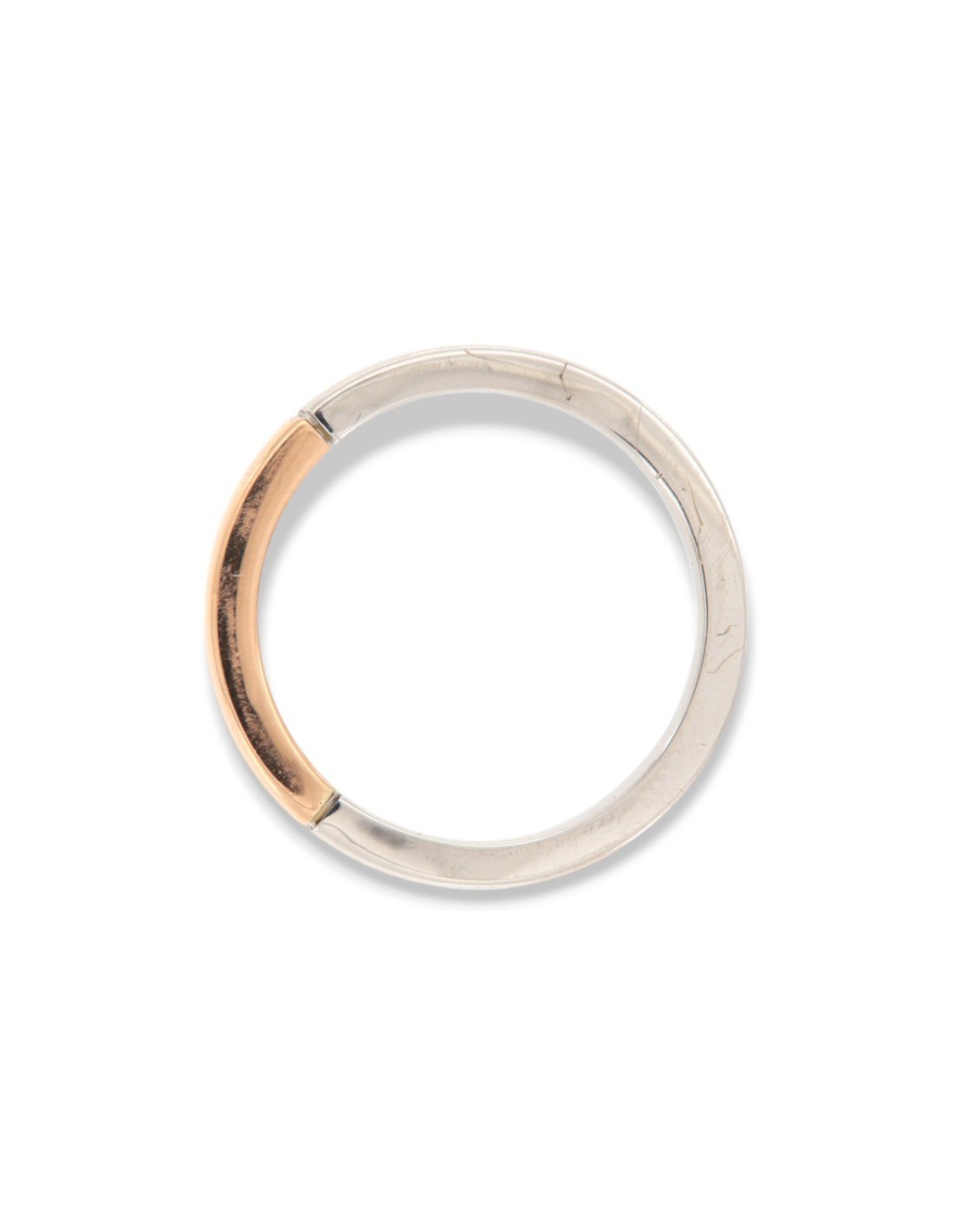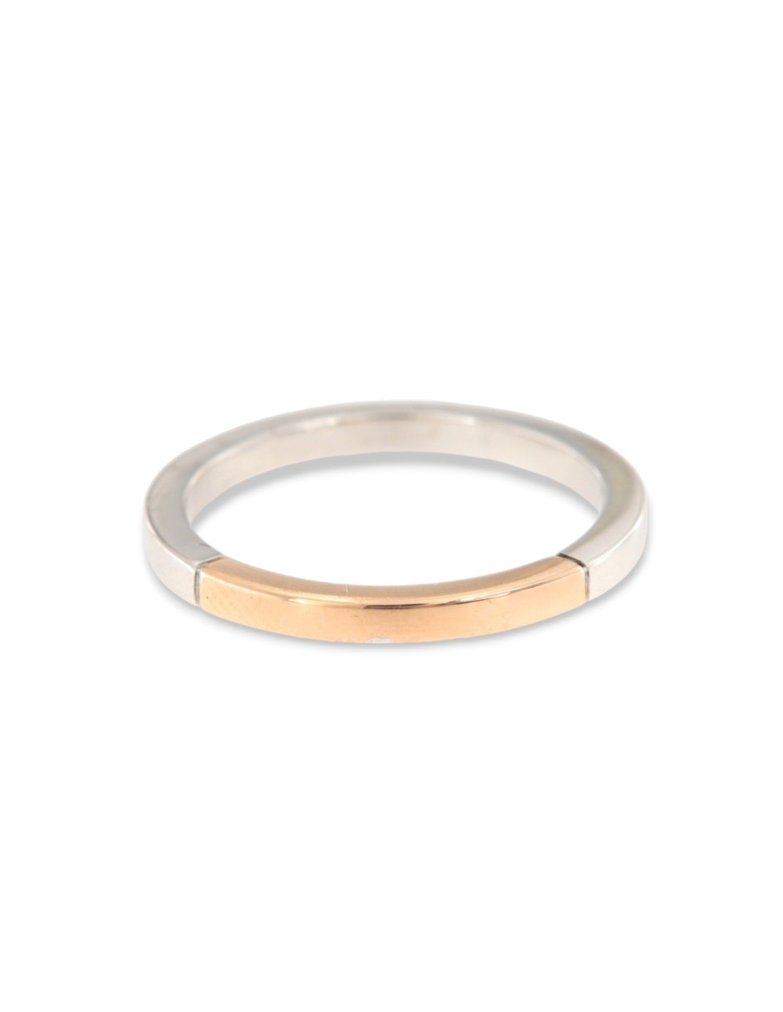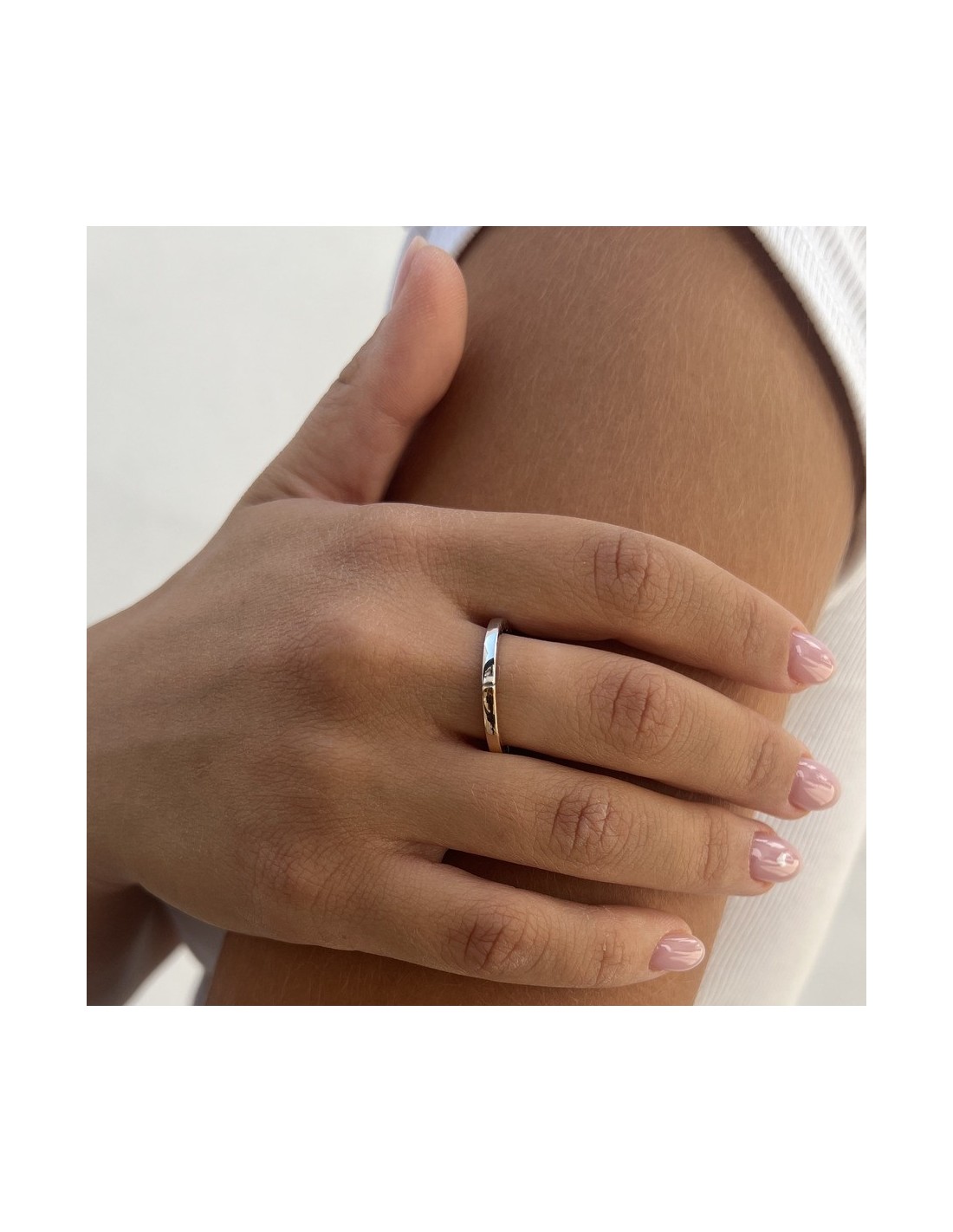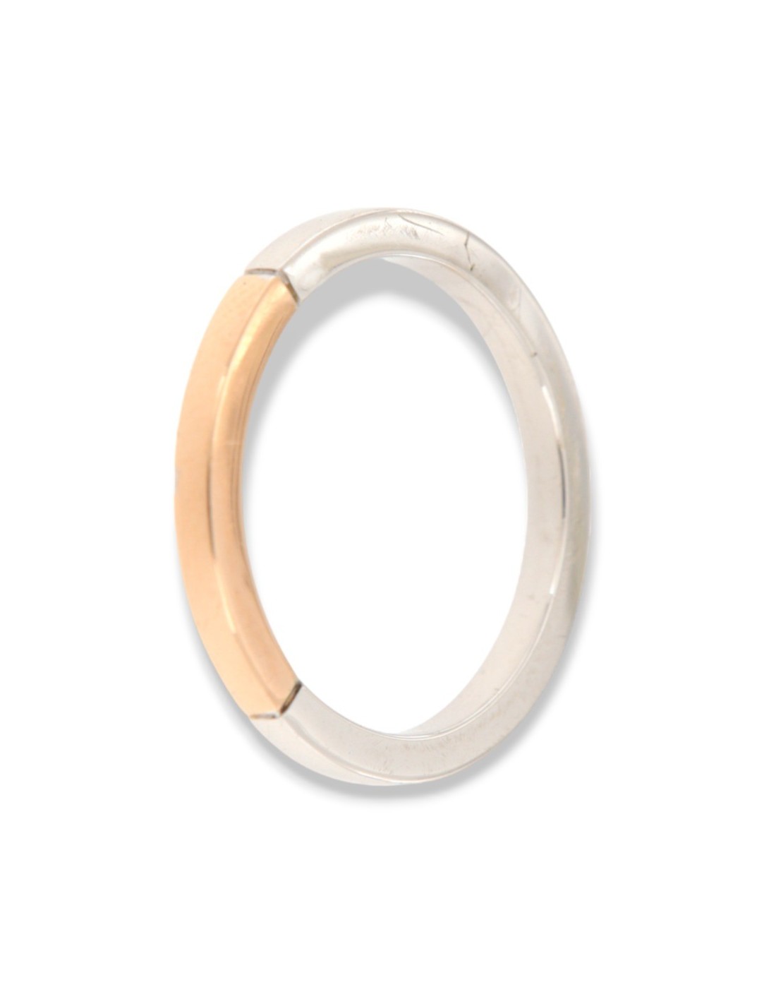 •MATERIALE: l'anello è realizzato interamente in oro bianco 750‰ (18 Carati) modello fascia a sezione quadrata con inserto di oro rosa;