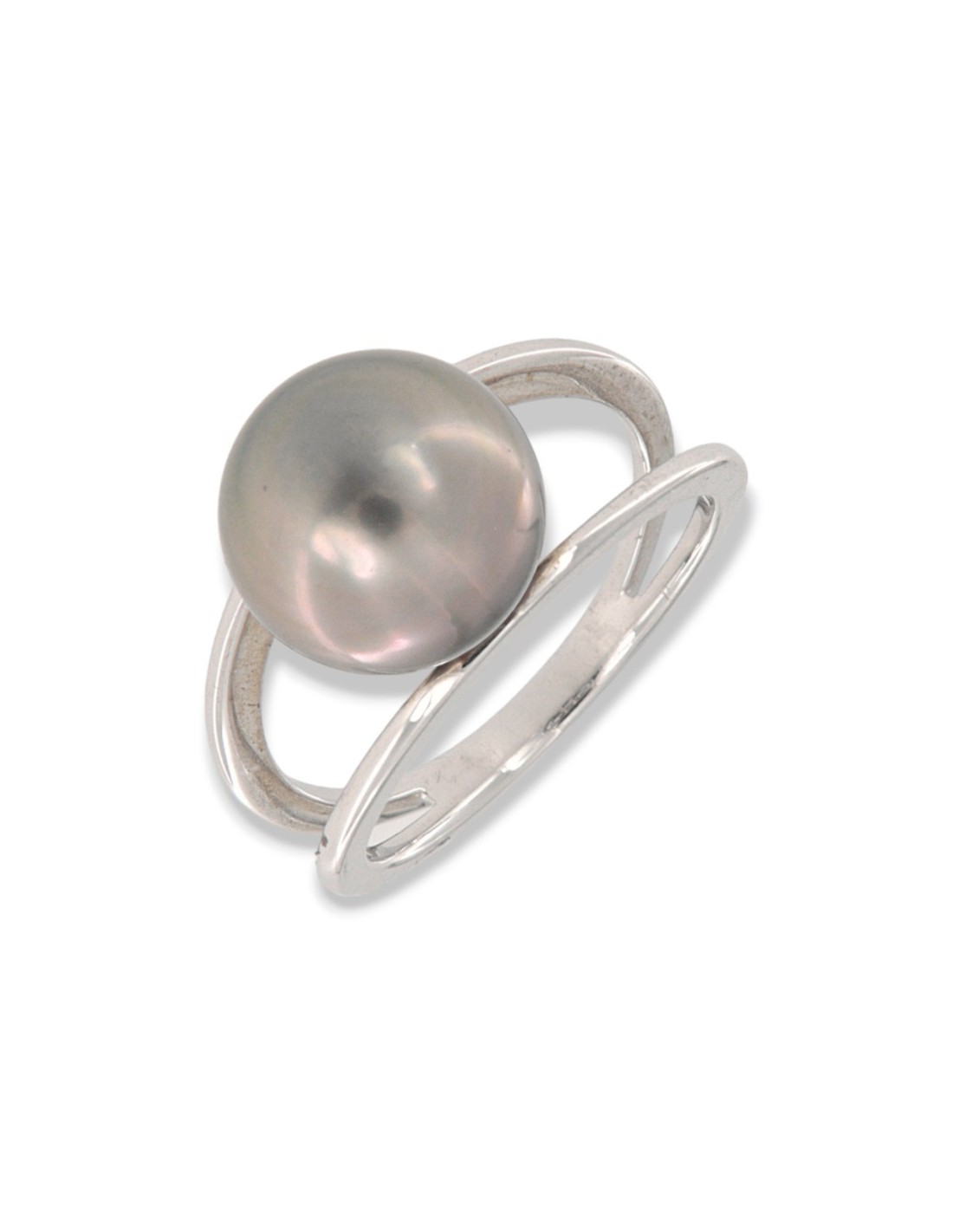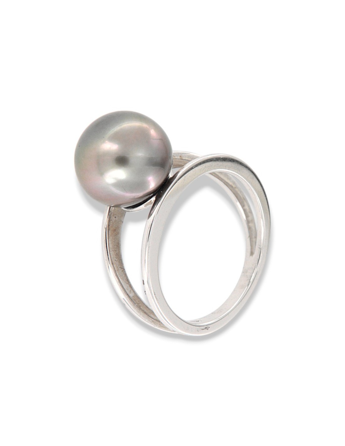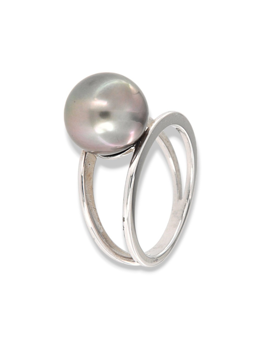 Anello Argento Rodiato Doppia Fascia Perla Grigia