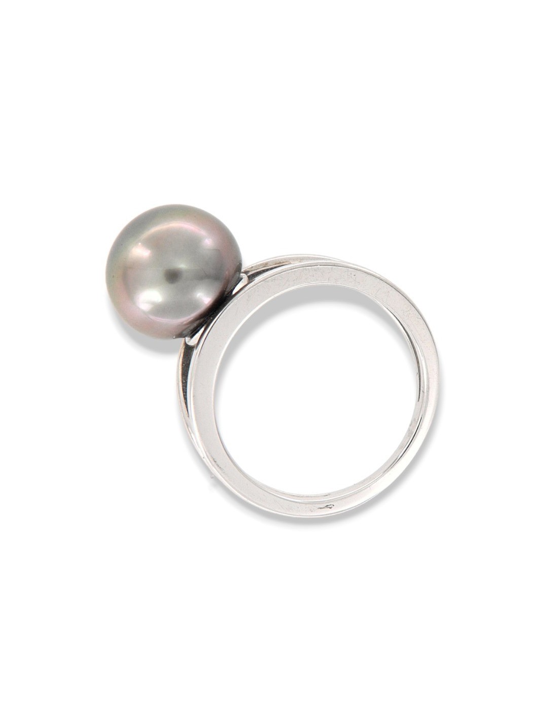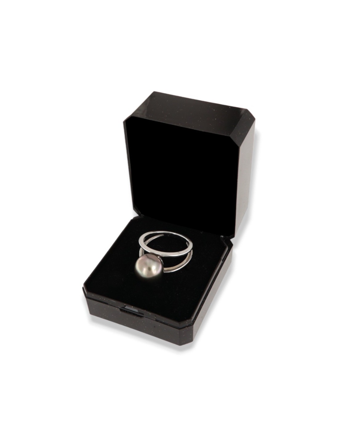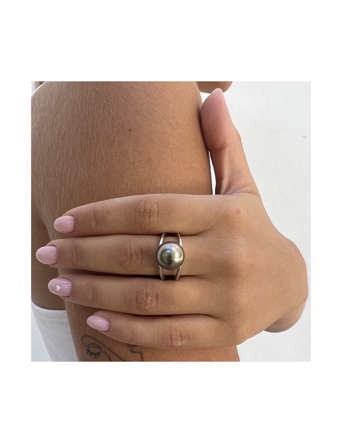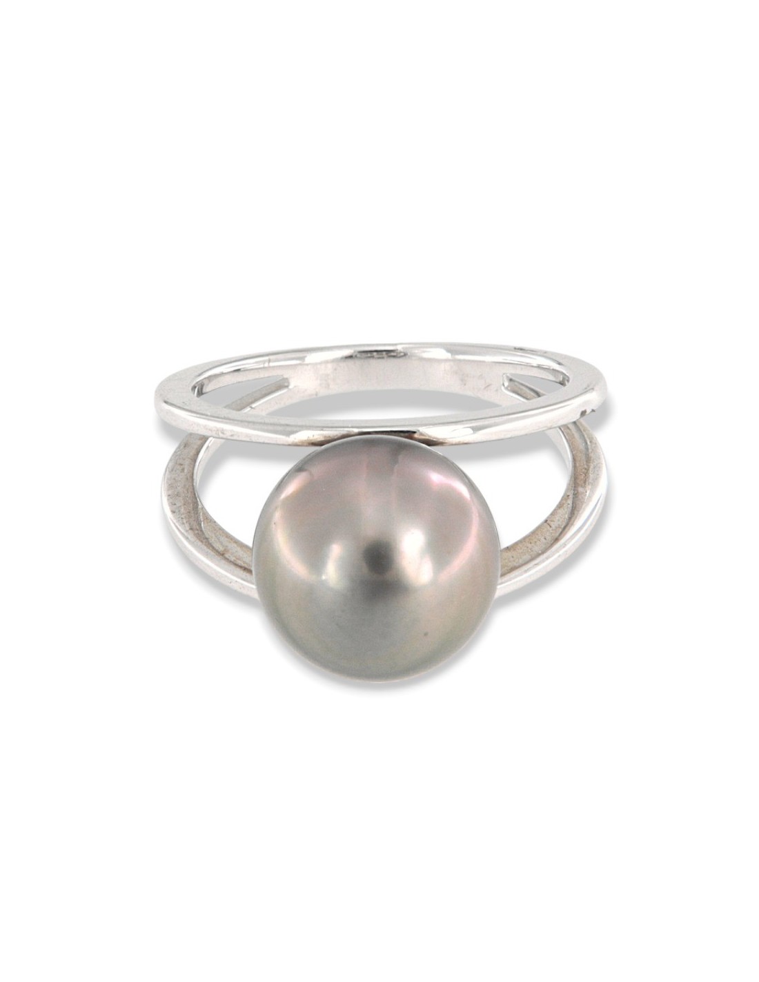 Anello Argento Rodiato Doppia Fascia Perla Grigia