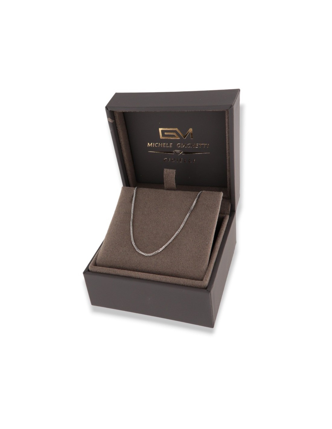 •MATERIALE: la collana è realizzata interamente in oro bianco 750‰ (18 Carati) modello maglia quadrispiga spessa;