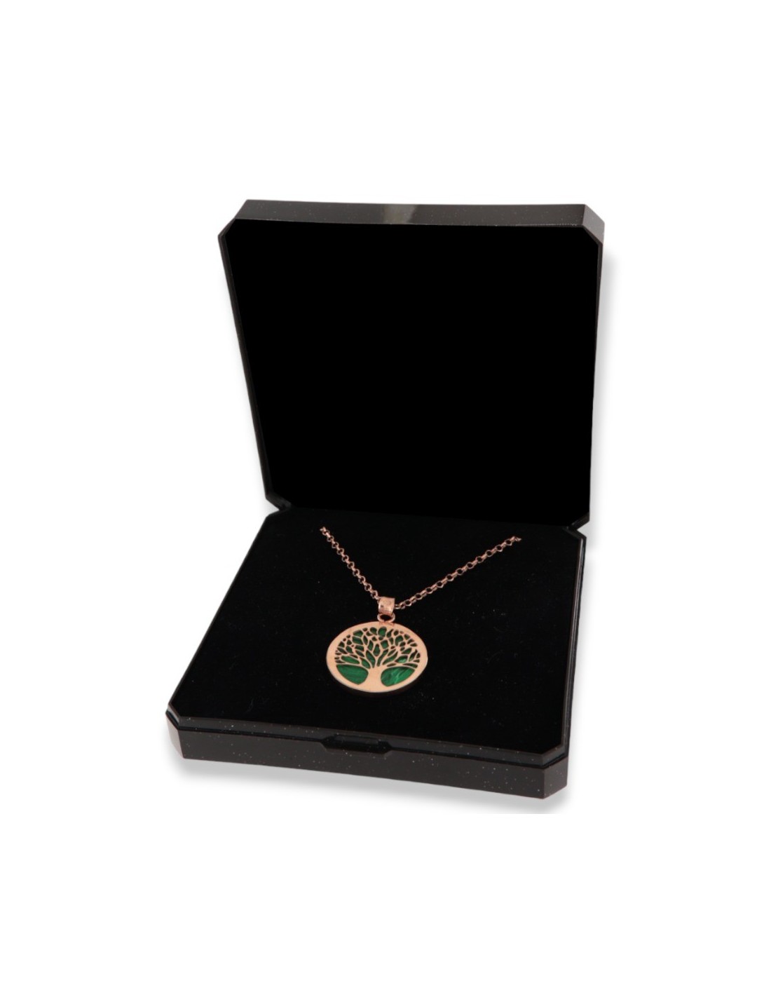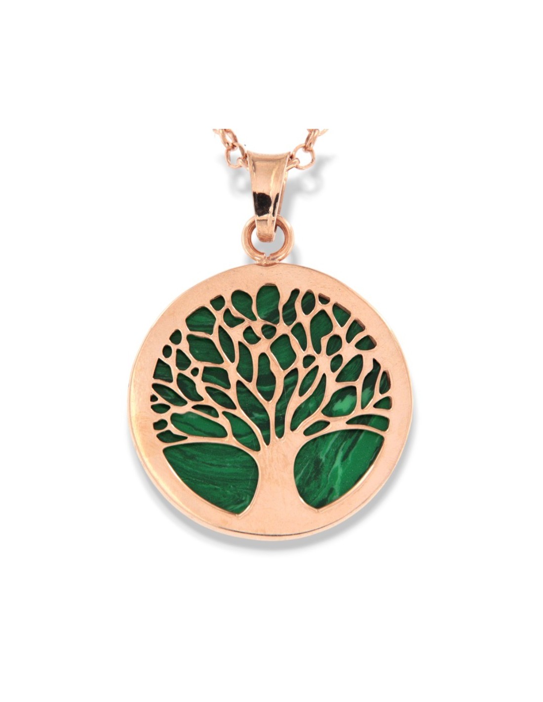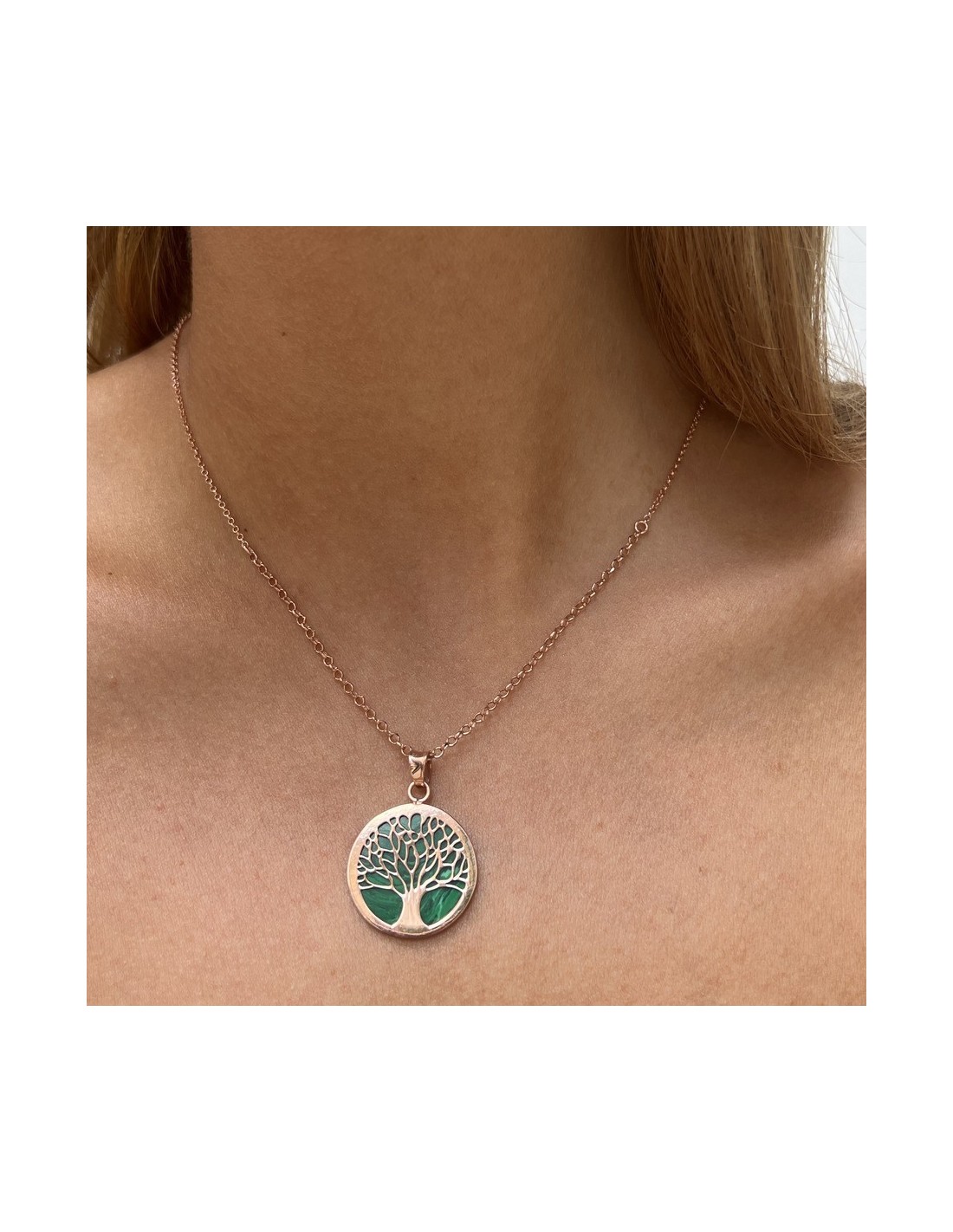 •MATERIALE: la collana è realizzata interamente in argento 925‰ Rosato (trattamento contro l'annerimento) modello maglia rollo e rollina, con pendente a forma di albero della vita composto da Malachite Verde Naturale;
