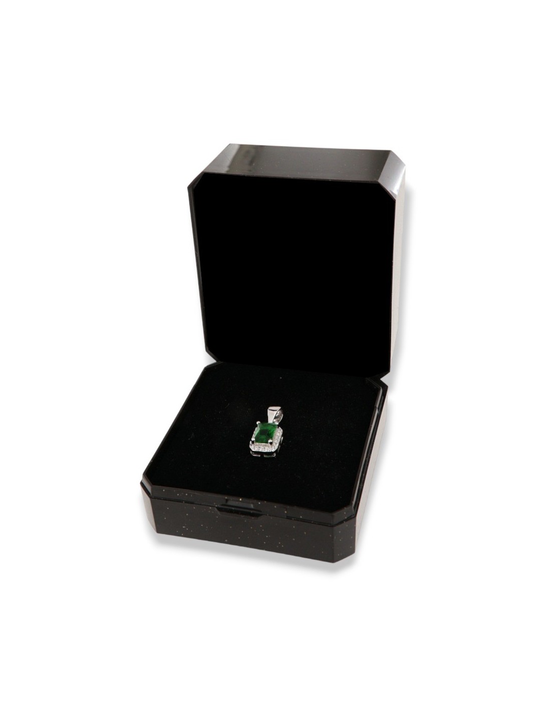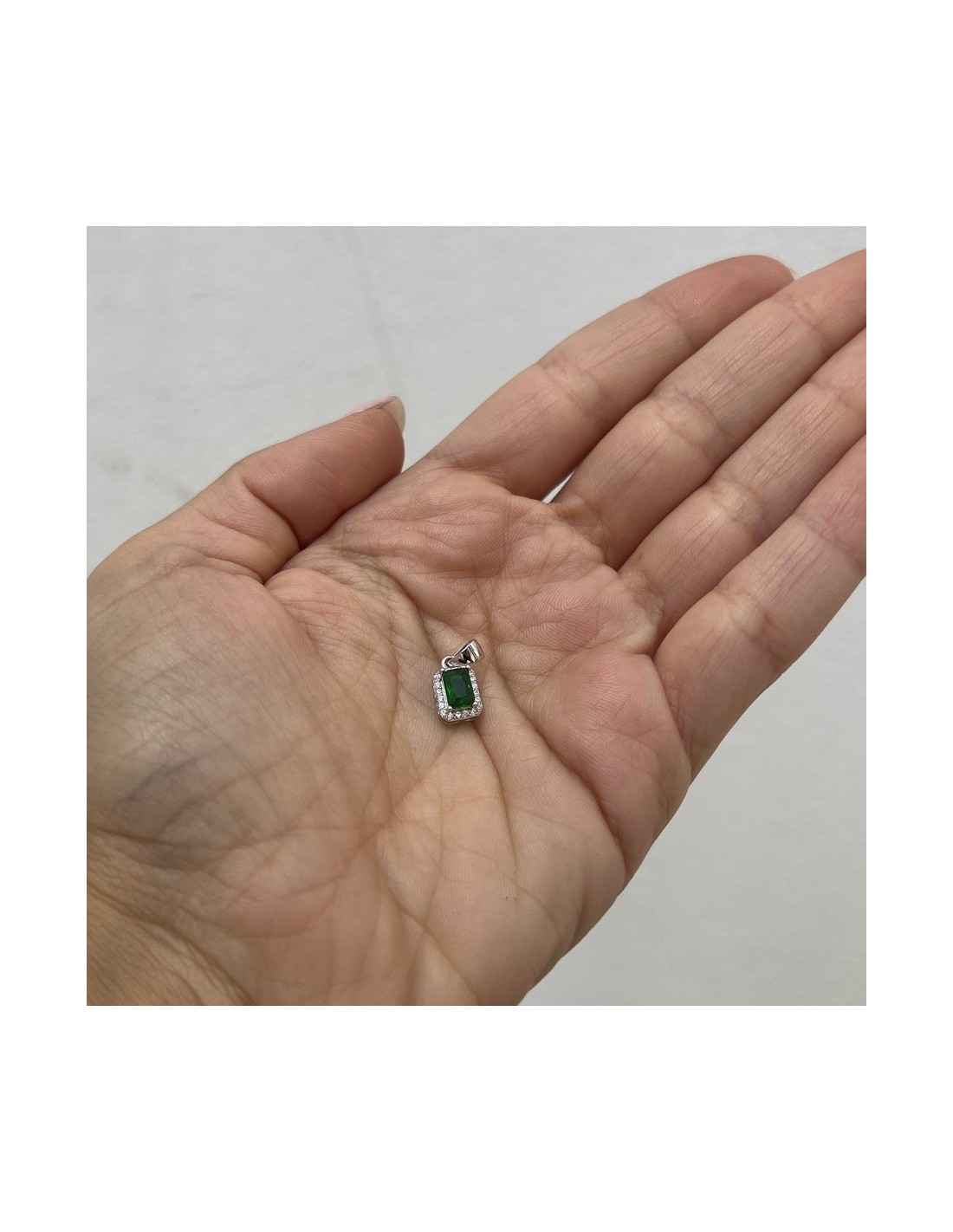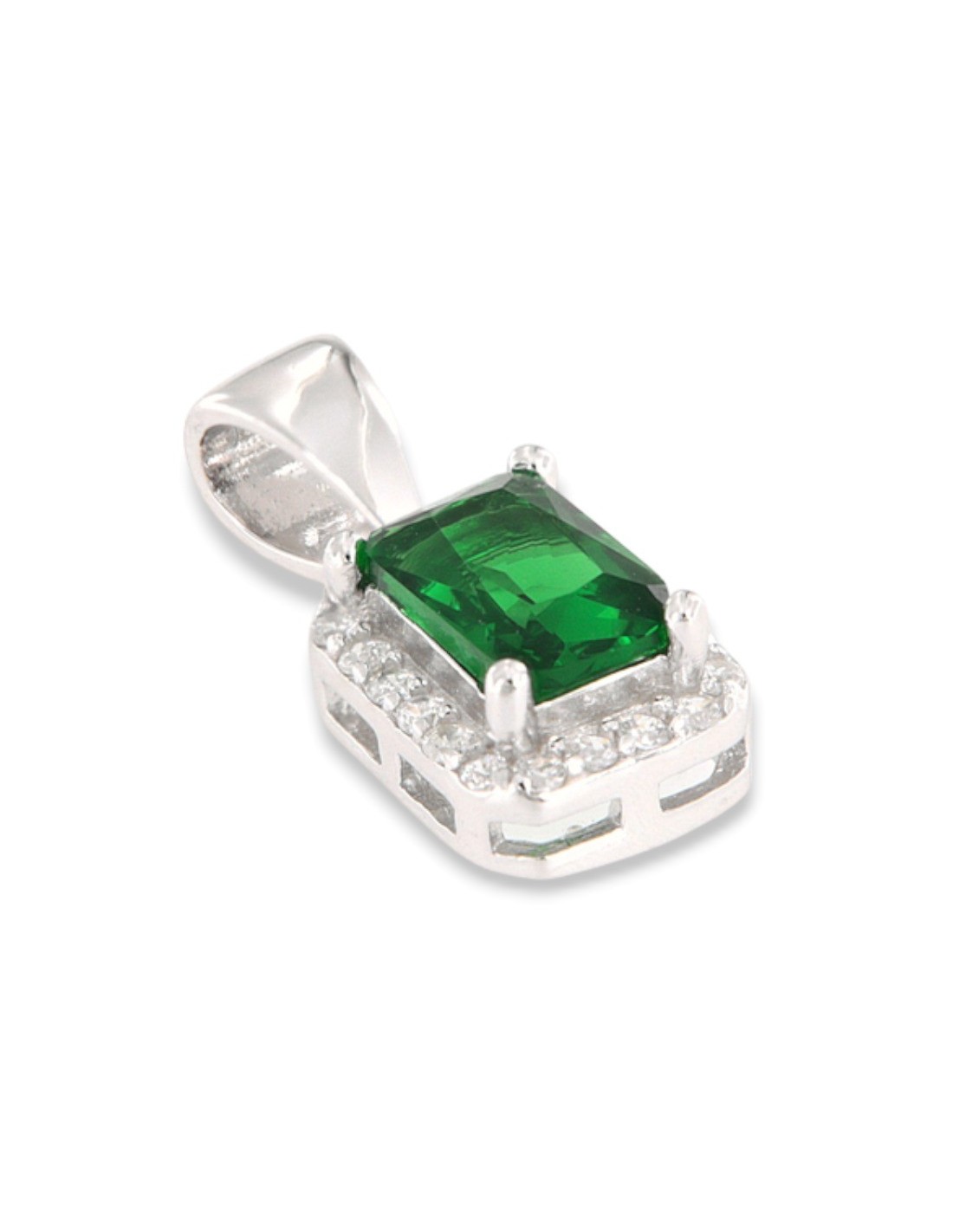 •MATERIALE: Il ciondolo è realizzato interamente in argento 925‰ Rodiato (trattamento brillantante contro l'annerimento) modello principessa rettangolare composto da un Zirconia Cubica o CZ verde misura 6x4 centrale circondato da altri Zirconia Cubica o CZ bianchi con taglio di alta qualità simile al taglio Brillante del Diamante;