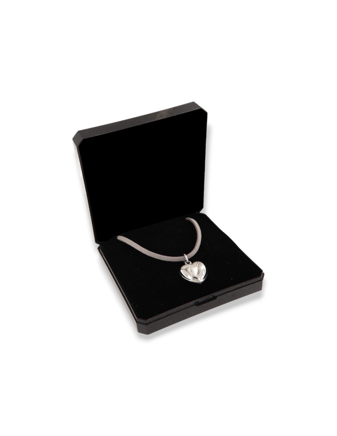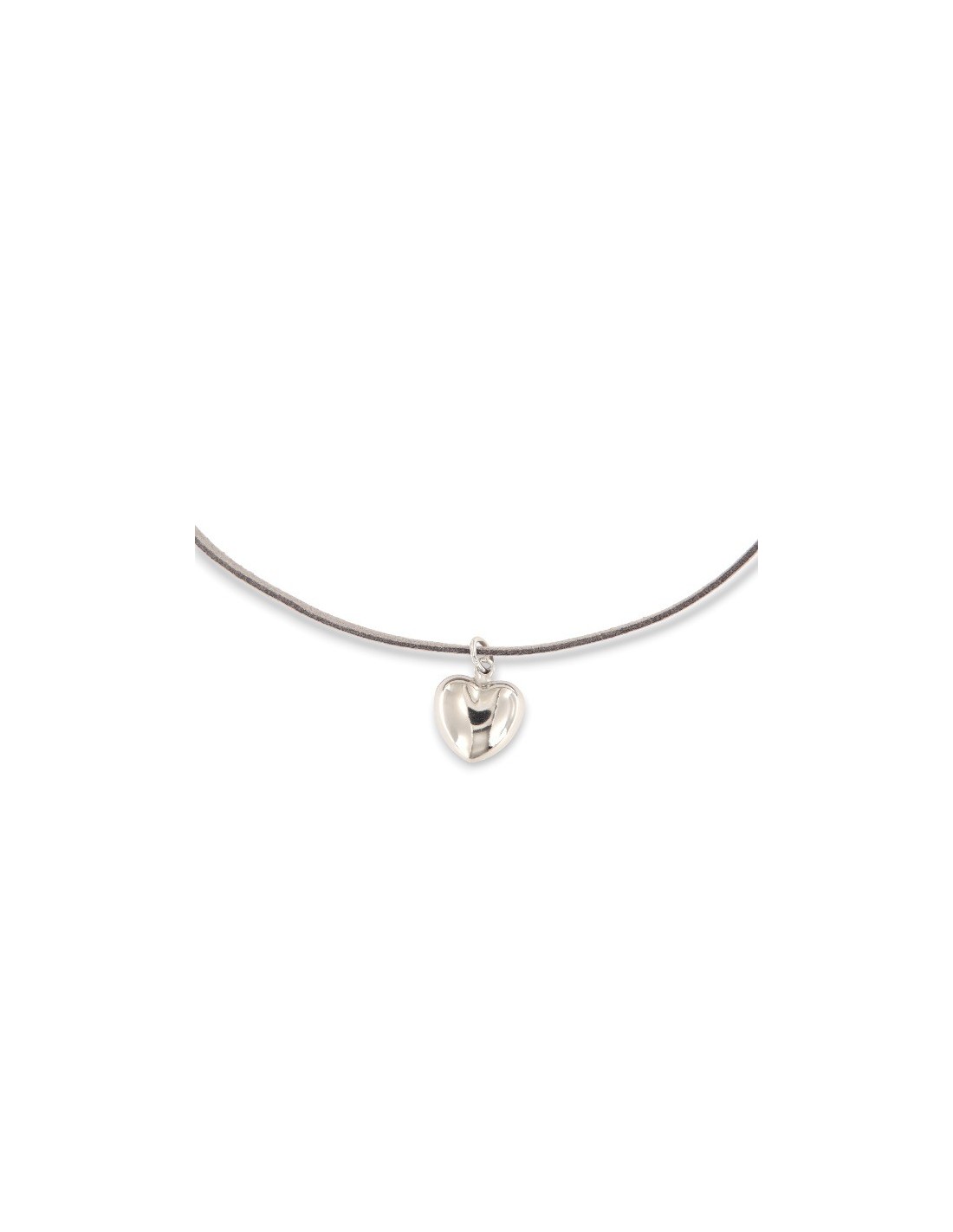 •MATERIALE: la collana è realizzata con ciondolo in argento 925‰ Rodiato (trattamento brillantante contro l'annerimento) a forma di cuore bombato e laccio Grigio in Alcantara;