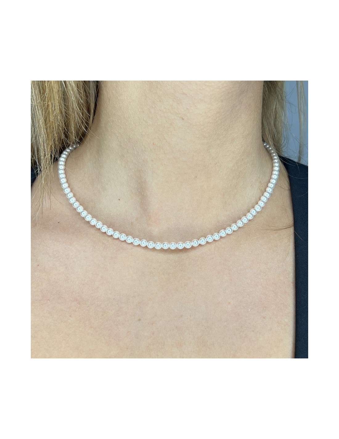 Collana Perle Bianche 4MM Chiusura Argento Rodiato