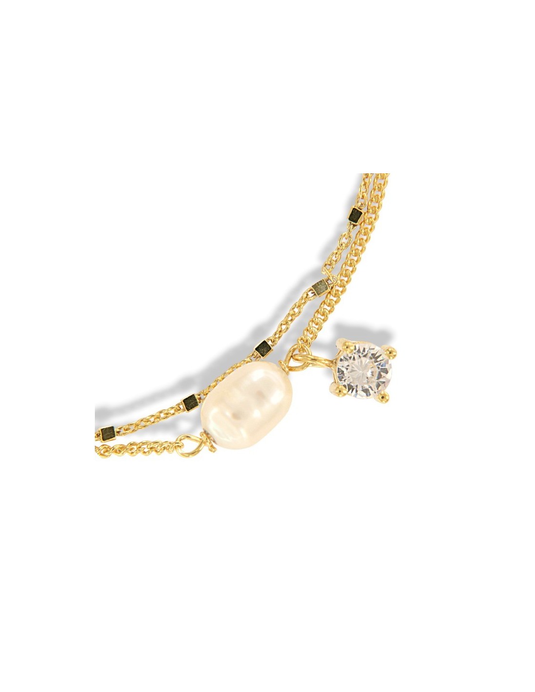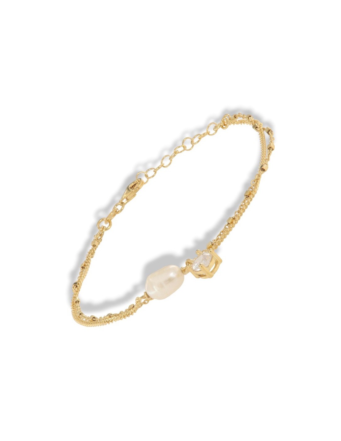 Bracciale Argento Dorato Catena Con Perla E Puntoluce Zircone Bianco