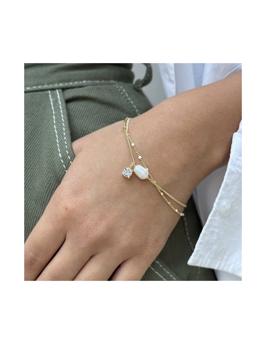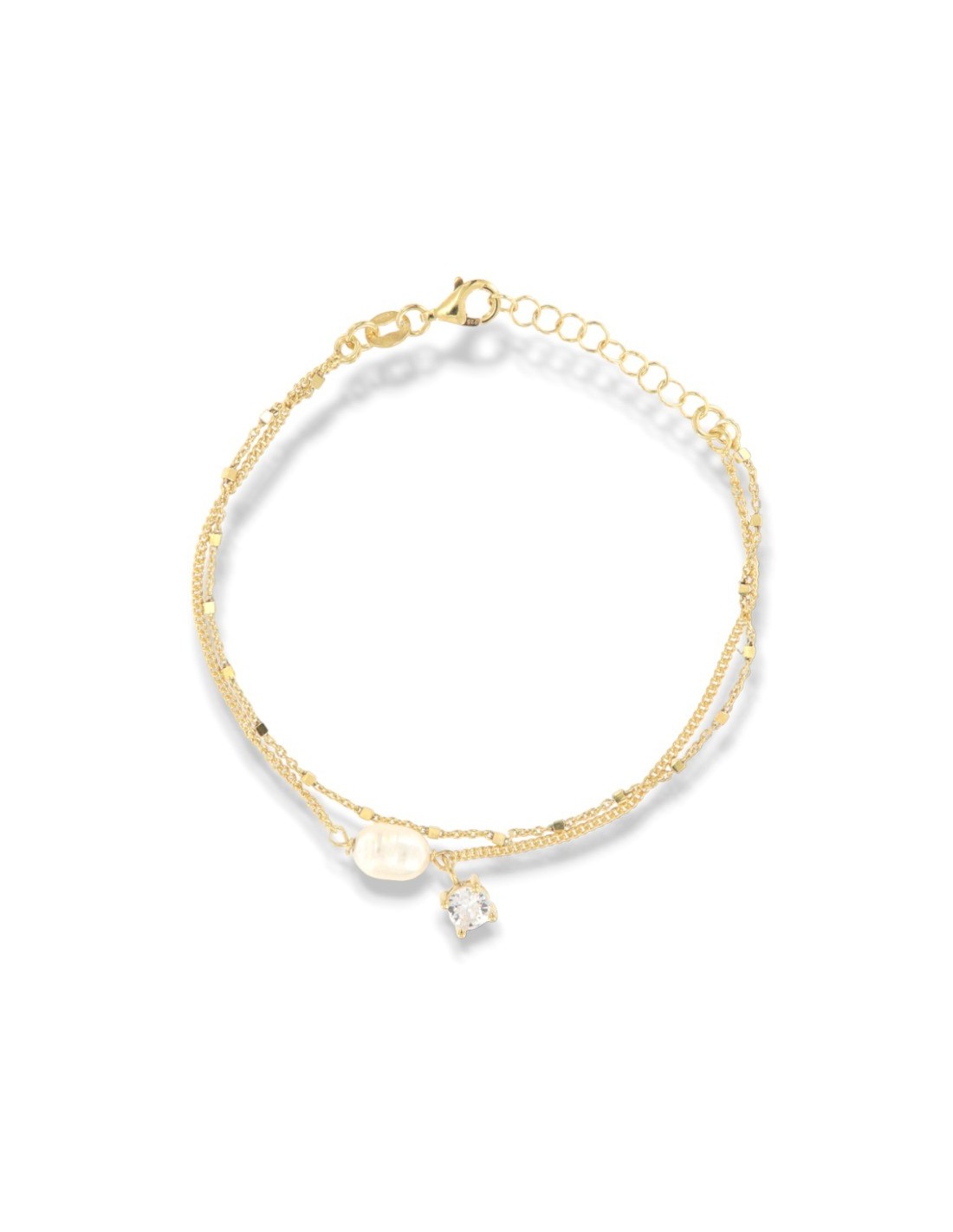 Bracciale Argento Dorato Perla Con Puntoluce Bianco