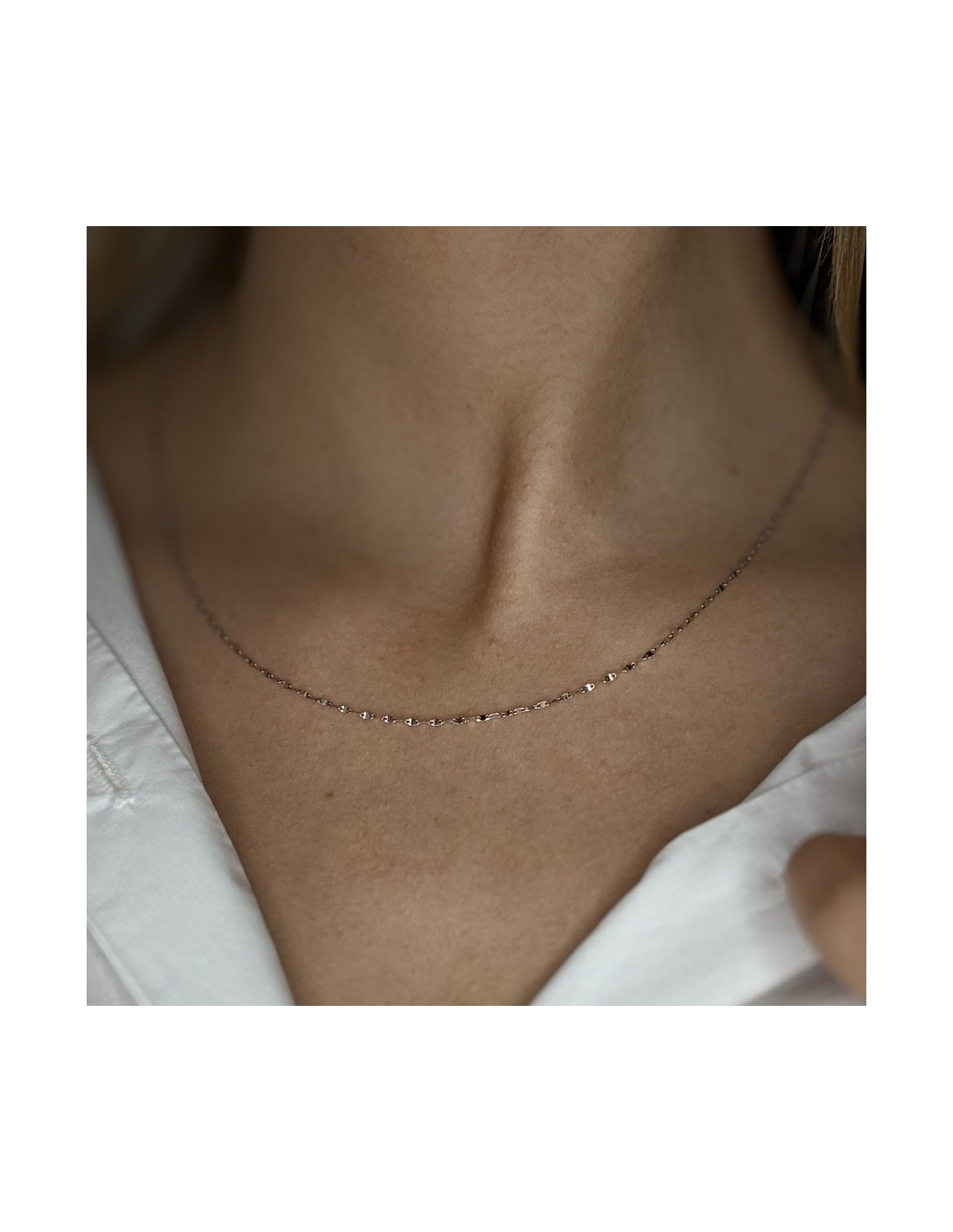 •MATERIALE: la collana è realizzata interamente in oro bianco 750‰ (18 Carati) modello maglia Marina sottile;