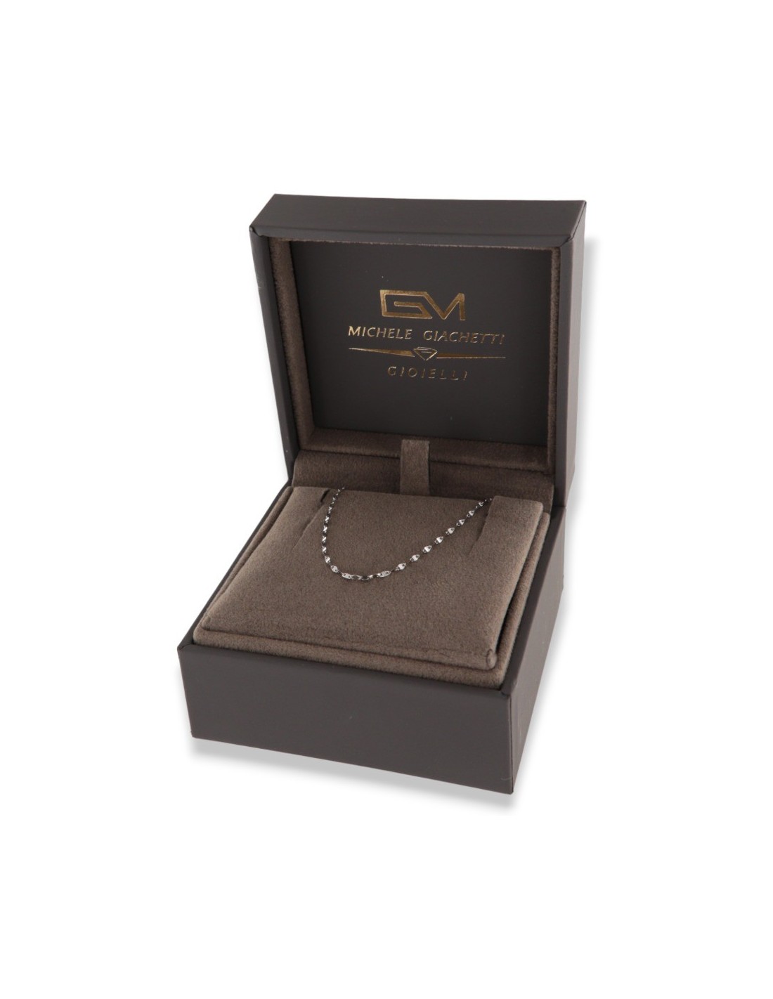 •QUALITA': I Gioielli creati da MICHELE GIACHETTI GIOIELLI sono interamente realizzati in oro bianco, giallo e rosa 750‰ (18 Carati) di titolo con manifattura artigiana rigorosamente ITALIANA e l'oro bianco ha un trattamento finale di Rodiatura che consiste in un’applicazione galvanica superficiale di RODIO, un elemento appartenente ai metalli nobili, molto raro e prezioso che conferisce al gioiello un aspetto più Brillante e Luminoso nel tempo!