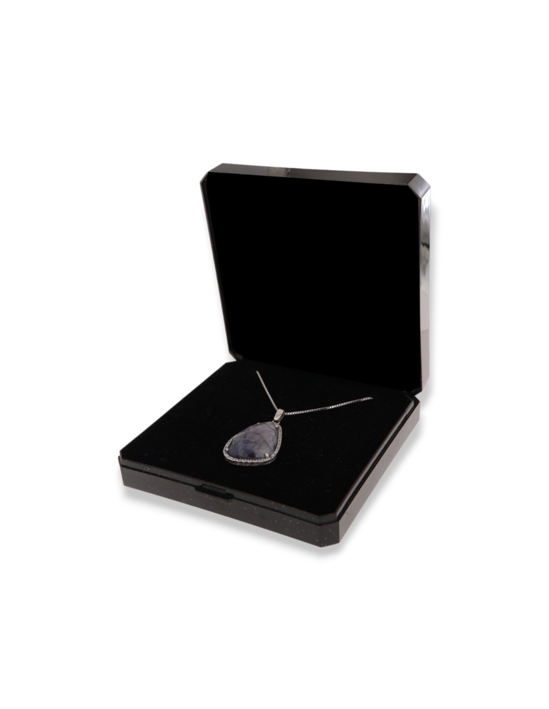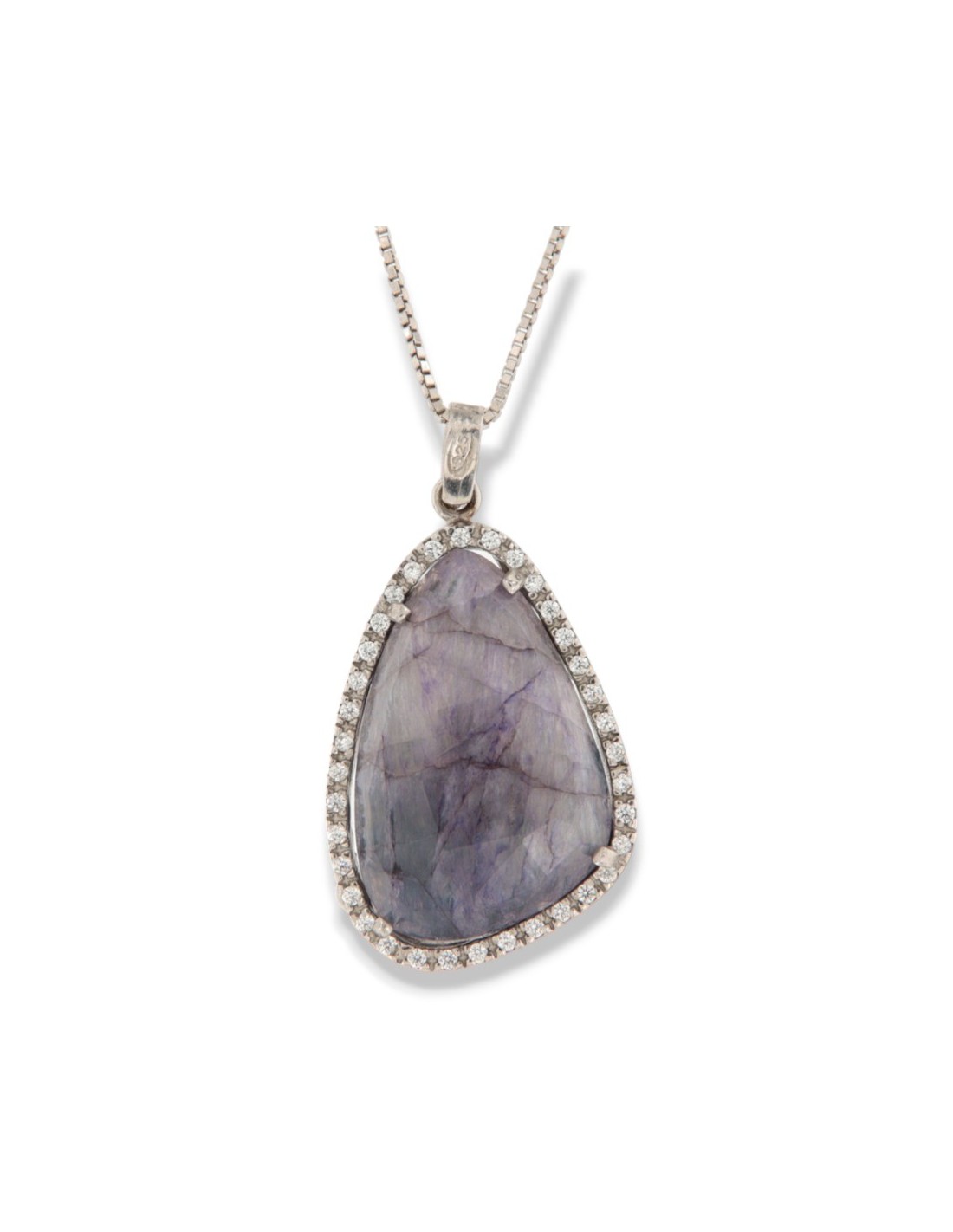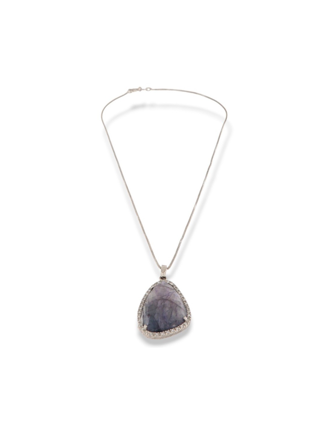 CIONDOLO ARGENTO RODIATO CORINDONE BLU ZIRCONI
