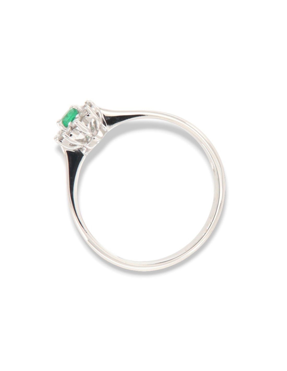 Anello Oro Bianco Principessa Smeraldo 4x3 0,13 Carati e Diamanti 0,11