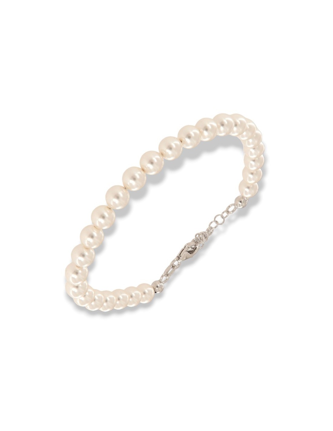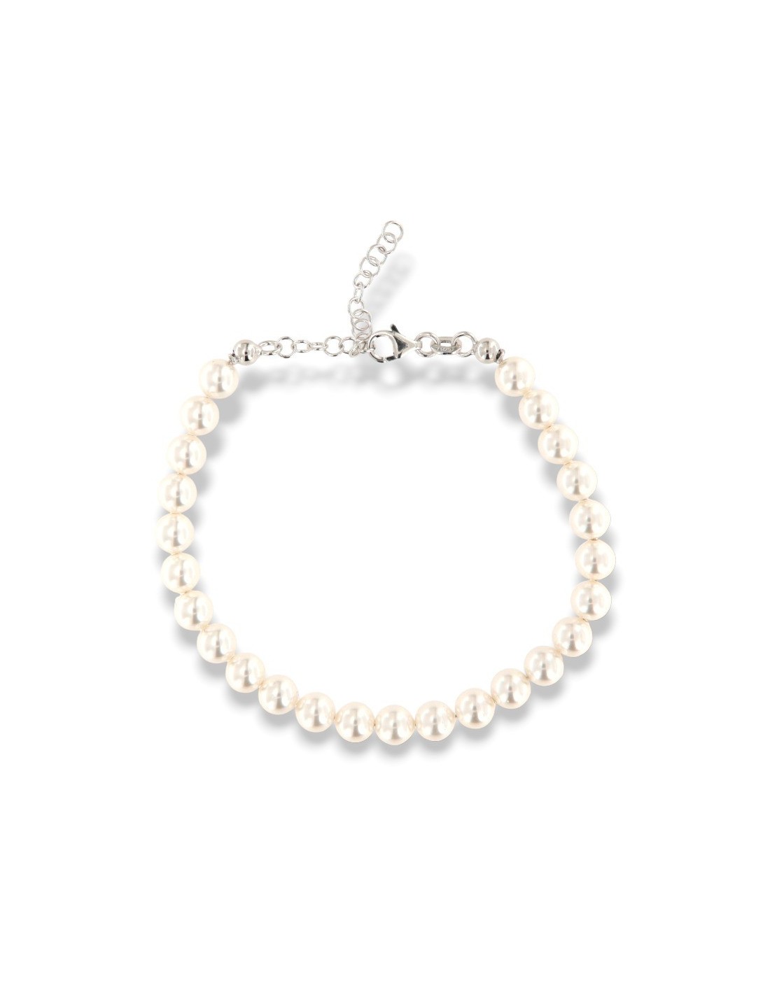 •MATERIALE: il bracciale è realizzato interamente in 925‰ Rodiato (trattamento brillantante contro l'annerimento) modello perle artificiali;