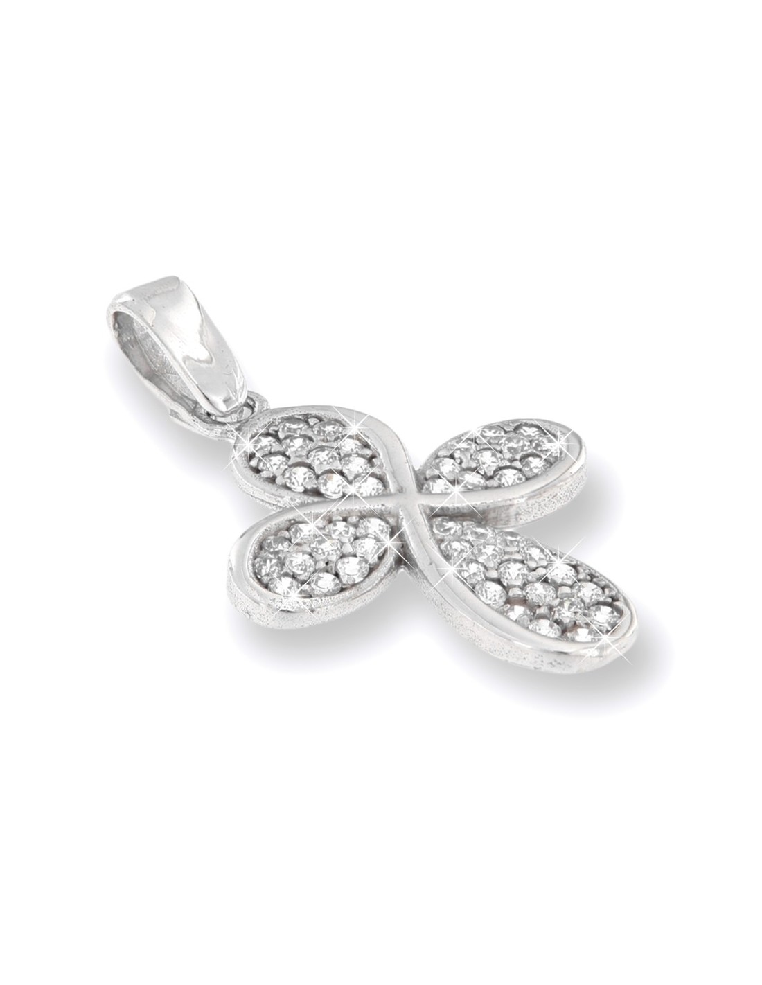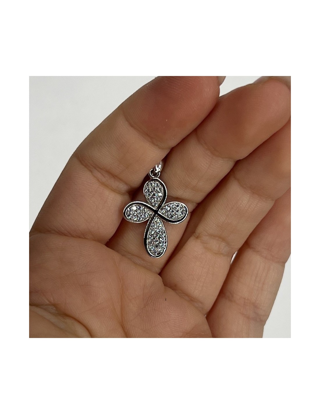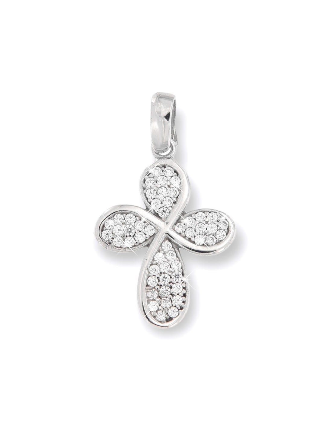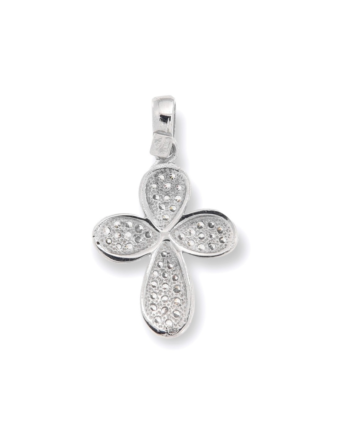 Ciondolo Oro Bianco Croce Con Zirconi Bianchi Pavè