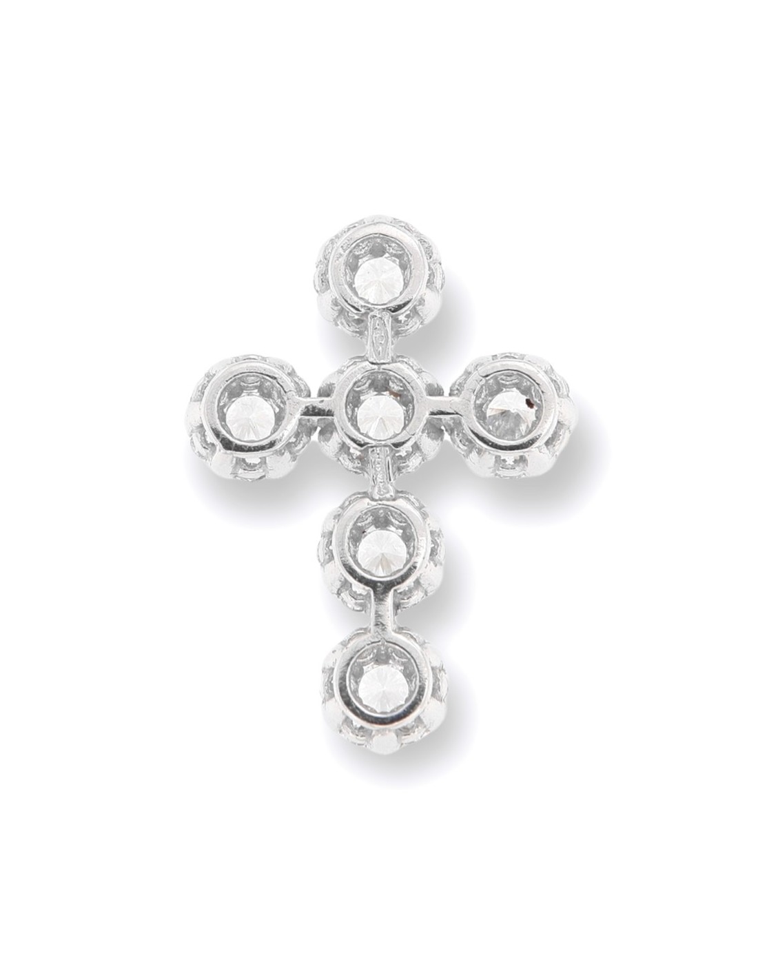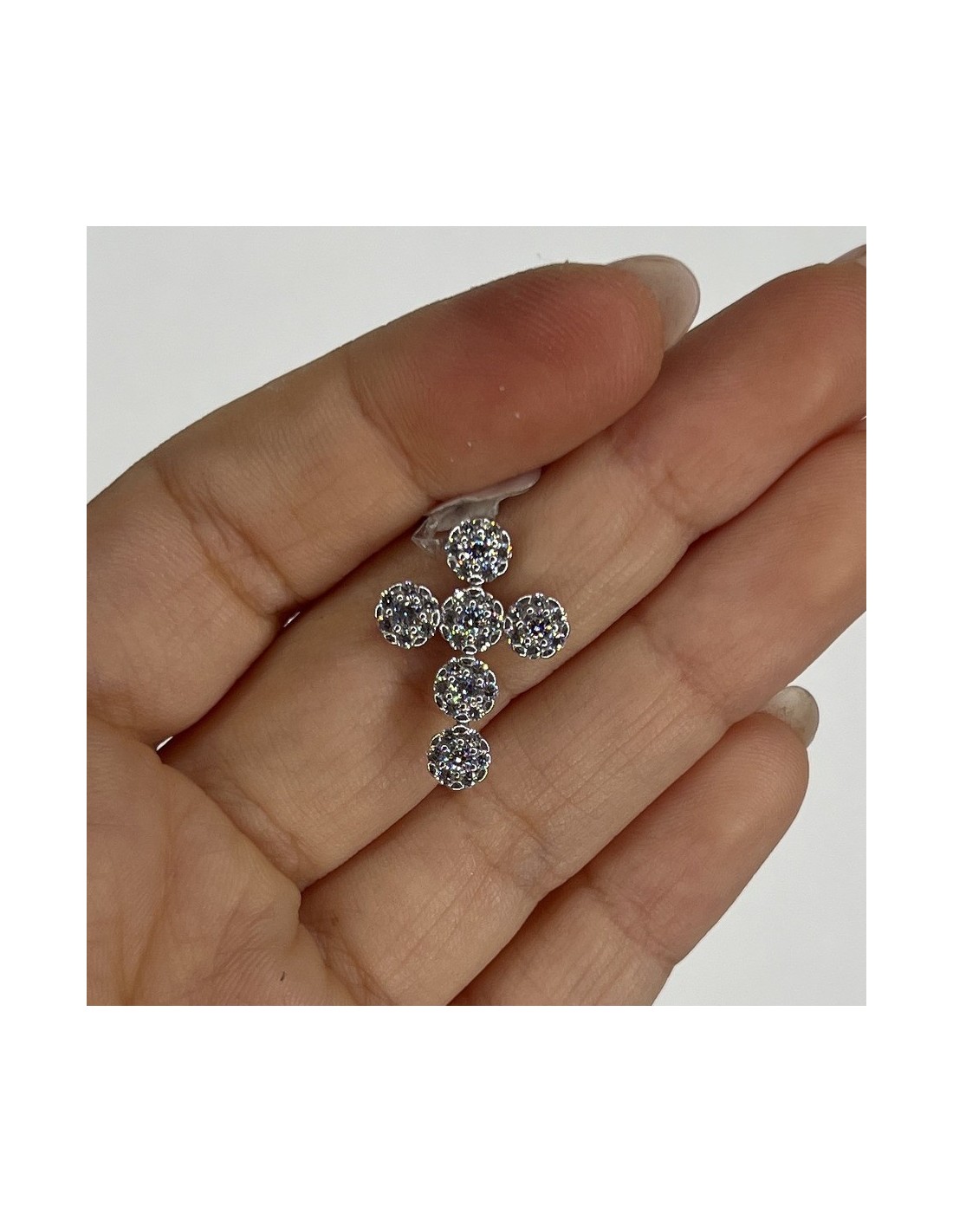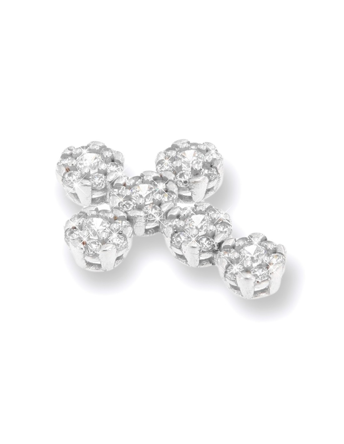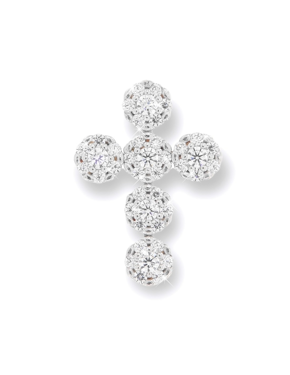 Ciondolo Oro Bianco Croce Punto Luce Zirconi Bia.