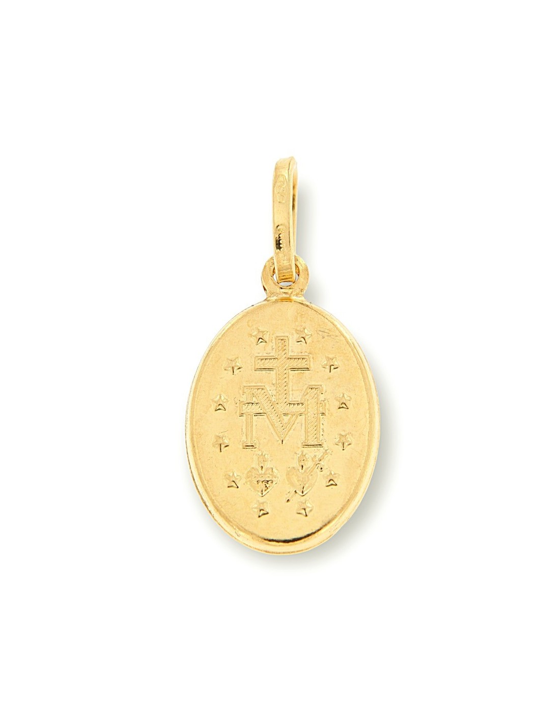 •MATERIALE: il ciondolo è realizzato interamente in oro giallo 750‰ (18 Carati) raffigurante da un lato la Madonna Miracolosa e dall'altro lato è riprodotto il Monogramma della vergine Maria, circondato dalle 12 stelle, i dodici apostoli, le 12 tribù di Israele;