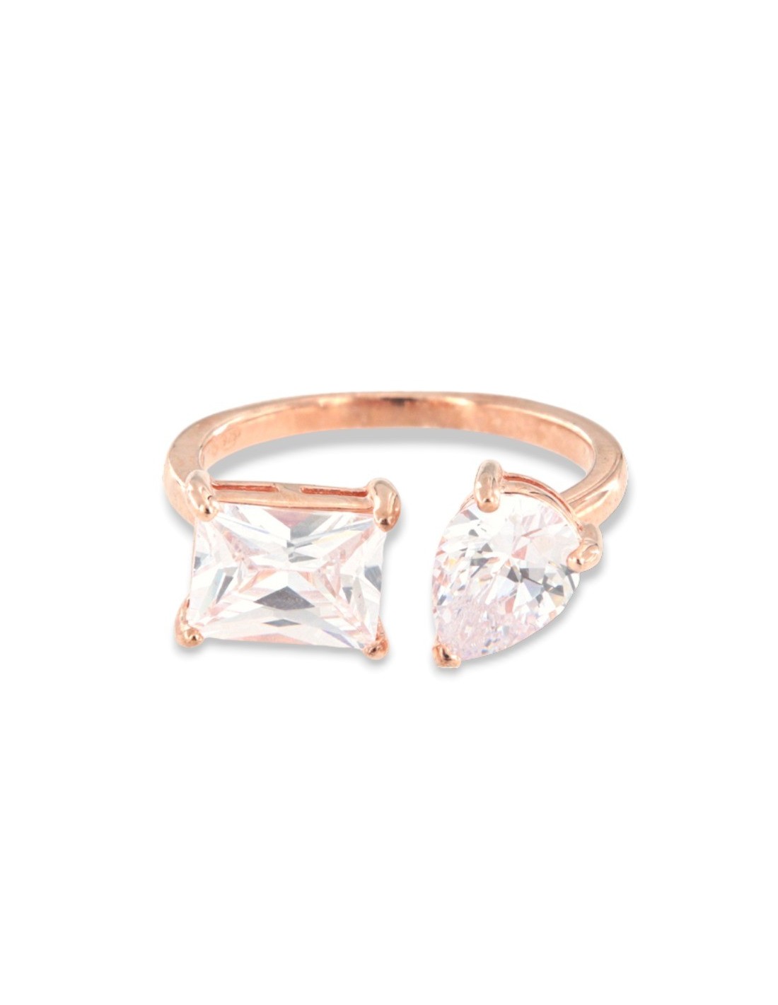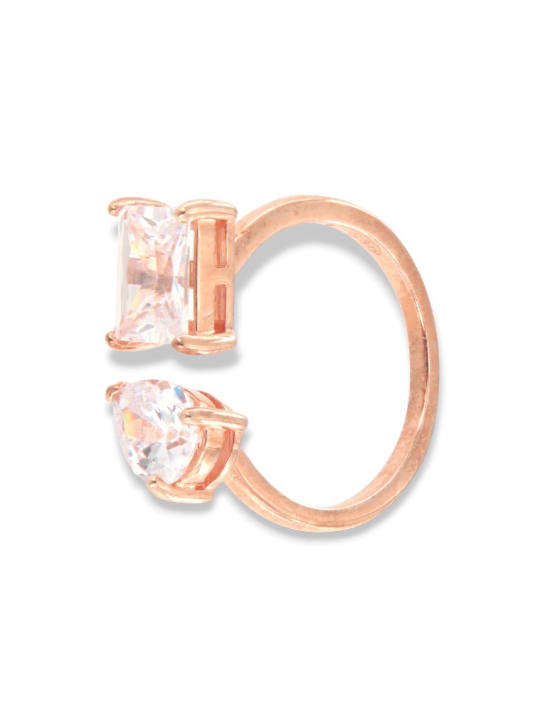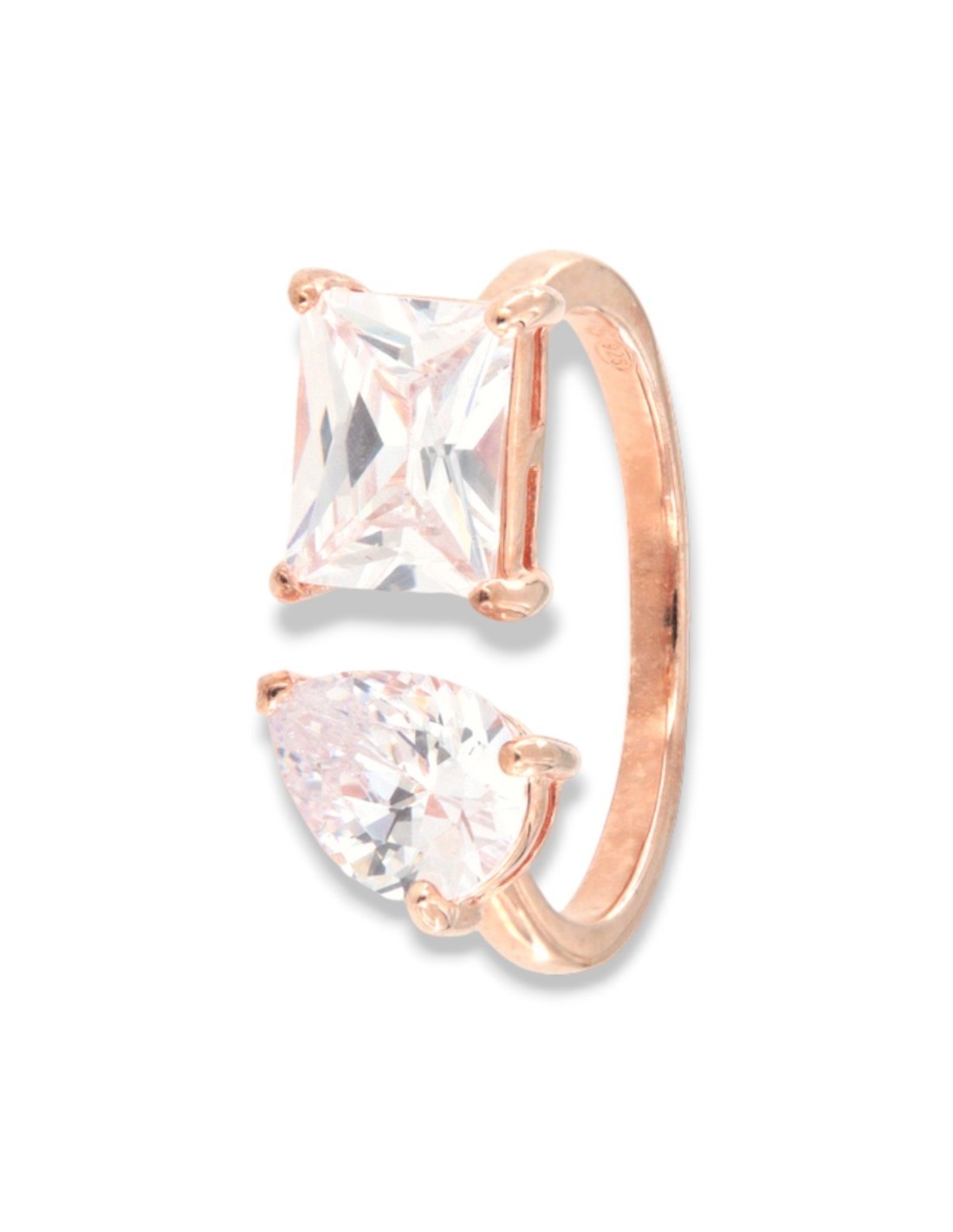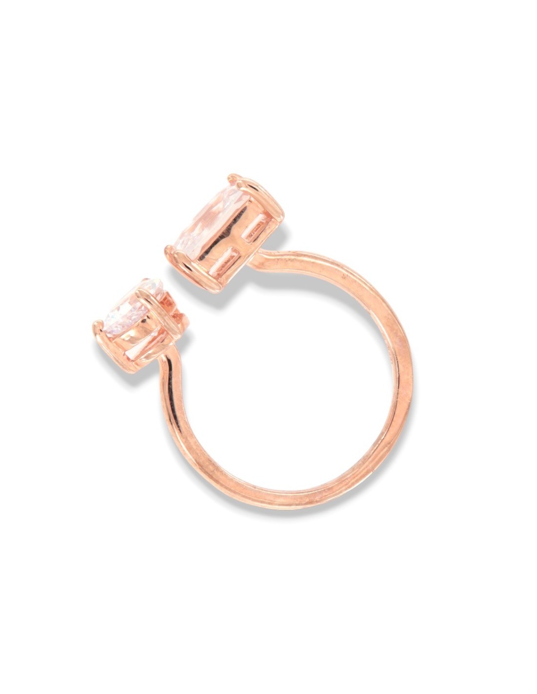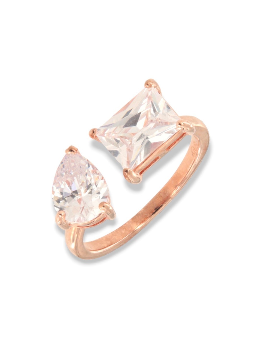 Anello Argento Rosato Zirconi Bianchi Gambo Aperto