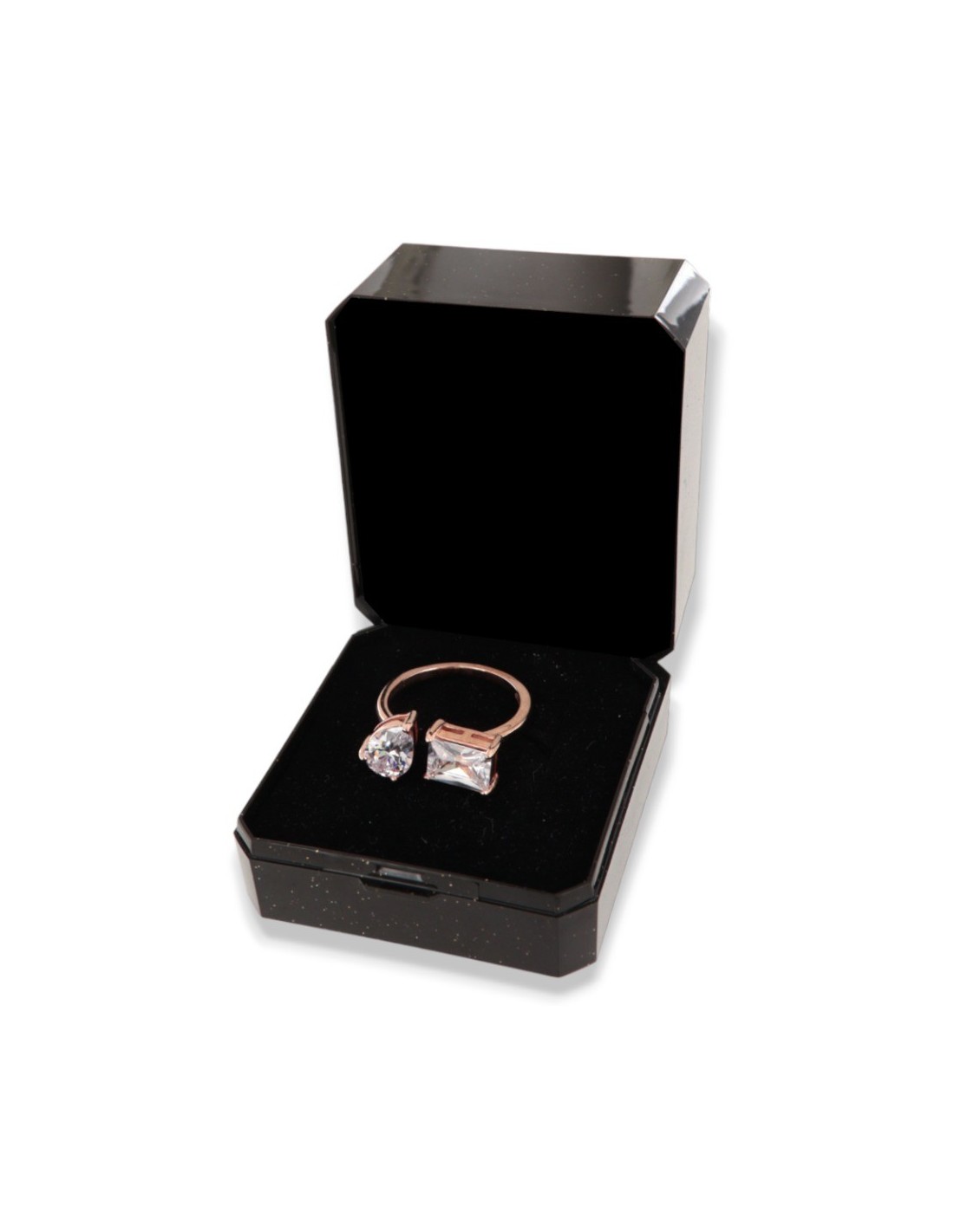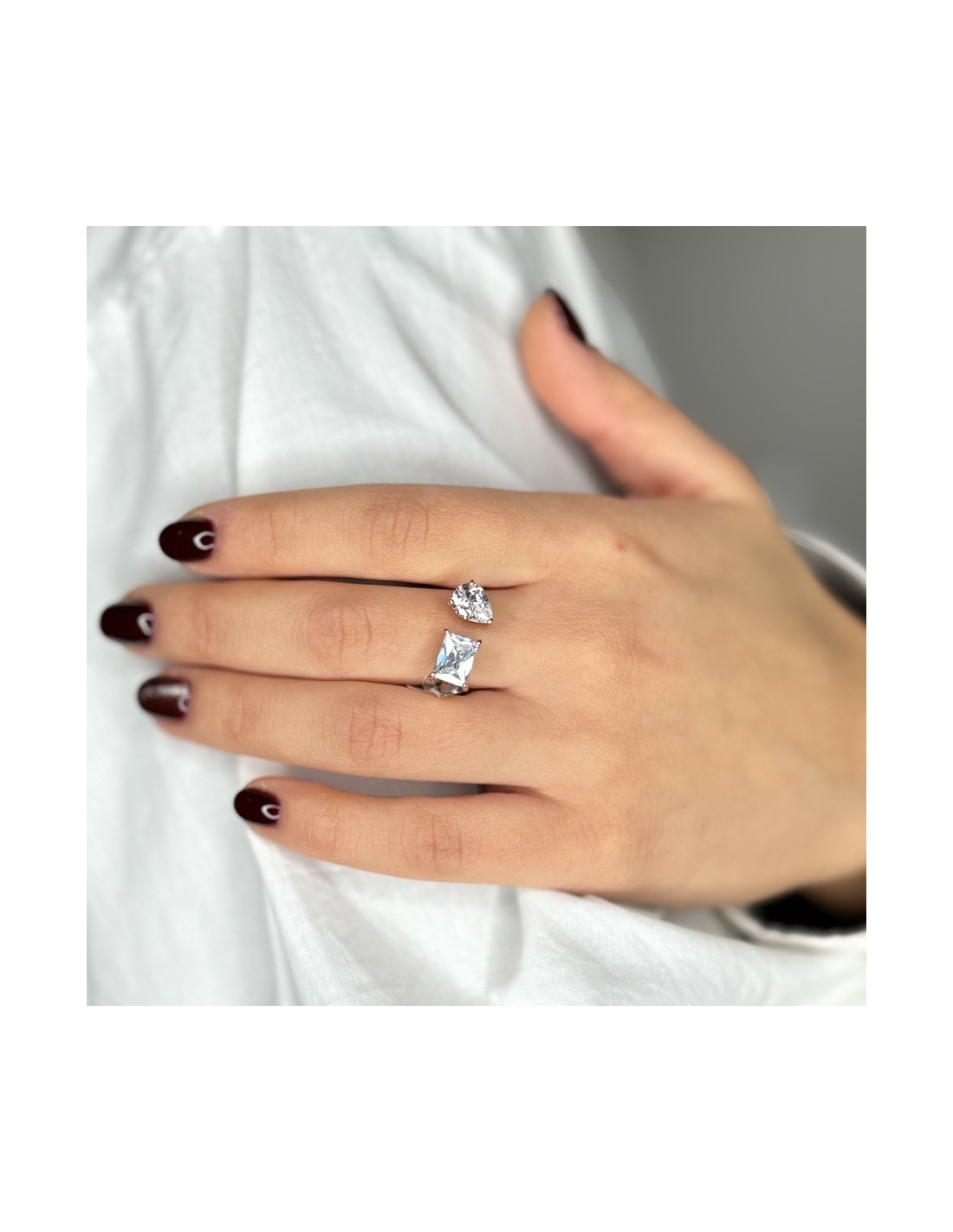 •INCASTONATURA: il montaggio delle pietre CZ sull'anello avviene con castoni a 4 griffe (2 punte condivise per pietra) che la serrano in modo permanente;