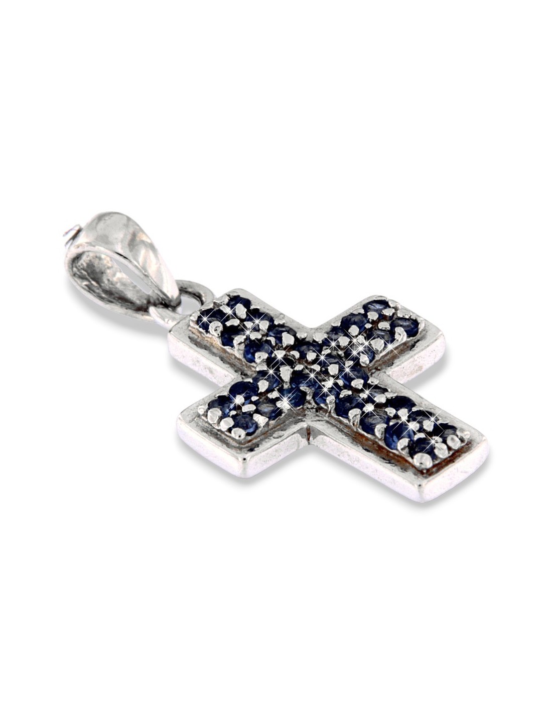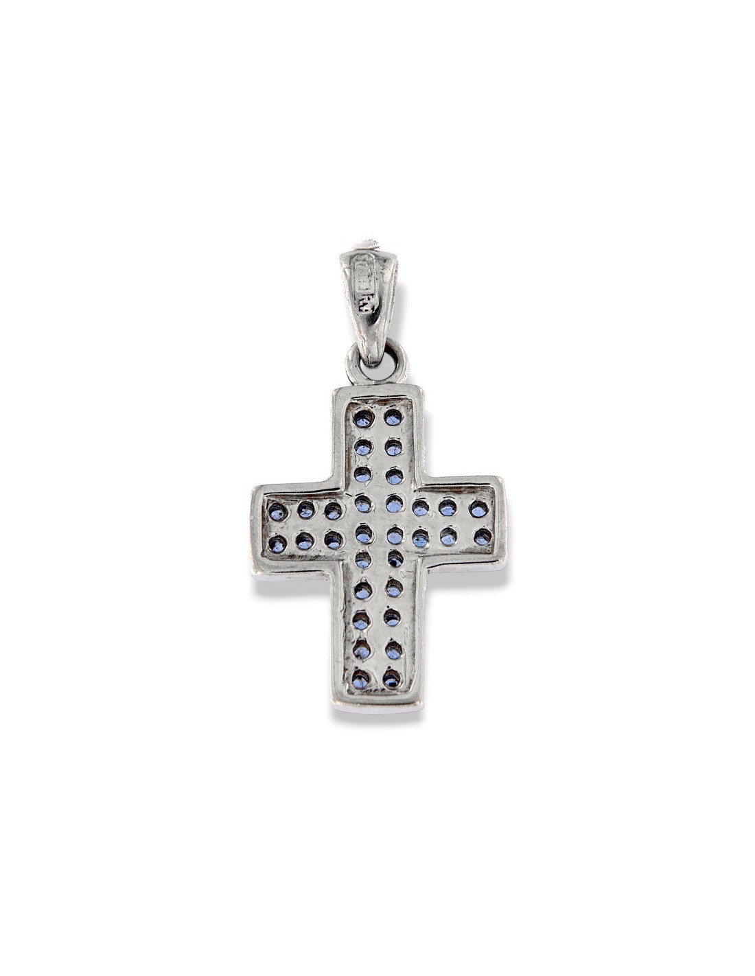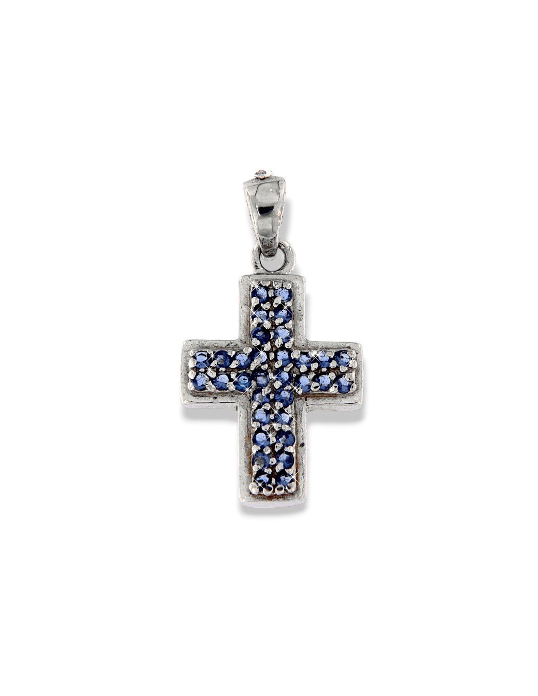 CIONDOLO ARGENTO RODIATO CROCE CON ZIRCONI BLU