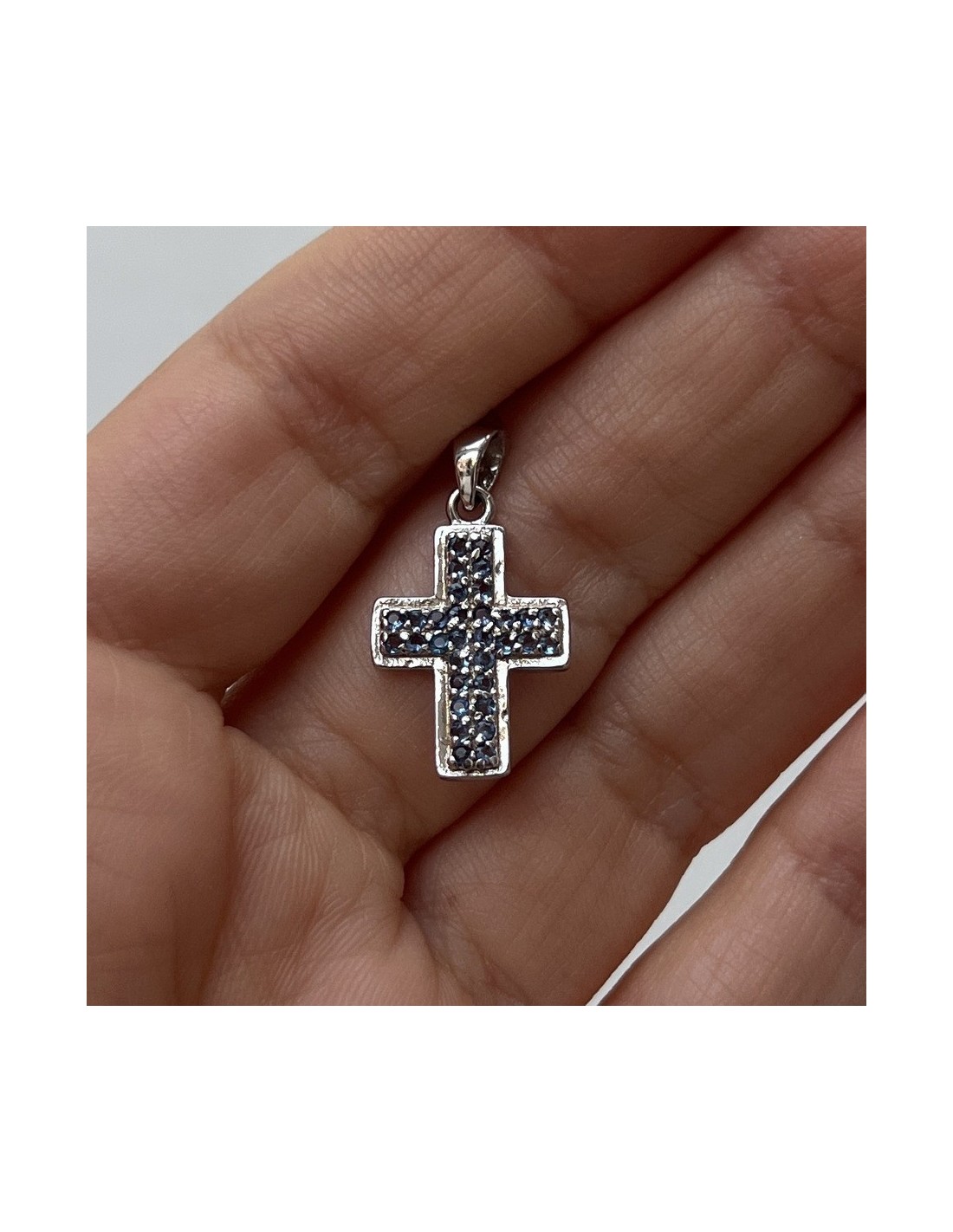 •MATERIALE: il ciondolo è realizzato interamente in argento 925‰ Rodiato (trattamento brillantante contro l'annerimento) con zirconi blu, il ciondolo è a forma di croce;