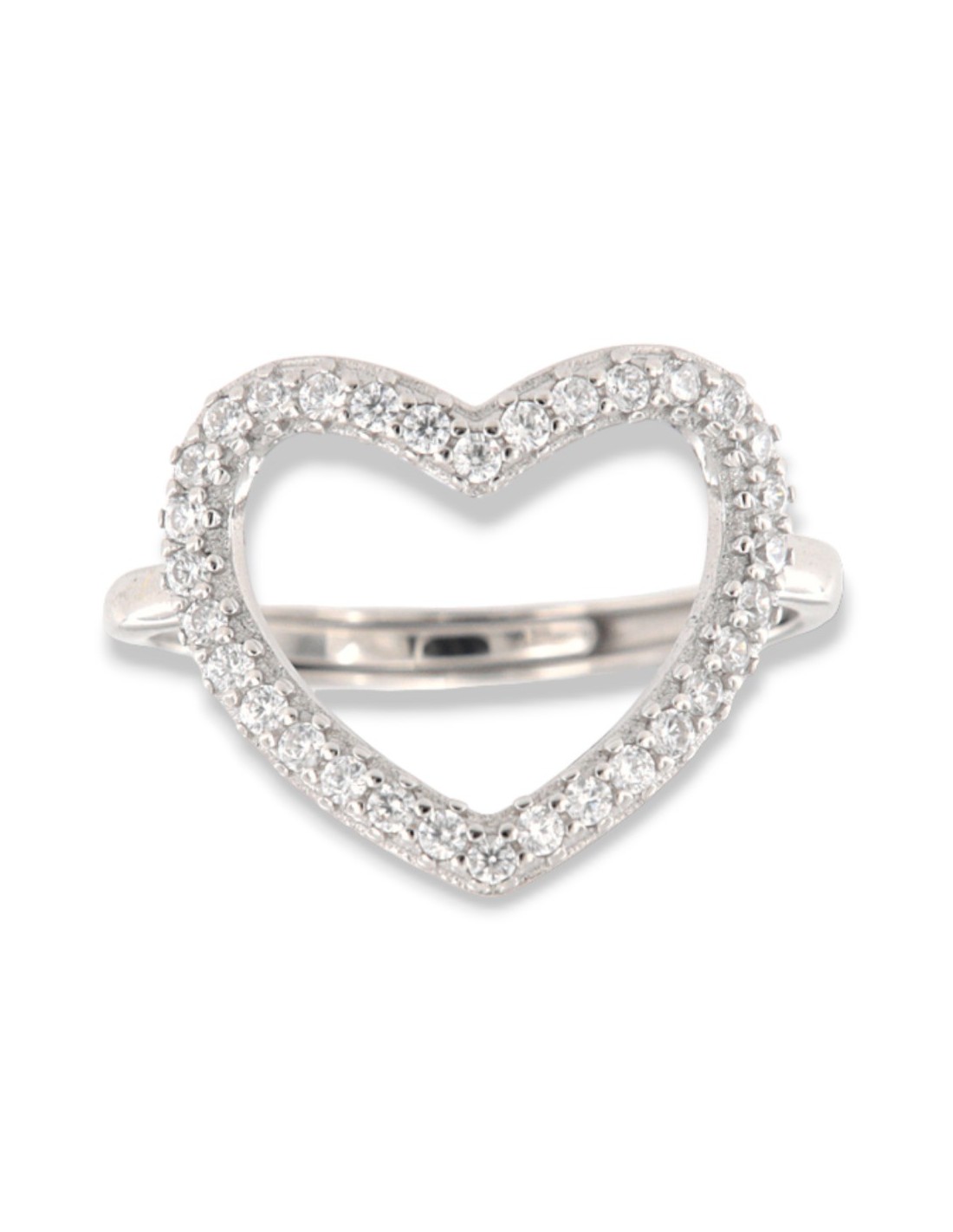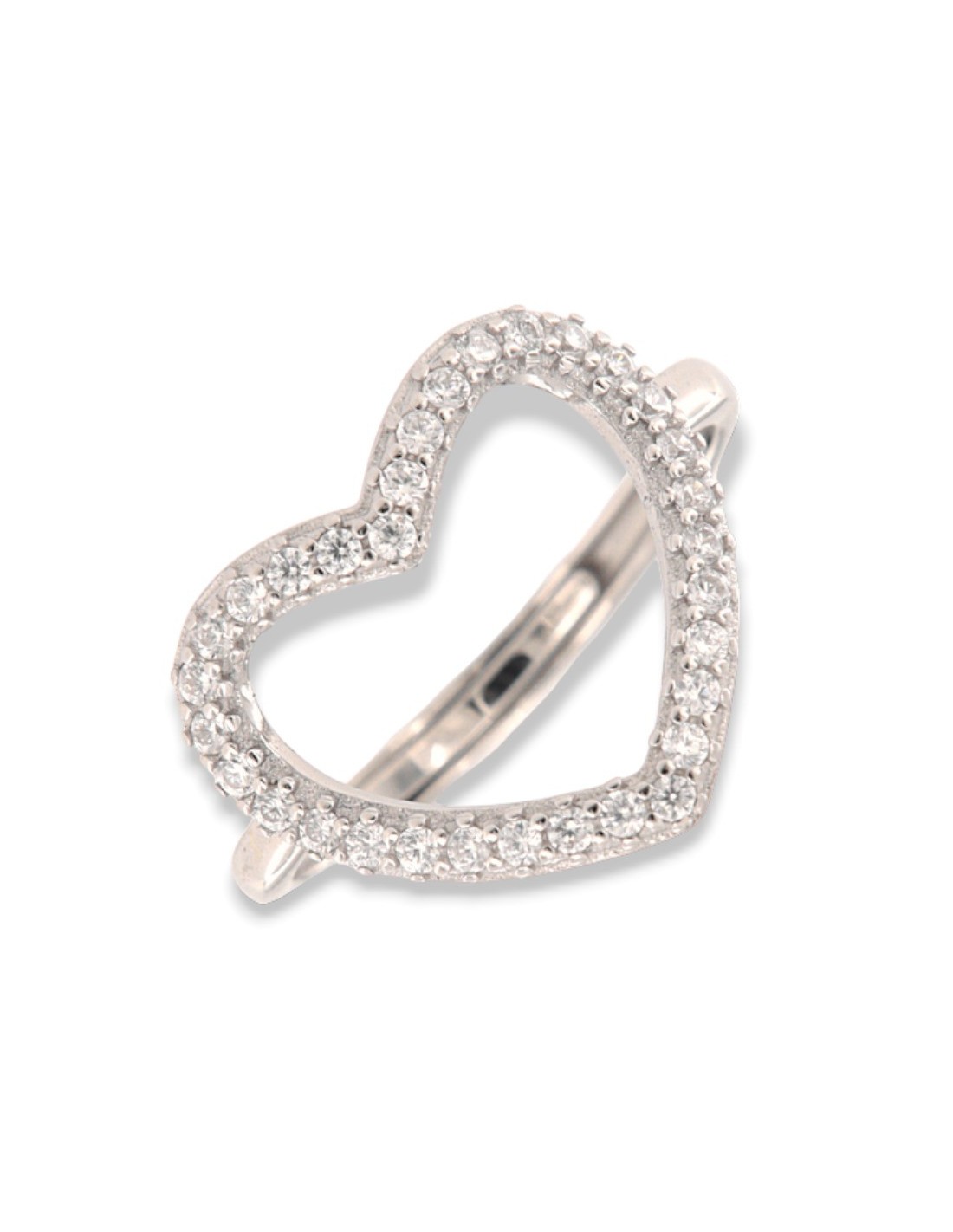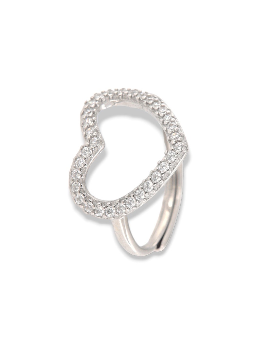 Anello Argento Rodiato Cuore Zirconi Bianchi