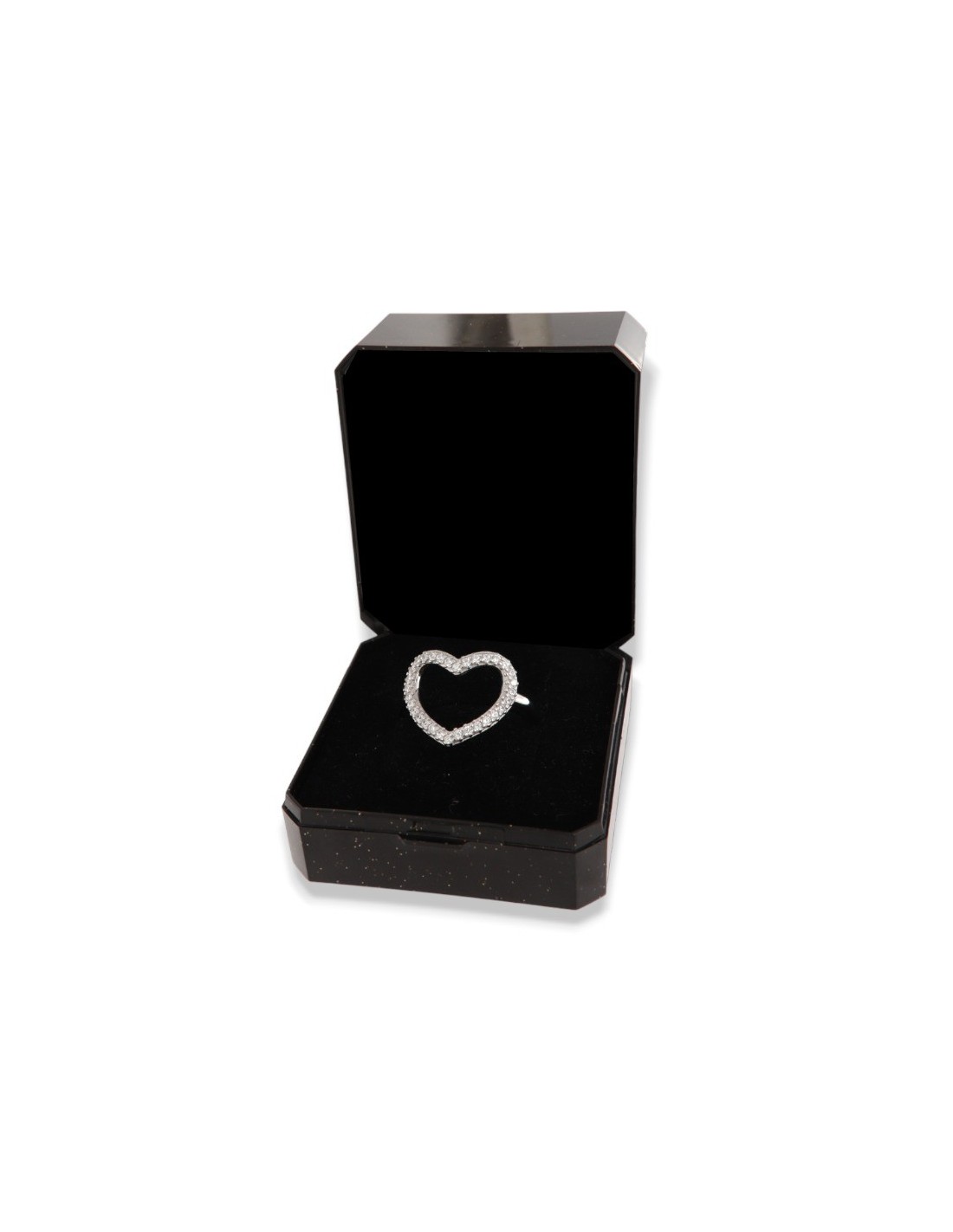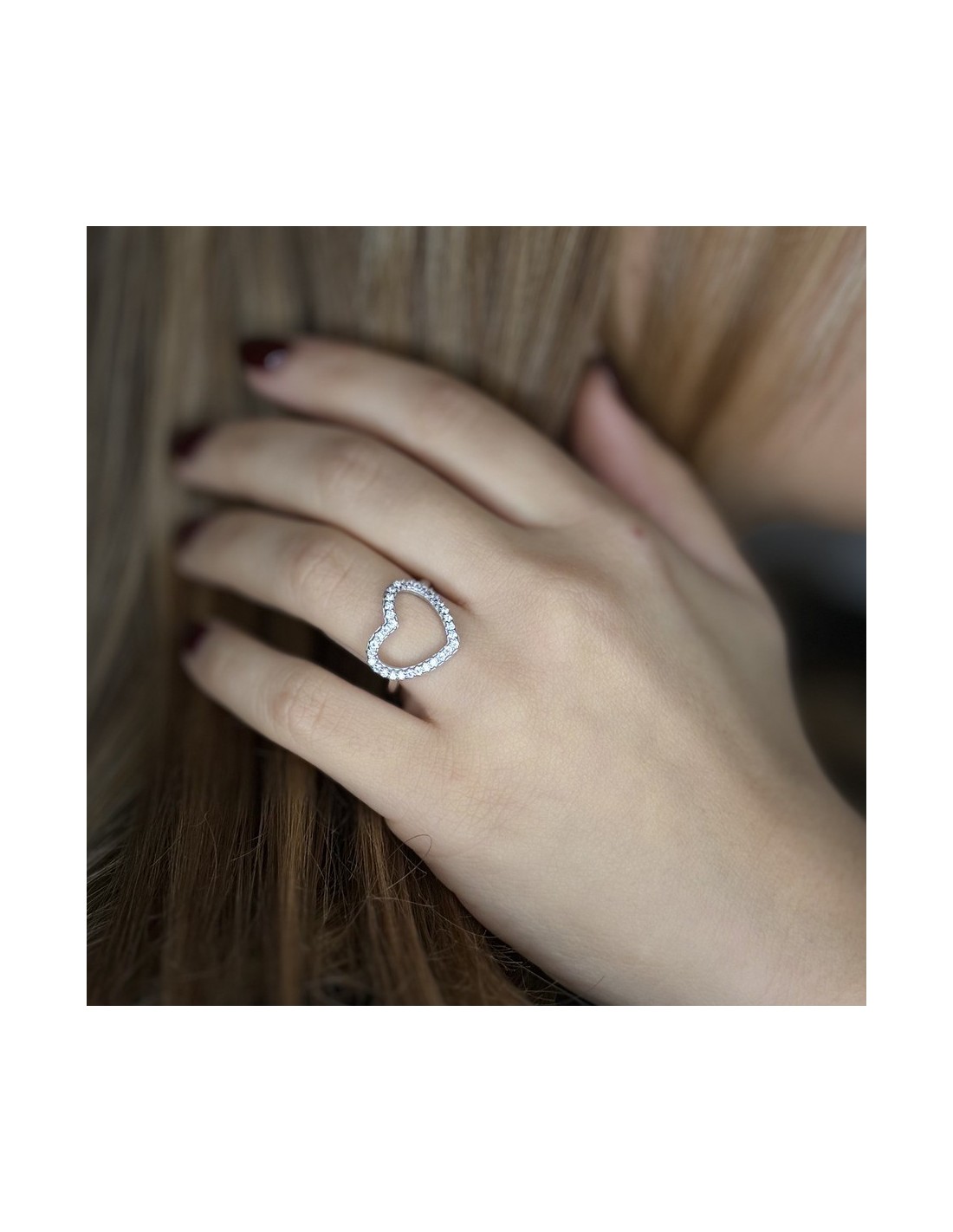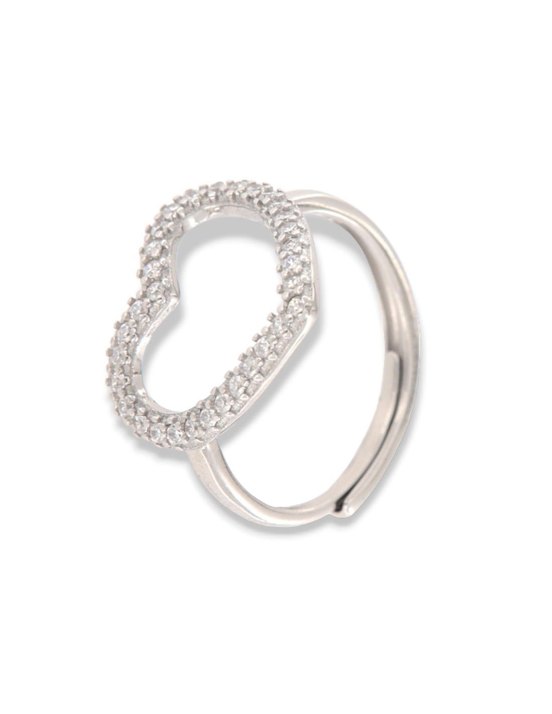 Anello Argento Rodiato Cuore Zirconi Bianchi
