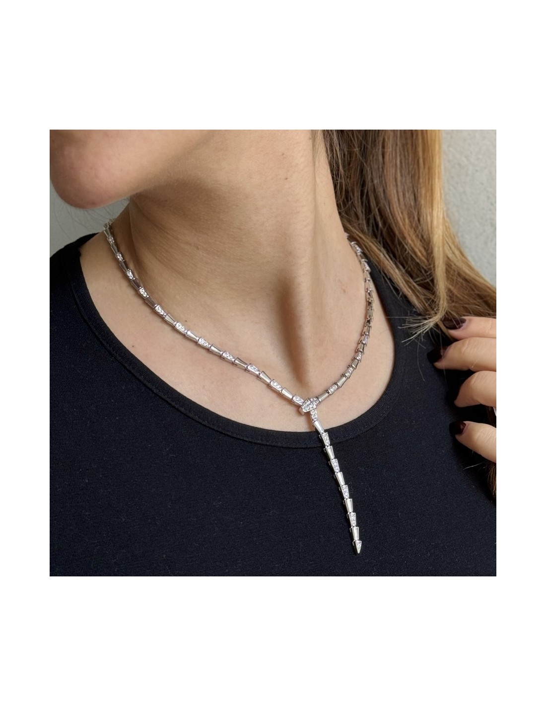 Collana Argento Rodiato Serpente Zirconi Bianchi