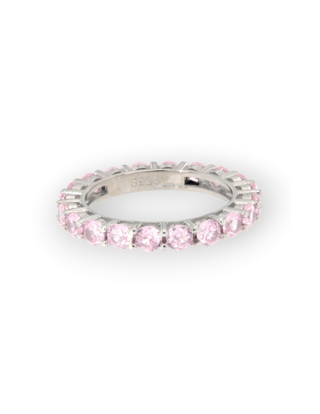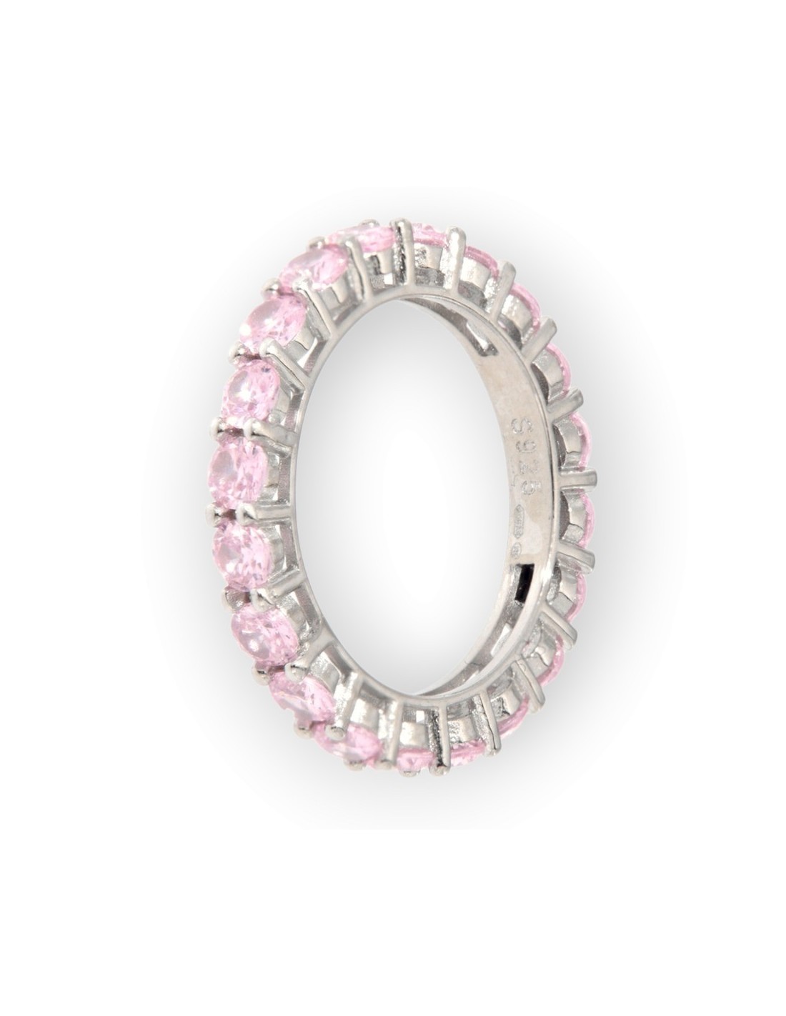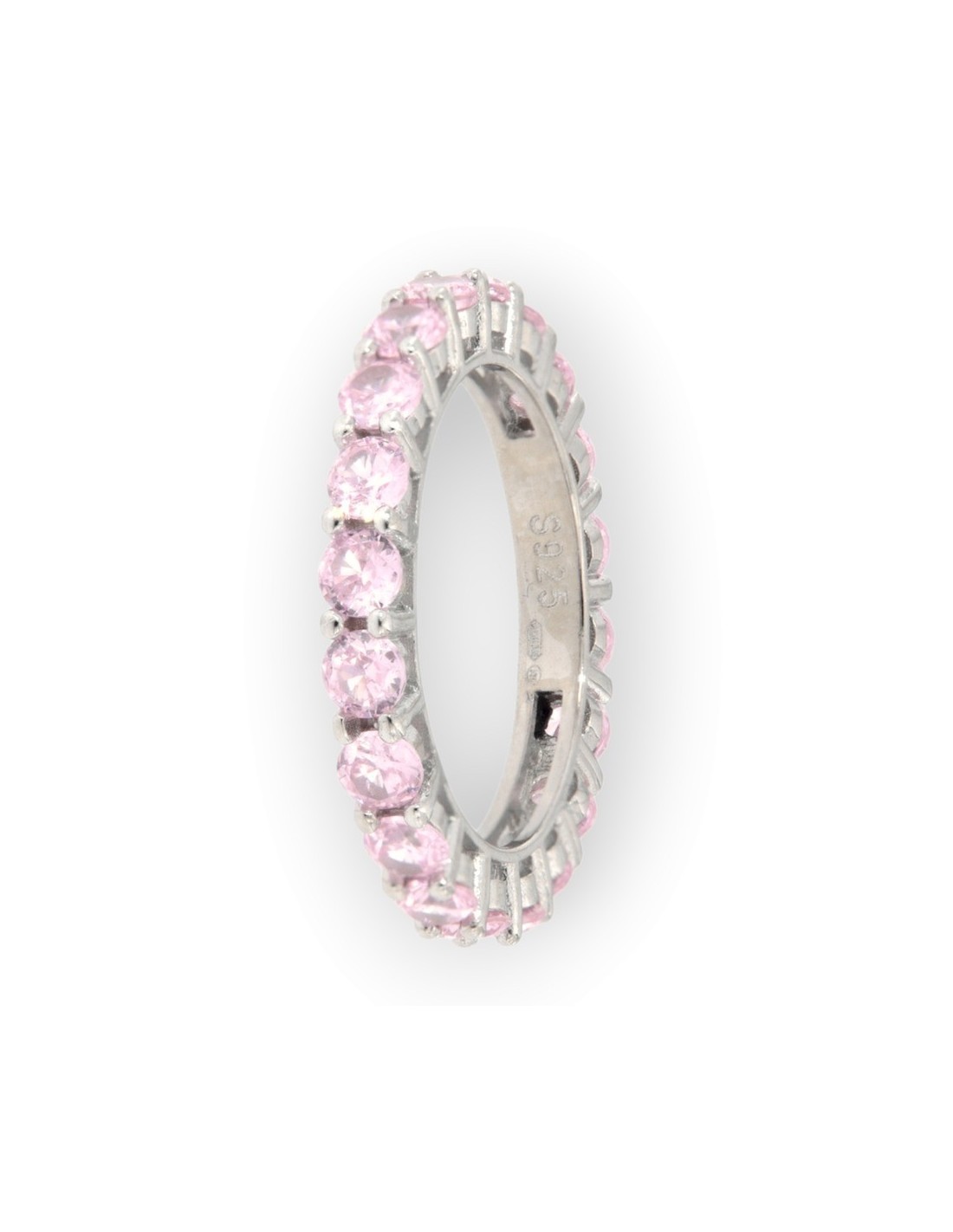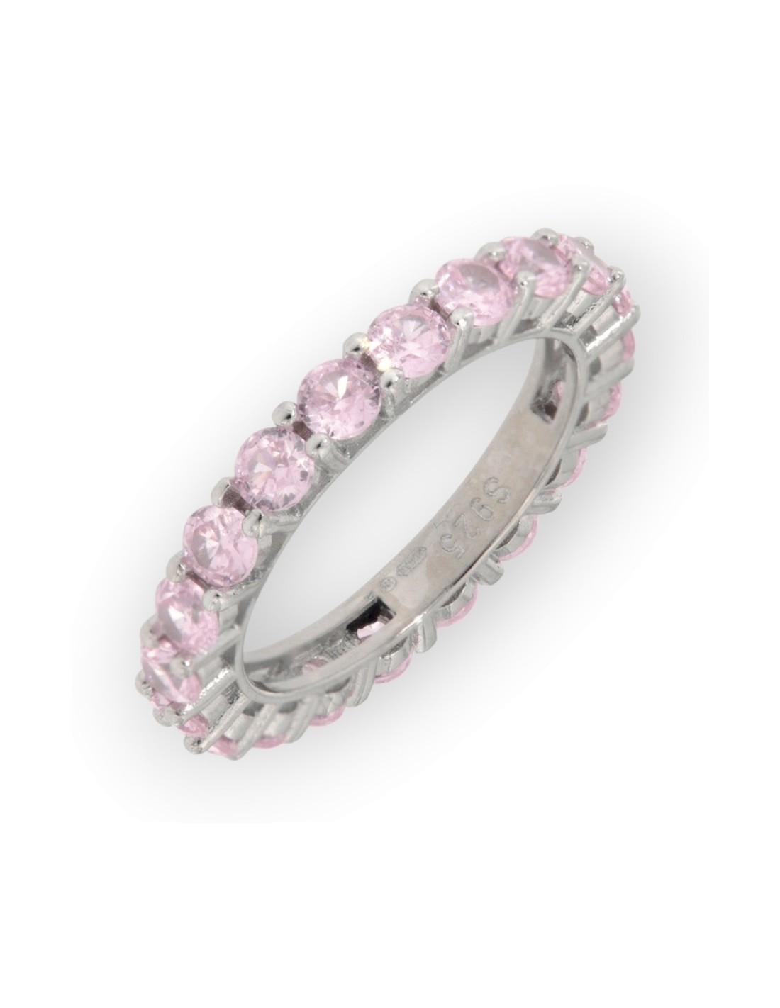 Anello Argento Rodiato Eternity Zirconi Rosa 3MM