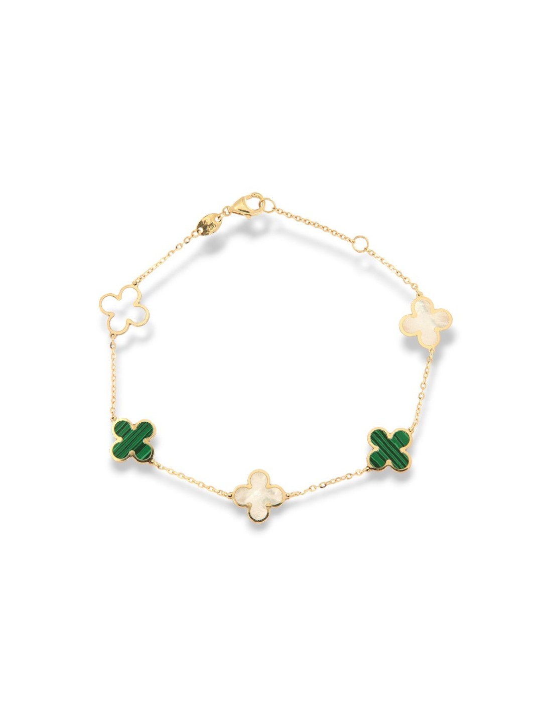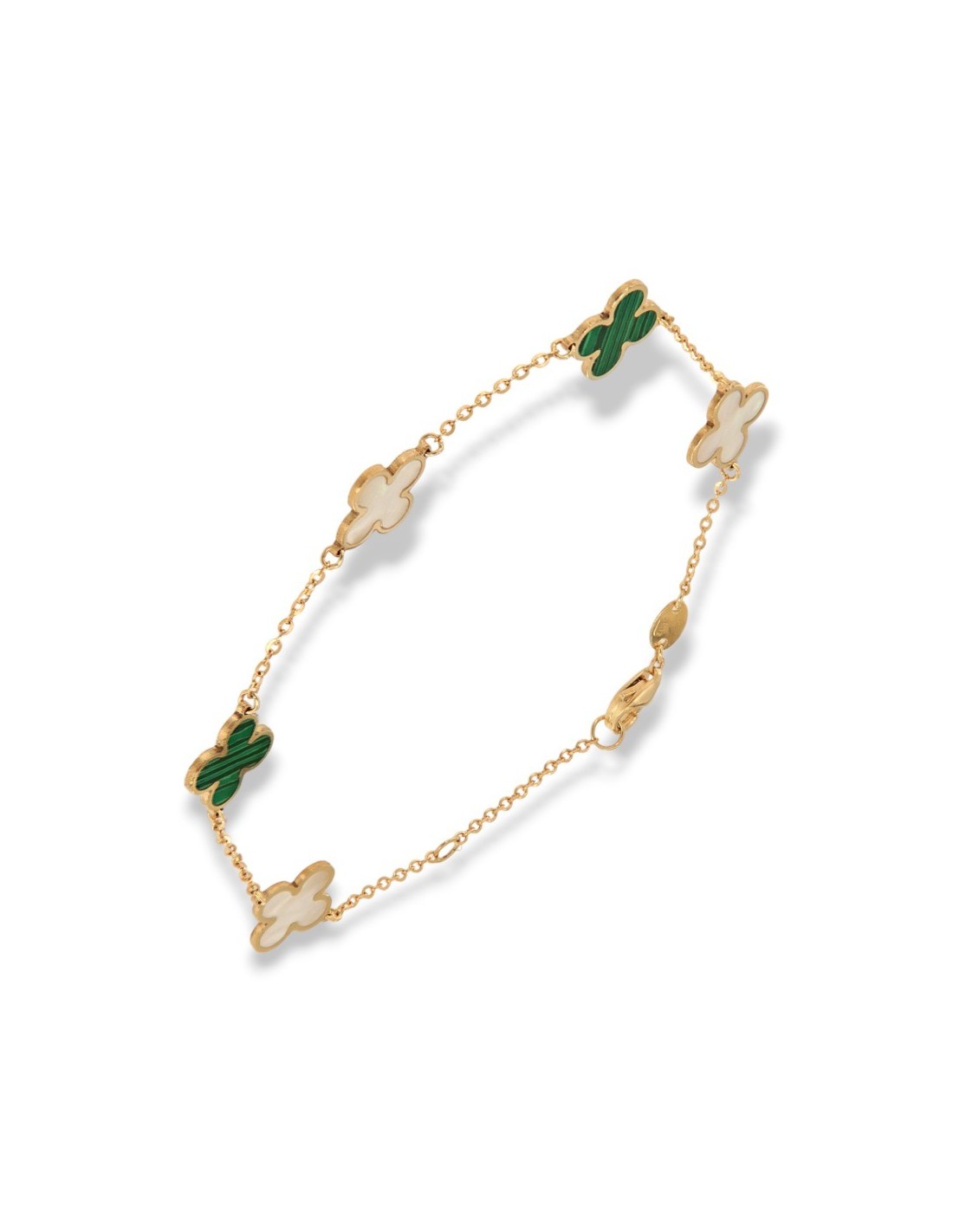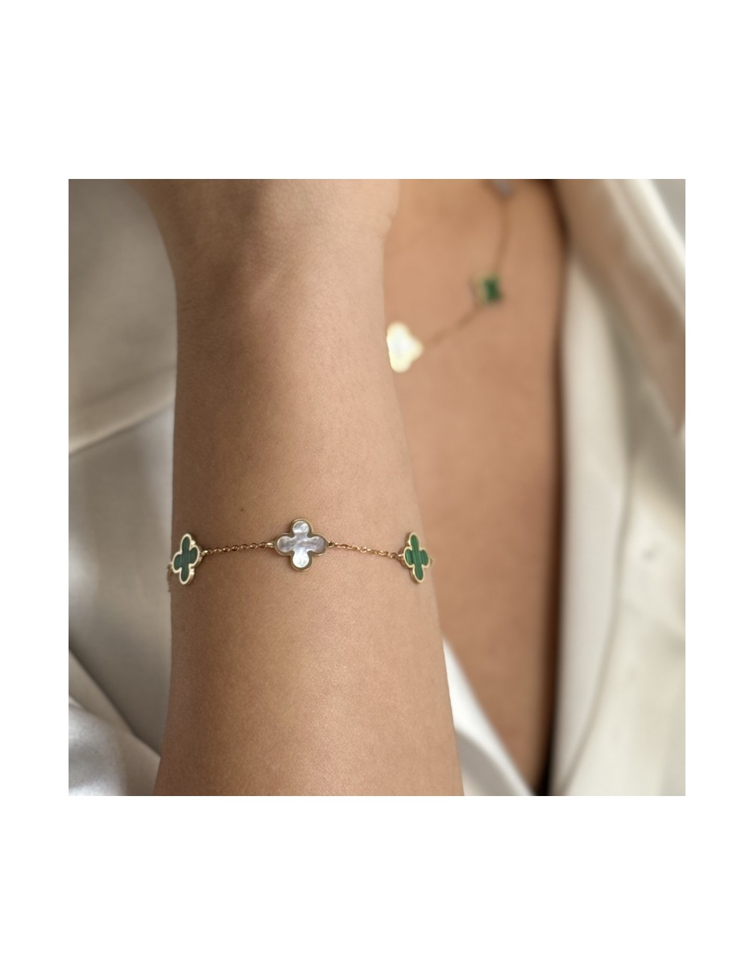 Bracciale Oro Giallo Fiori Madre Perla Malachite.