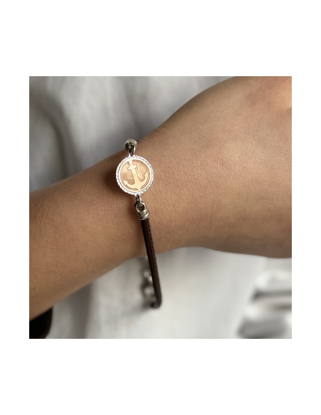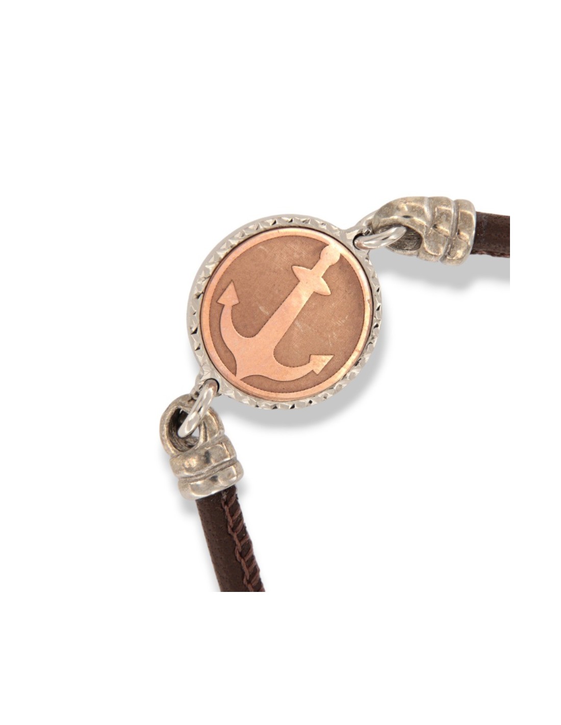 •MATERIALE: il bracciale è realizzato interamente in argento 925‰ Rodiato (trattamento brillantante contro l'annerimento) e in laccio in ecopelle, con ciondolo centrale tondo con un ancora incisa;