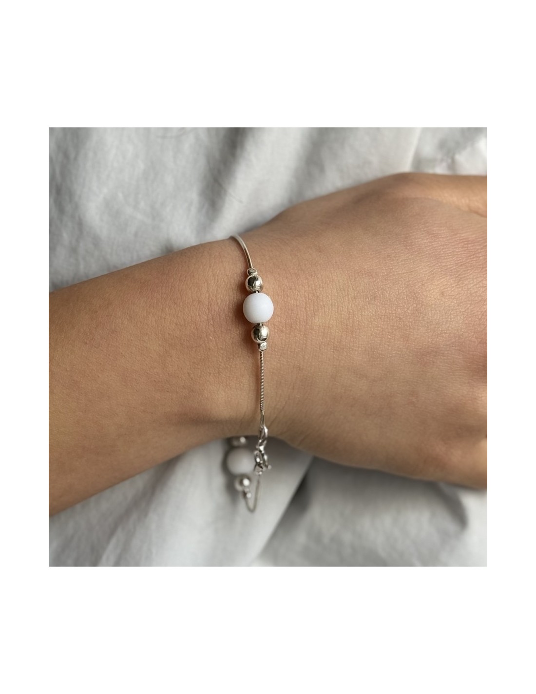 •MATERIALE: il bracciale è realizzato interamente in argento 925‰ Rodiato (trattamento brillantante contro l'annerimento) modello catena con perle bianche e grige;