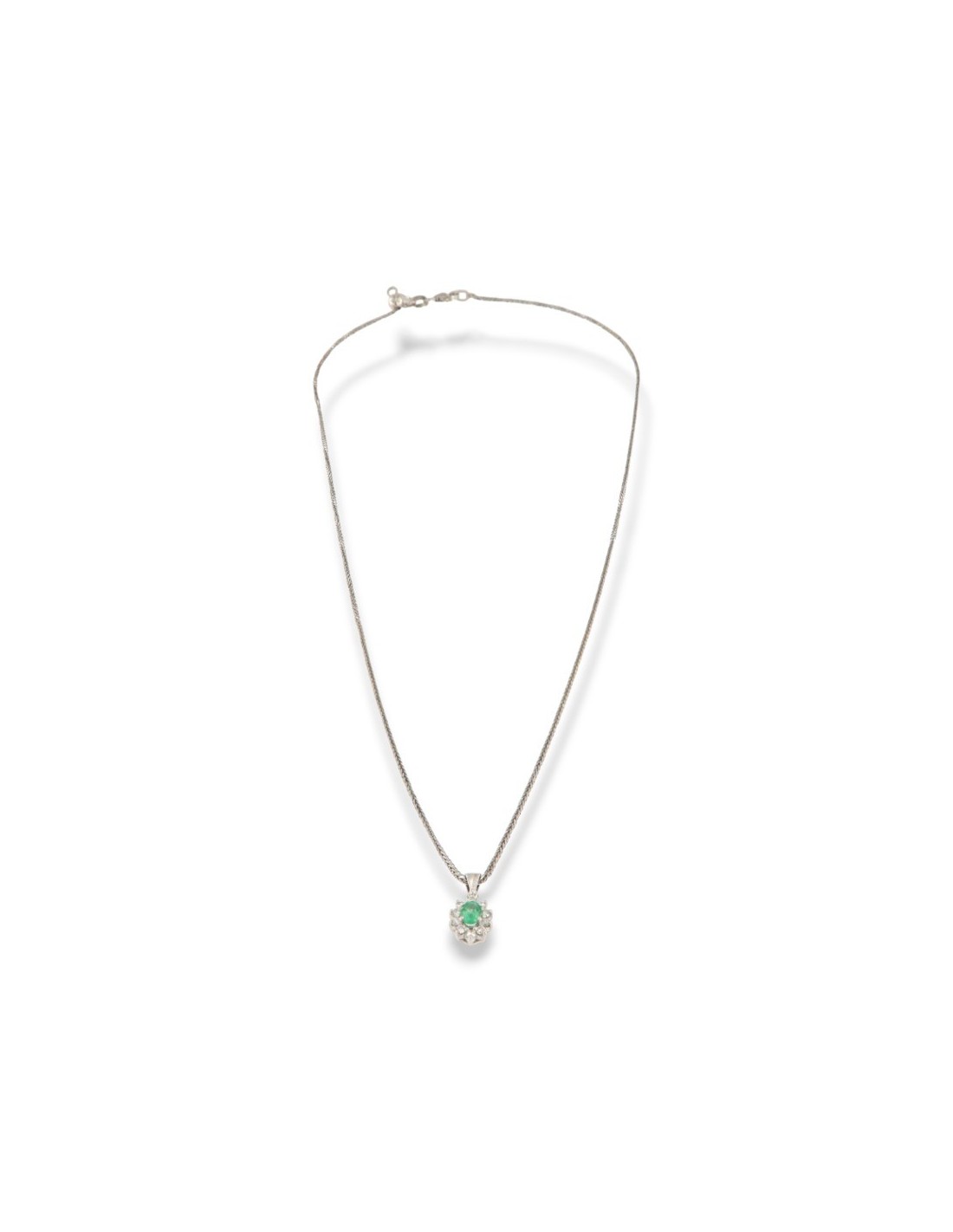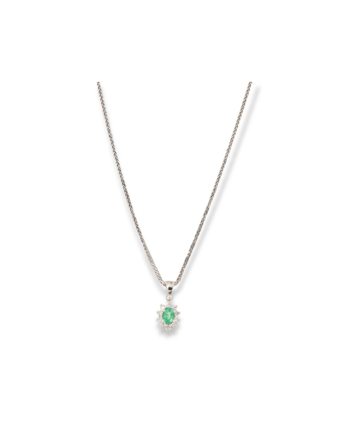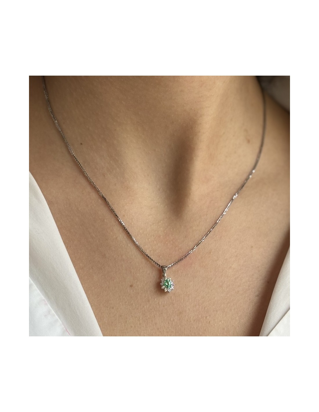 Collana Oro Bianco Principessa Smeraldo Ovale 0,16 Carati Diamanti 0,12 Carati